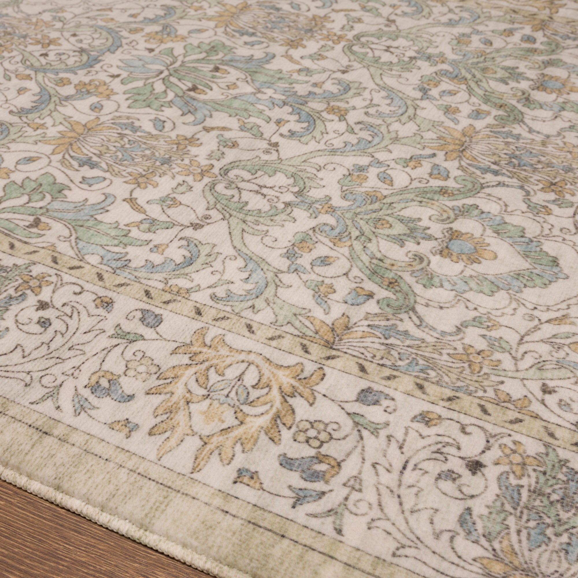 The Albert Vintage Botanical Rug showcases an intricate botanical pattern inspired by timeless Persian-style artistry. Its delicate floral motifs and detailed ornamental borders create an elegant yet inviting aesthetic, perfect for adding sophistication to living rooms, bedrooms, or formal dining areas. The soft, muted tones bring a sense of refinement while effortlessly complementing both classic and transitional interiors.