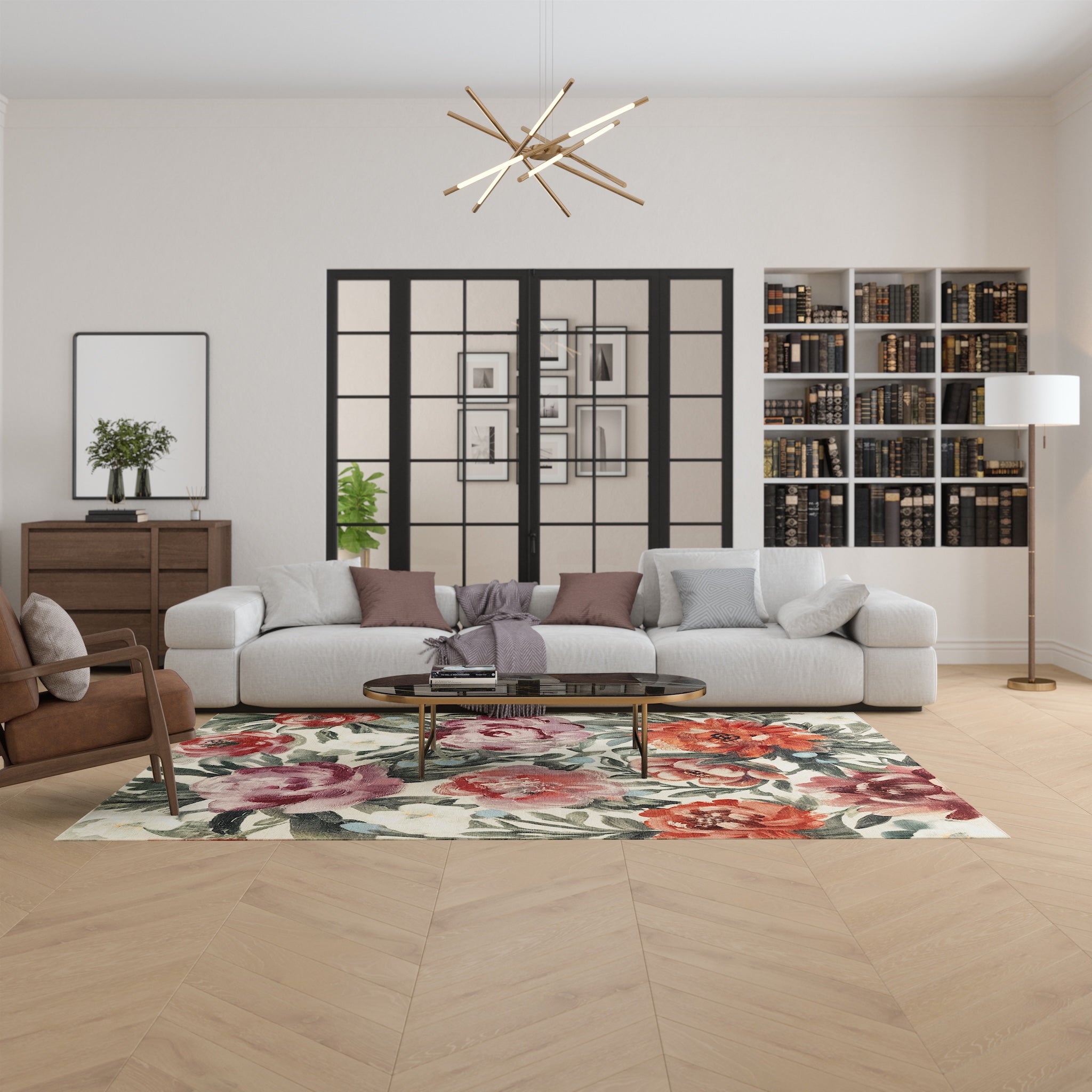 A bold floral rug design inspired by brush-painted blooms, blending deep colors and expressive strokes. Perfect for making a statement in modern or eclectic interiors. The artistic detailing brings a gallery-like charm to any room.
