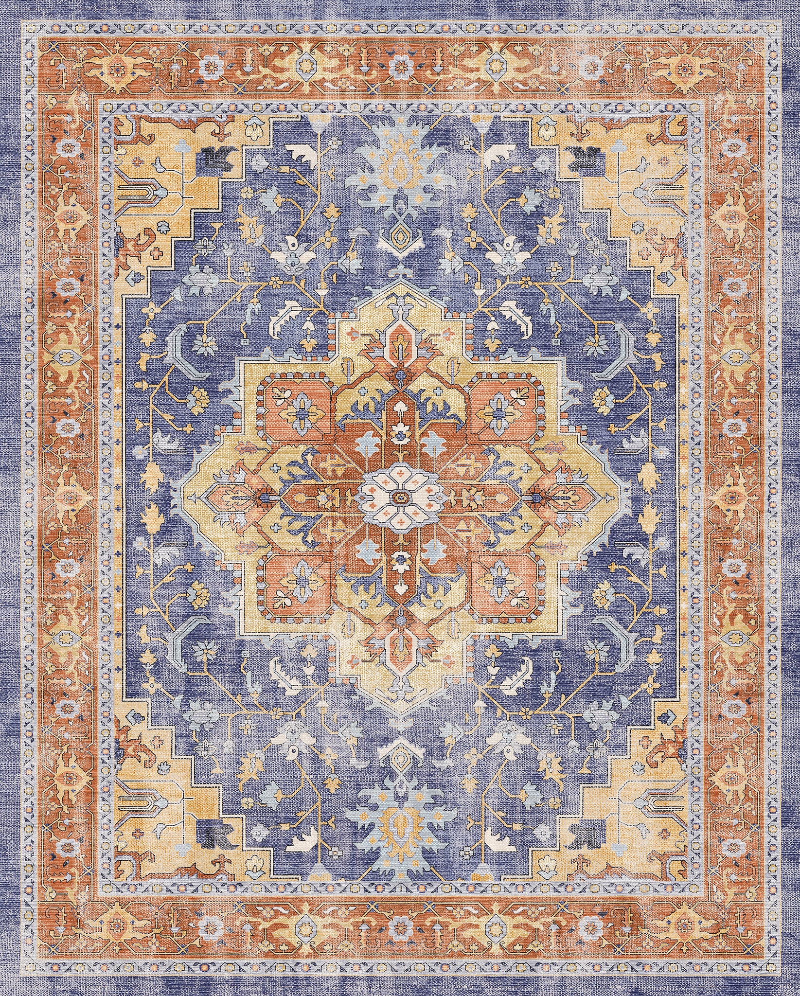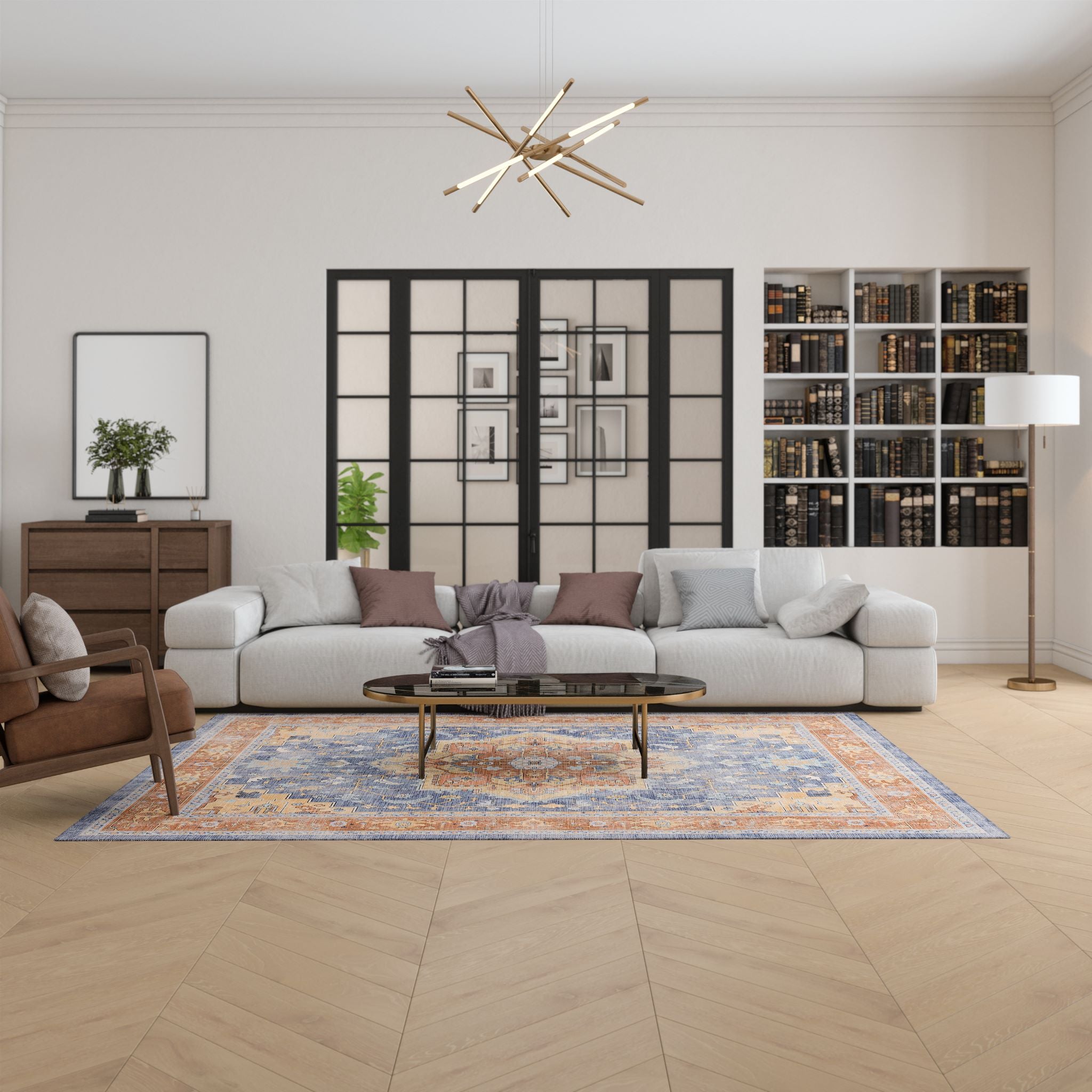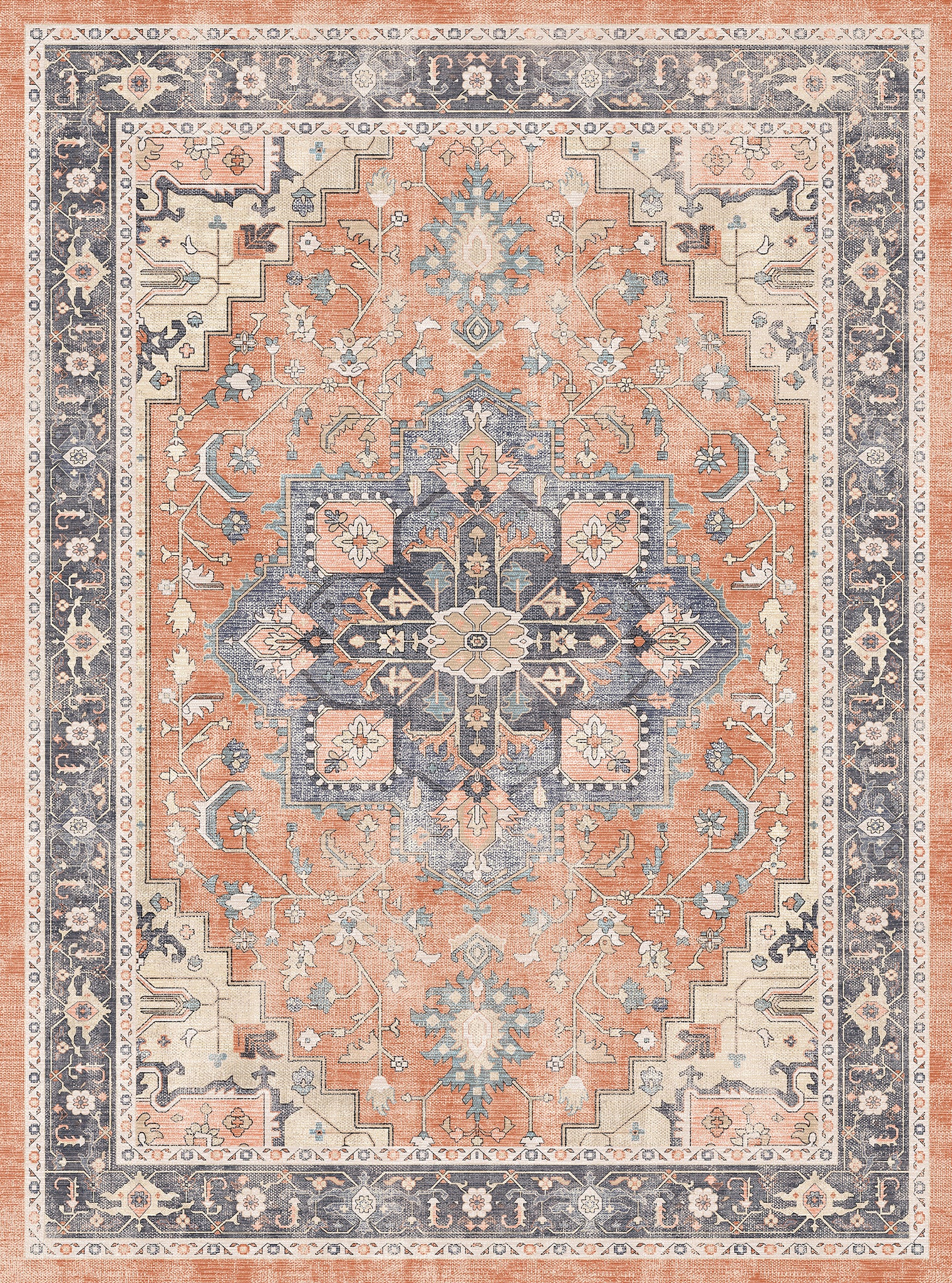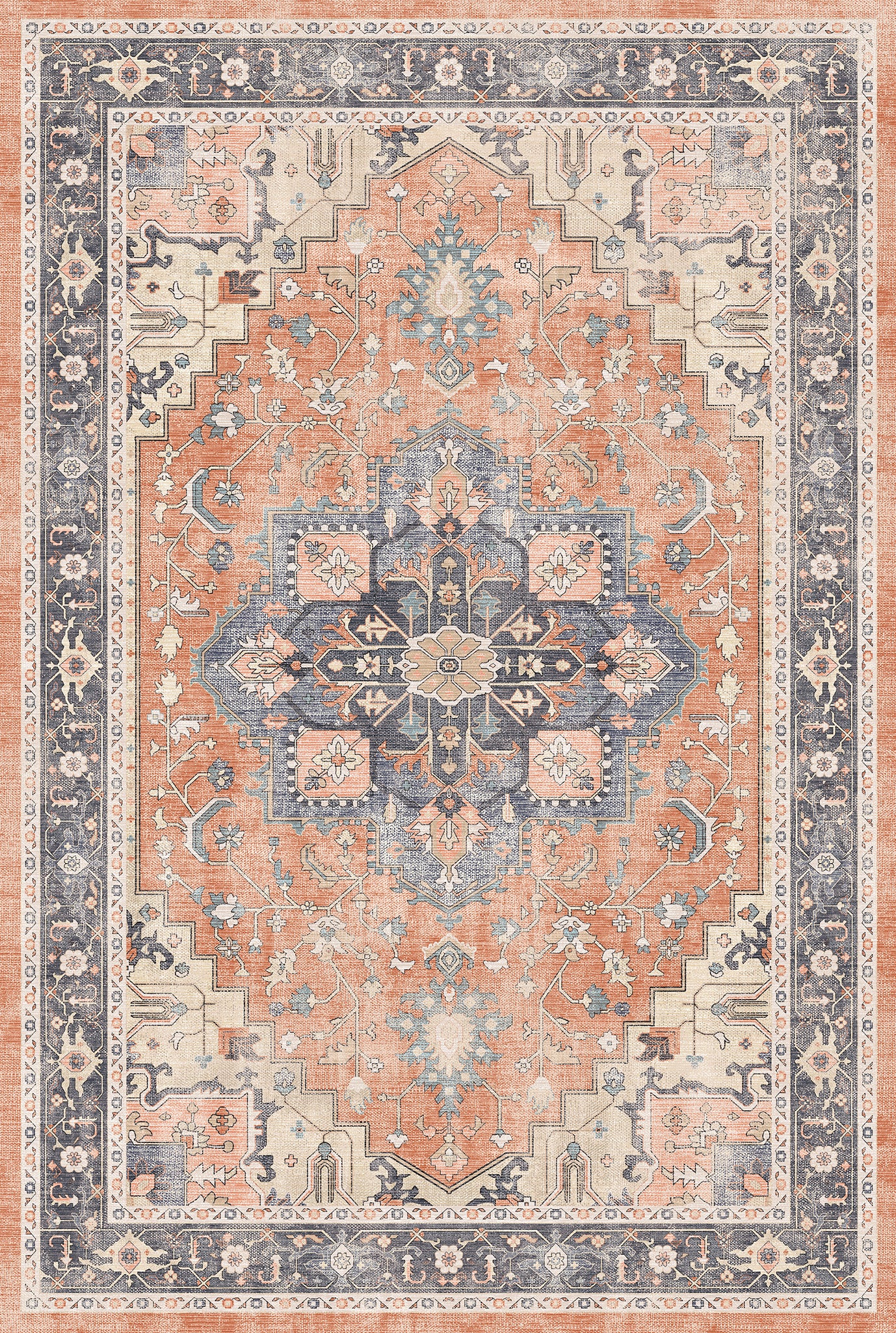 The Alora rug showcases a timeless medallion design with beautifully intricate patterns and a subtle blend of colors. Perfect for adding a touch of elegance to any room, its traditional charm enhances living rooms, bedrooms, or dining areas. This washable rug offers both style and practicality, making it an ideal choice for high-traffic spaces.