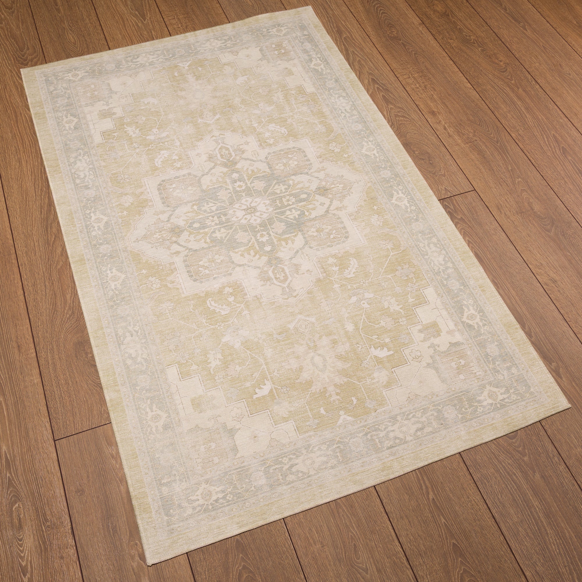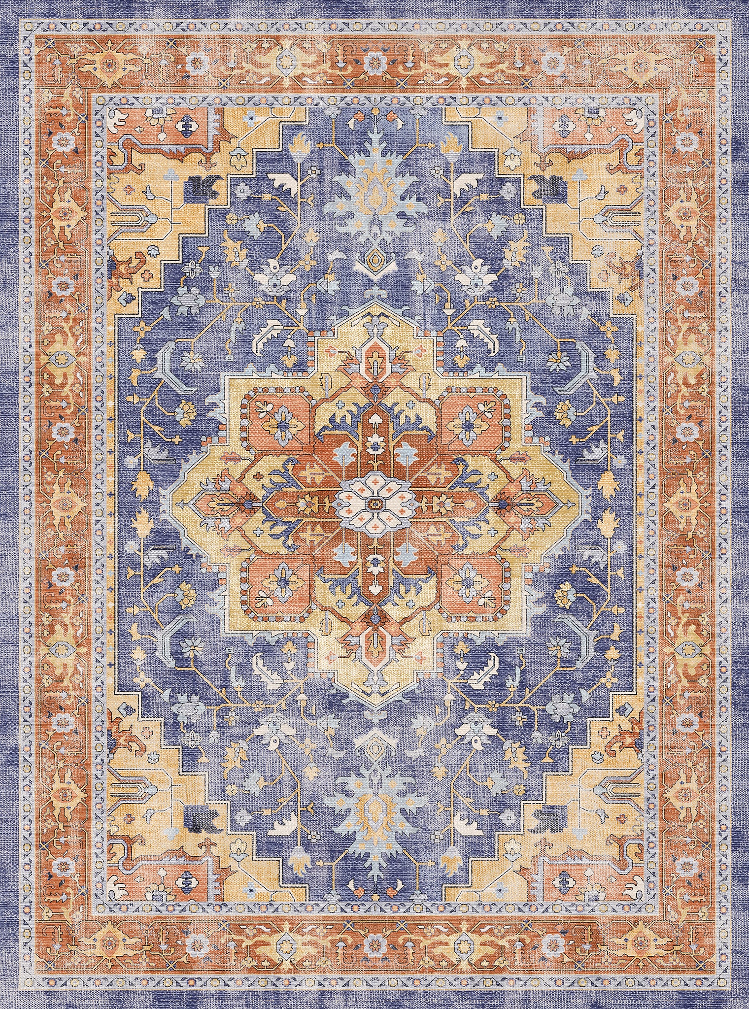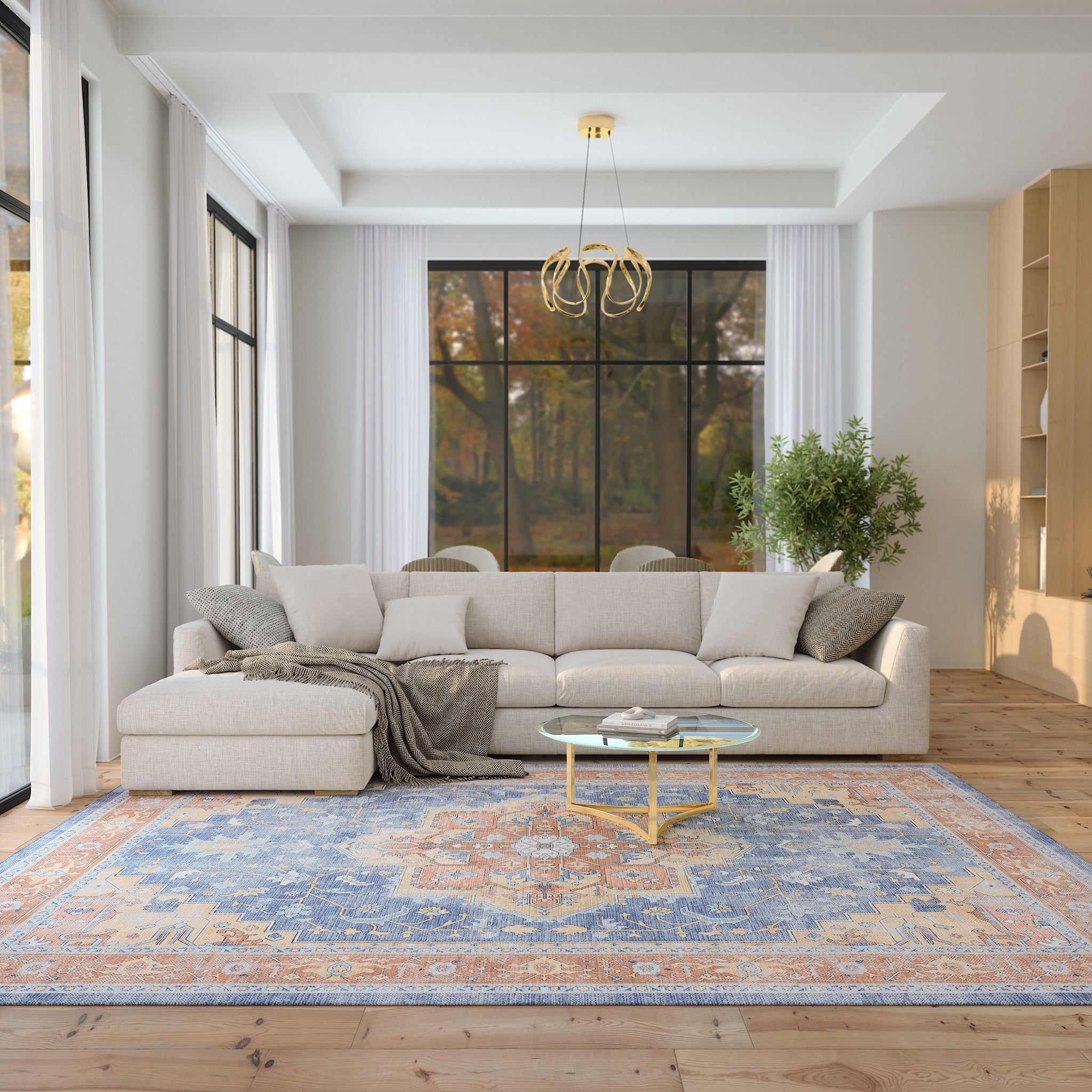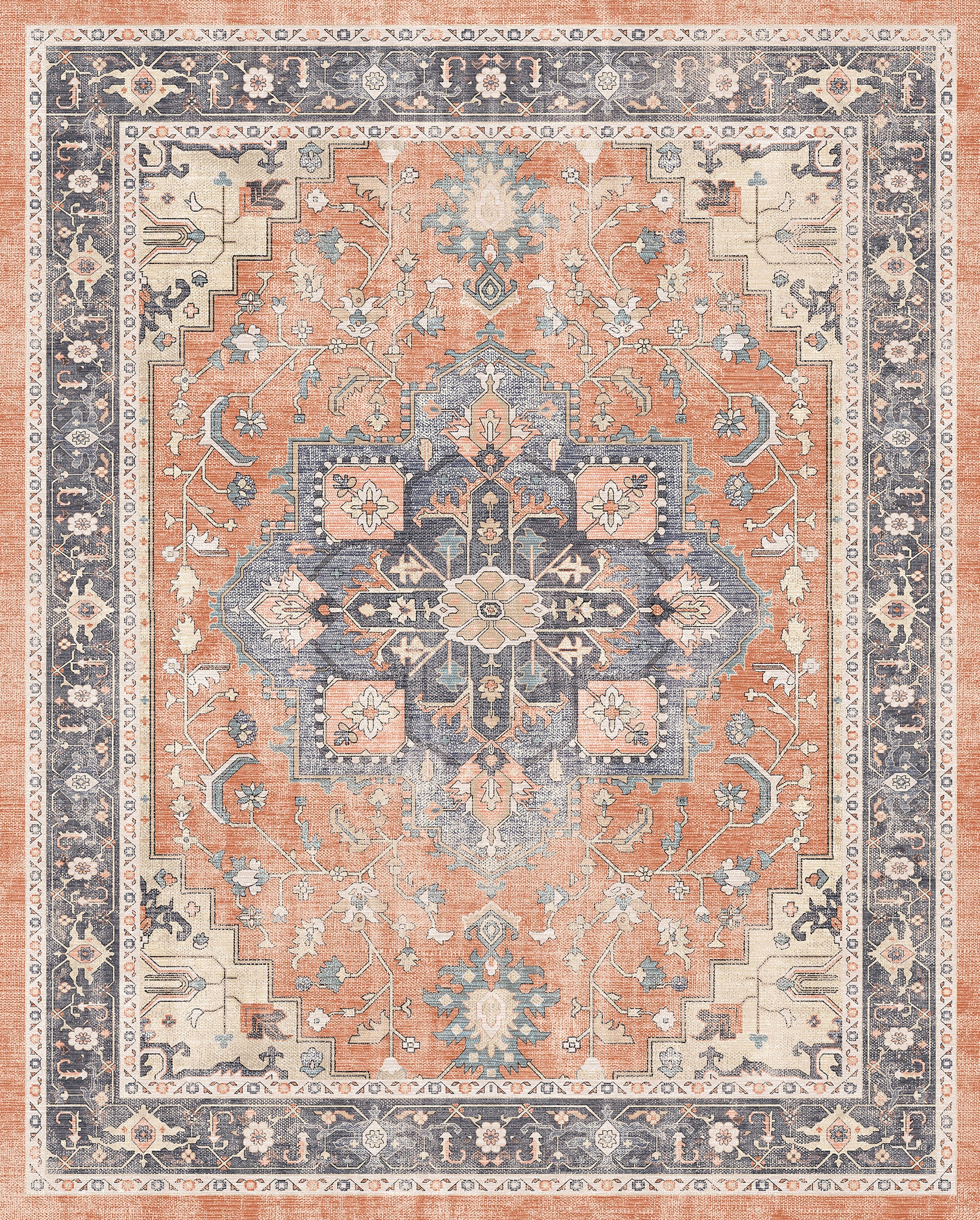 The Alora rug showcases a timeless medallion design with beautifully intricate patterns and a subtle blend of colors. Perfect for adding a touch of elegance to any room, its traditional charm enhances living rooms, bedrooms, or dining areas. This washable rug offers both style and practicality, making it an ideal choice for high-traffic spaces.