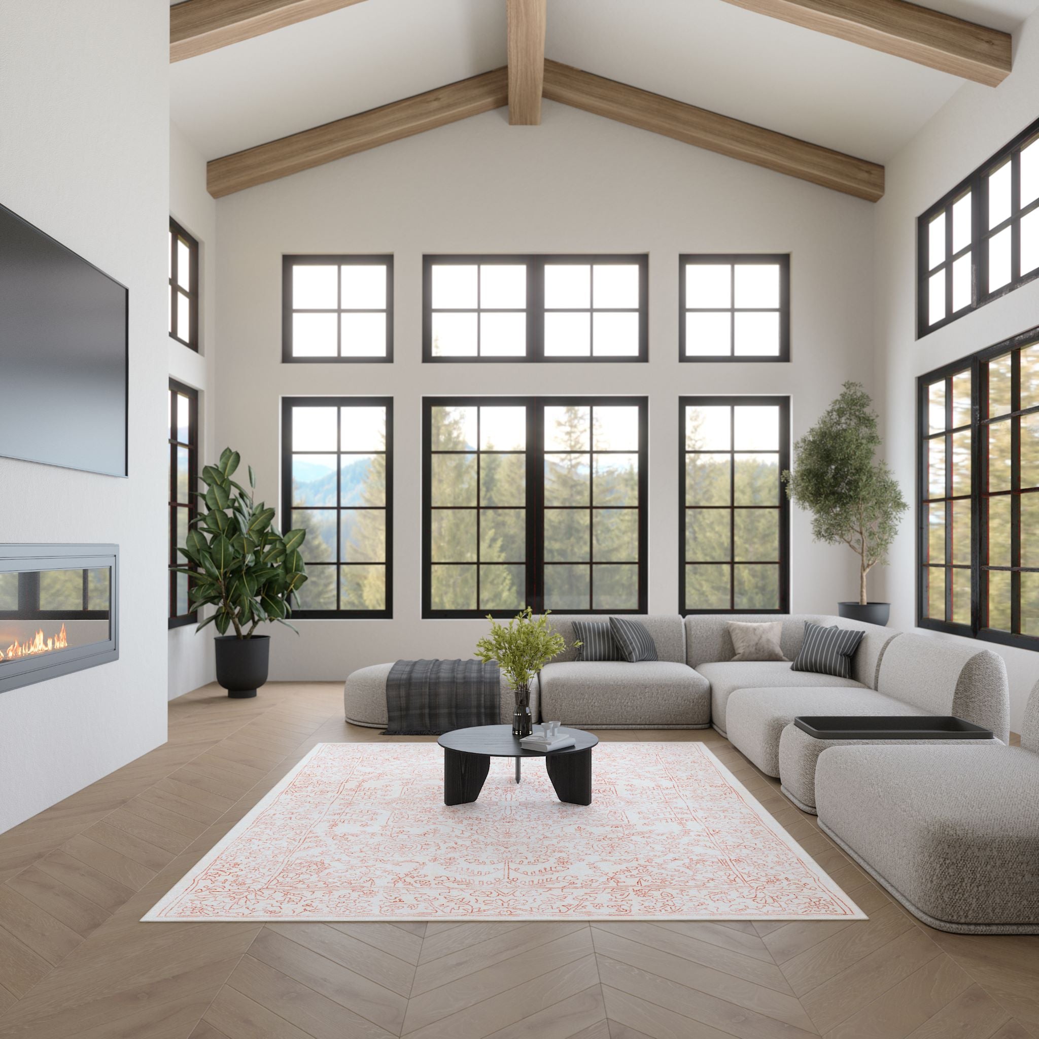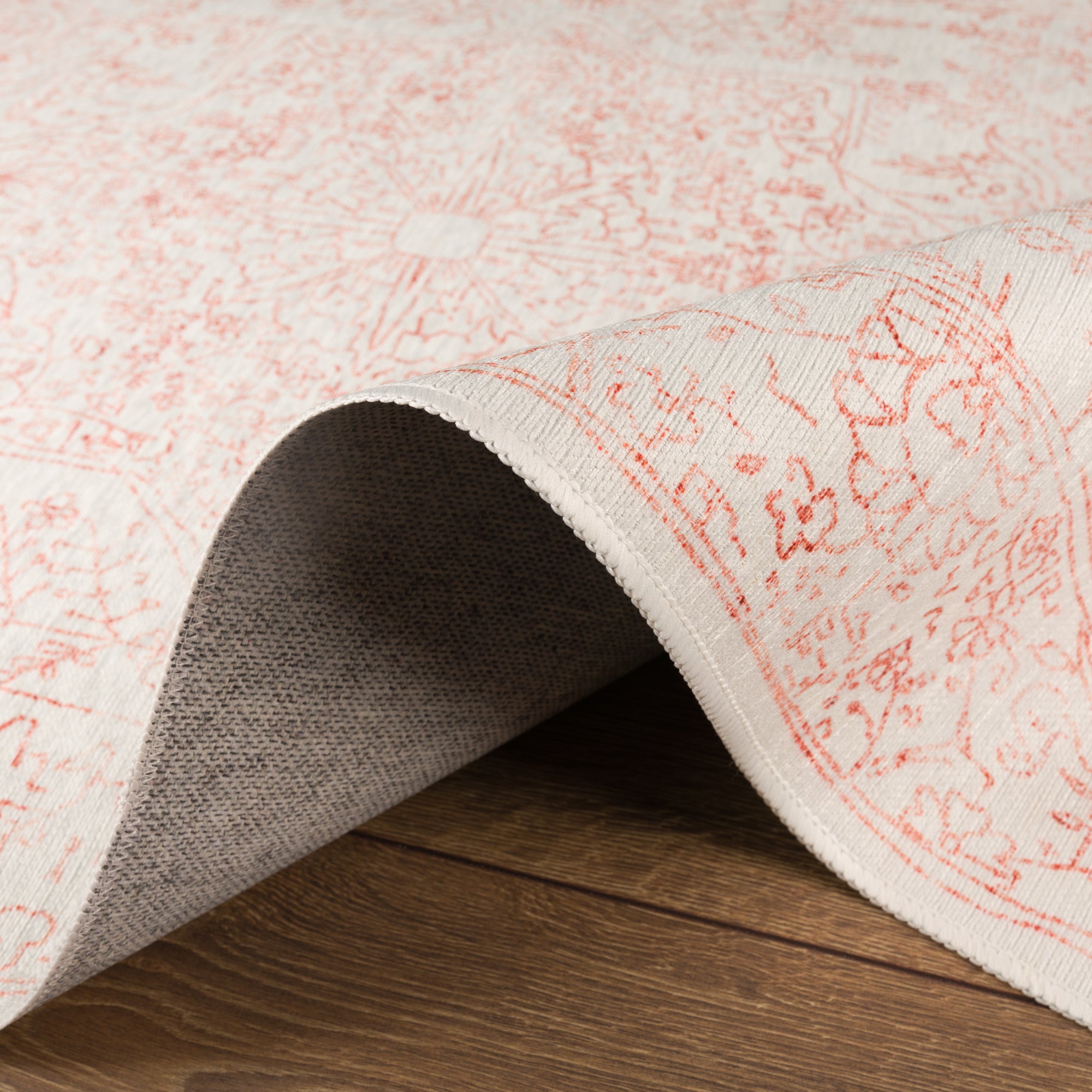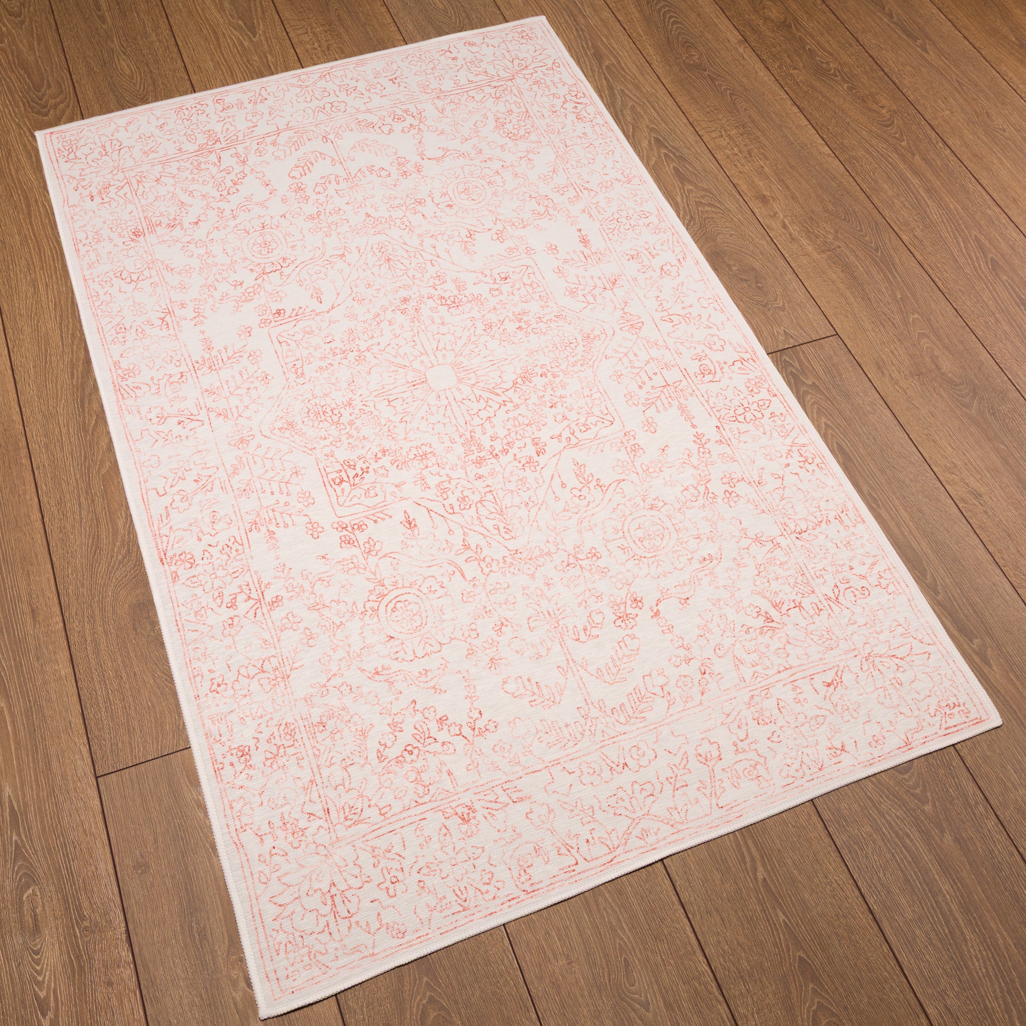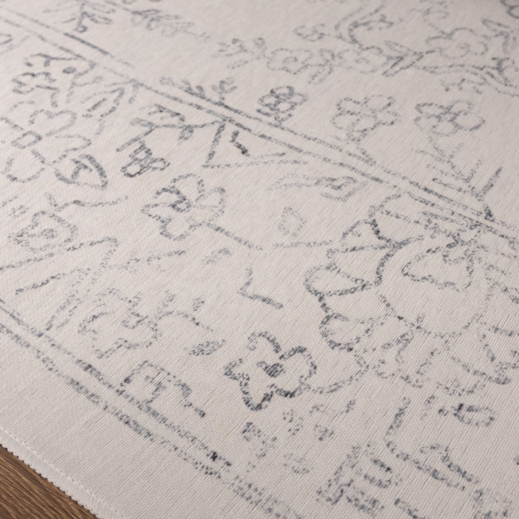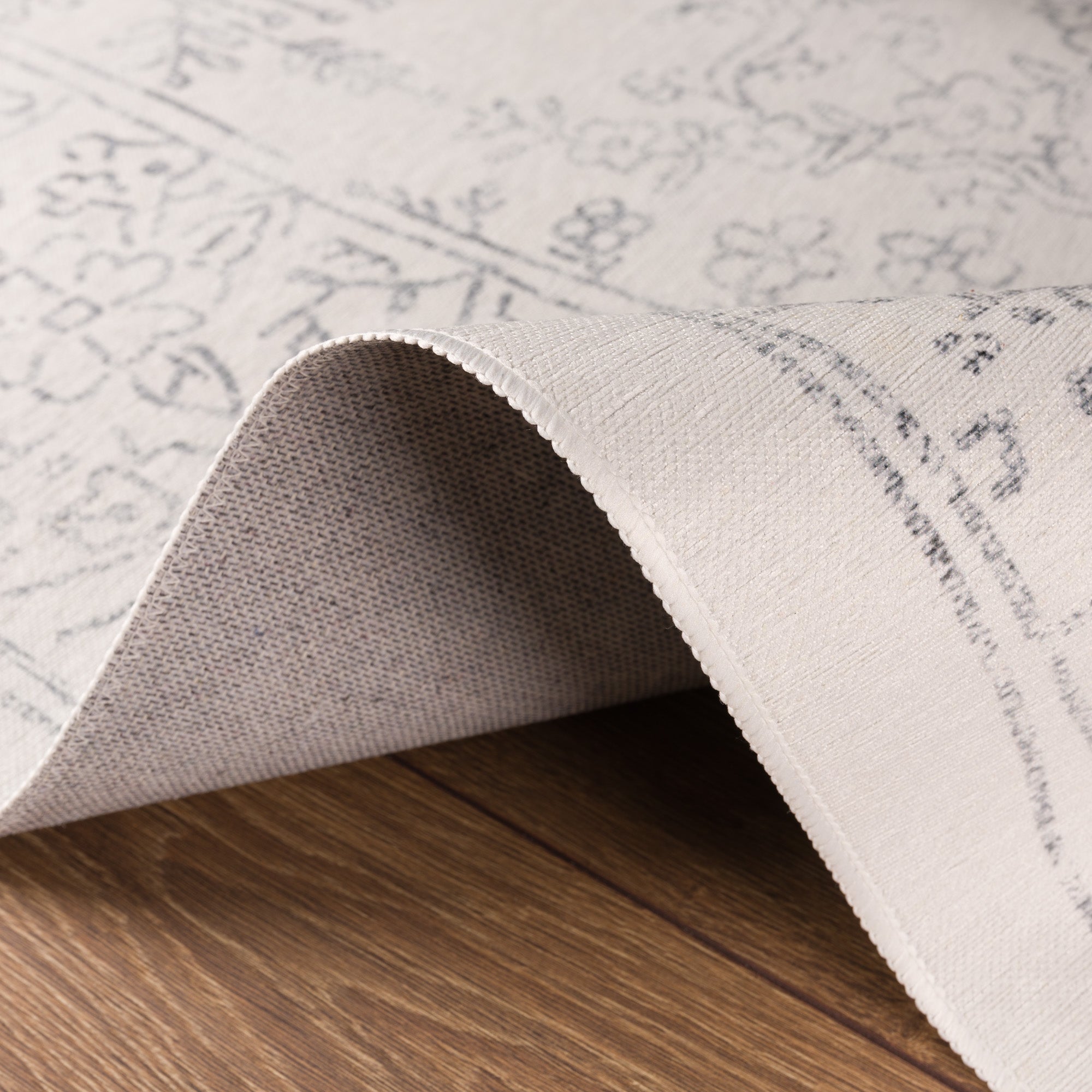 The Amira rug showcases a timeless medallion design with delicate ornamental details, ideal for bringing a touch of elegance to living rooms, bedrooms, or entryways. Its classic pattern and soft hues add a sophisticated charm, while the washable fabric ensures both style and practicality for any home environment.