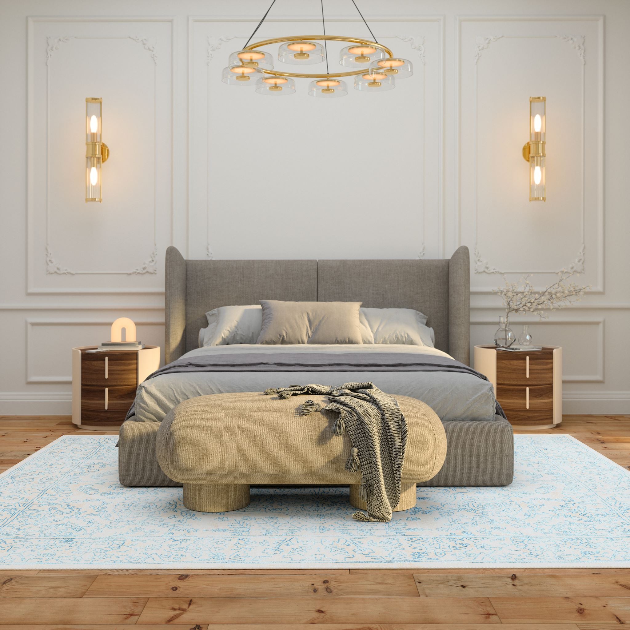 When selecting the perfect rug size, consider the size of your bed as a key factor. A large area rug placed under the bed often serves as the room’s focal point. Alternatively, a smaller rug beside the bed adds a nice accent and provides a cozy spot for your feet.