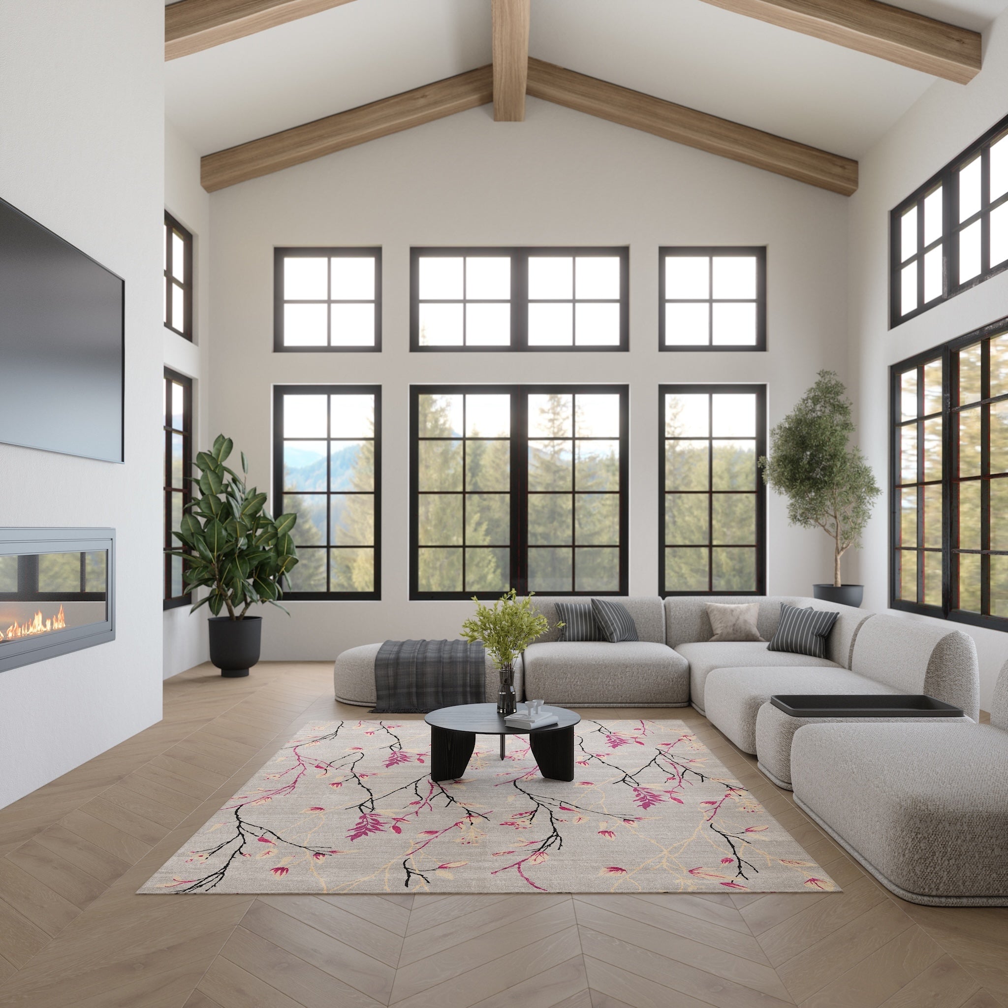The Aspyn Delicate Leafy Rug features a graceful pattern of slender branches and soft leaves, creating a soothing botanical touch. Its nature-inspired design and subtle color palette bring a refreshing, airy feel to any space. Perfect for brightening up living rooms, bedrooms, or reading nooks with a serene and elegant vibe.