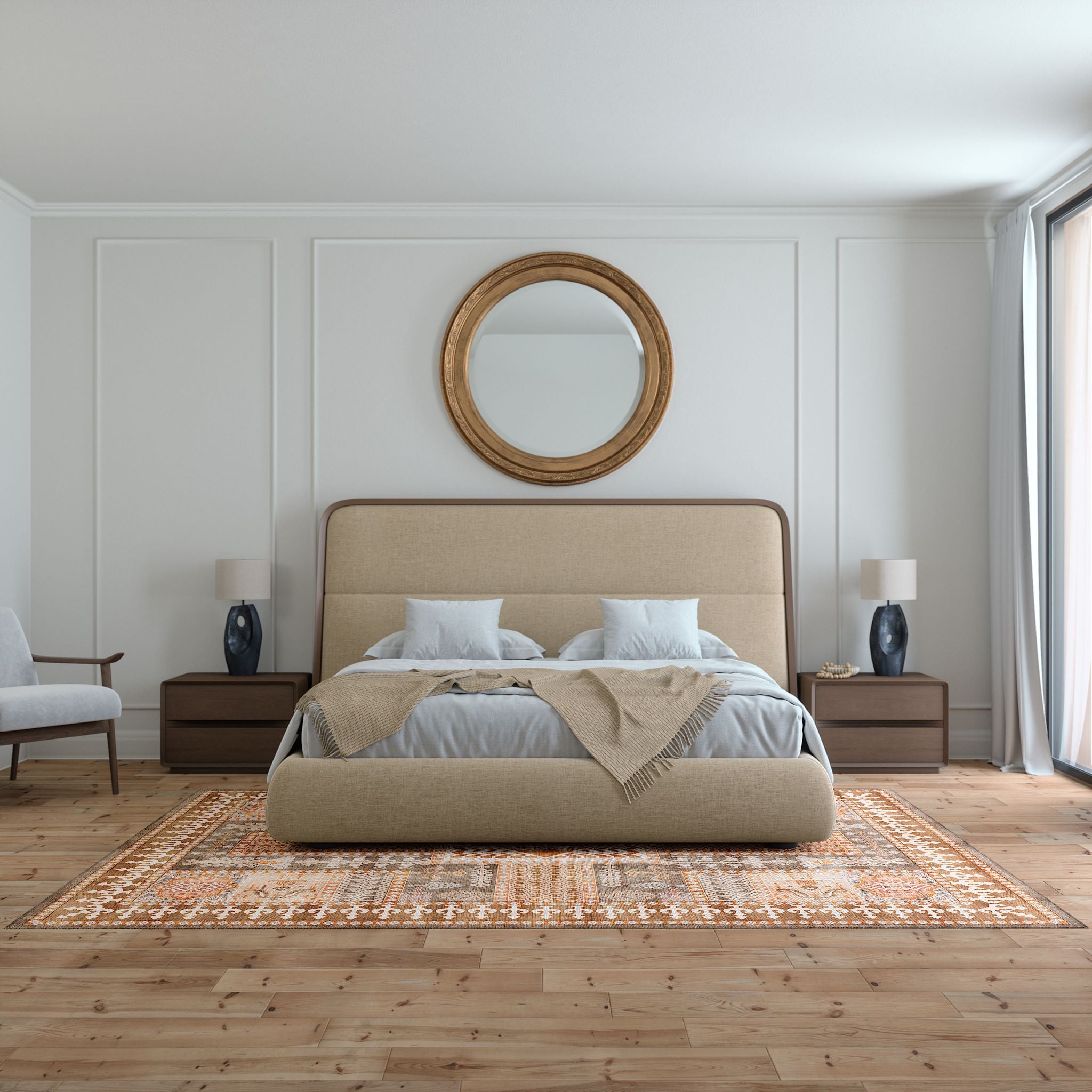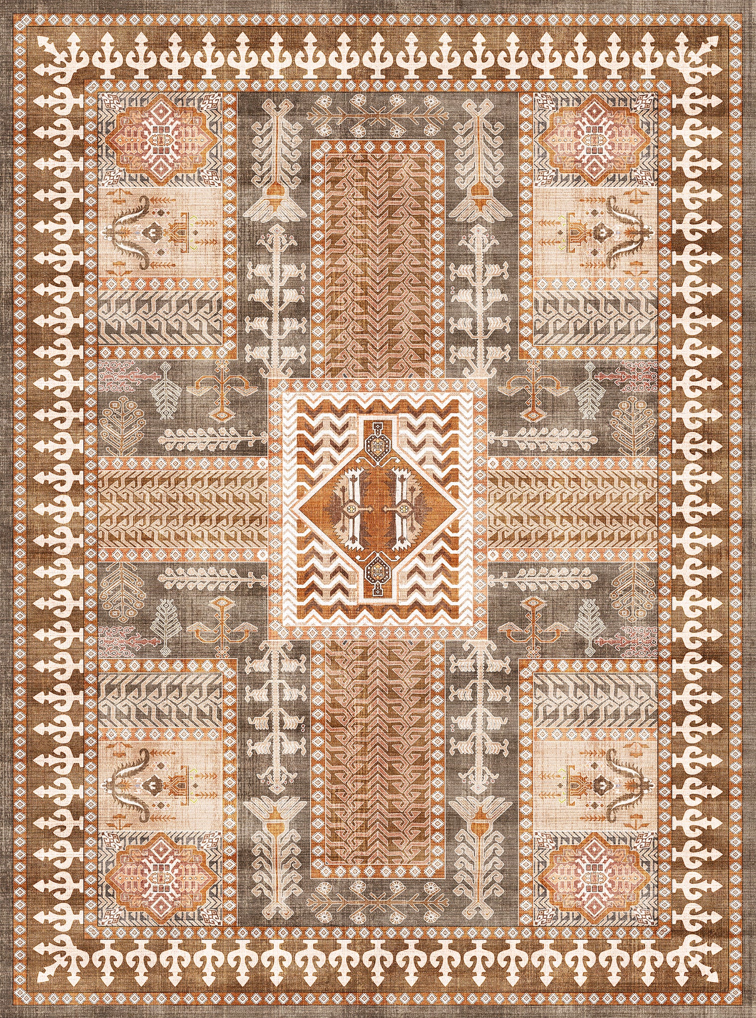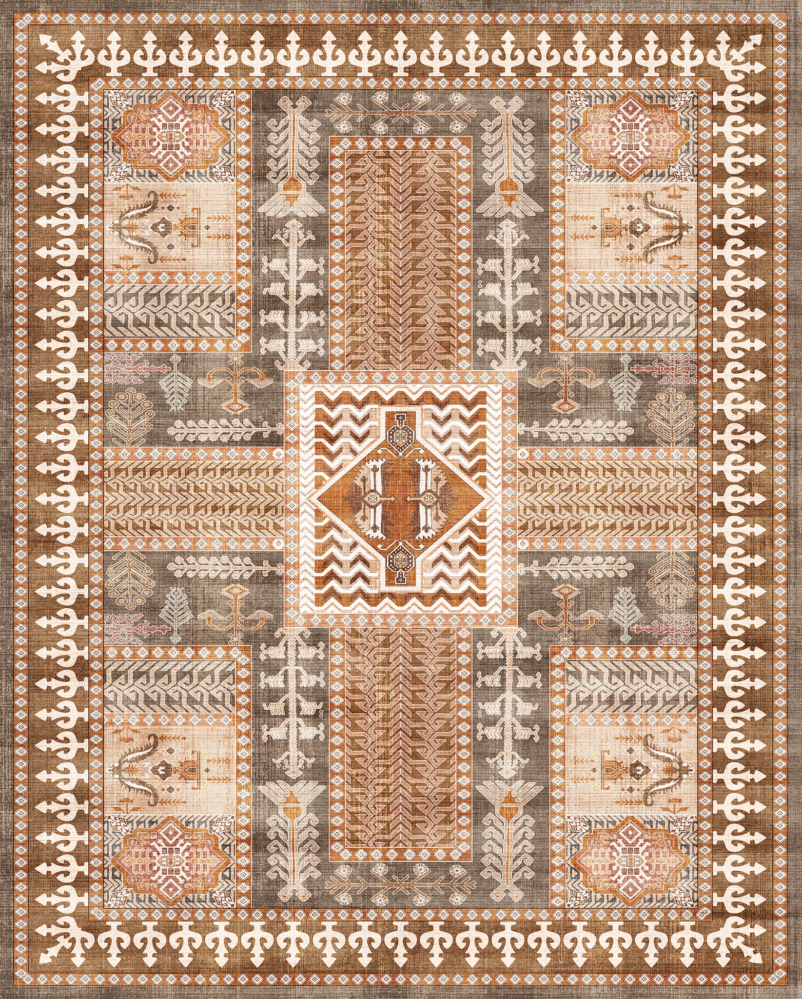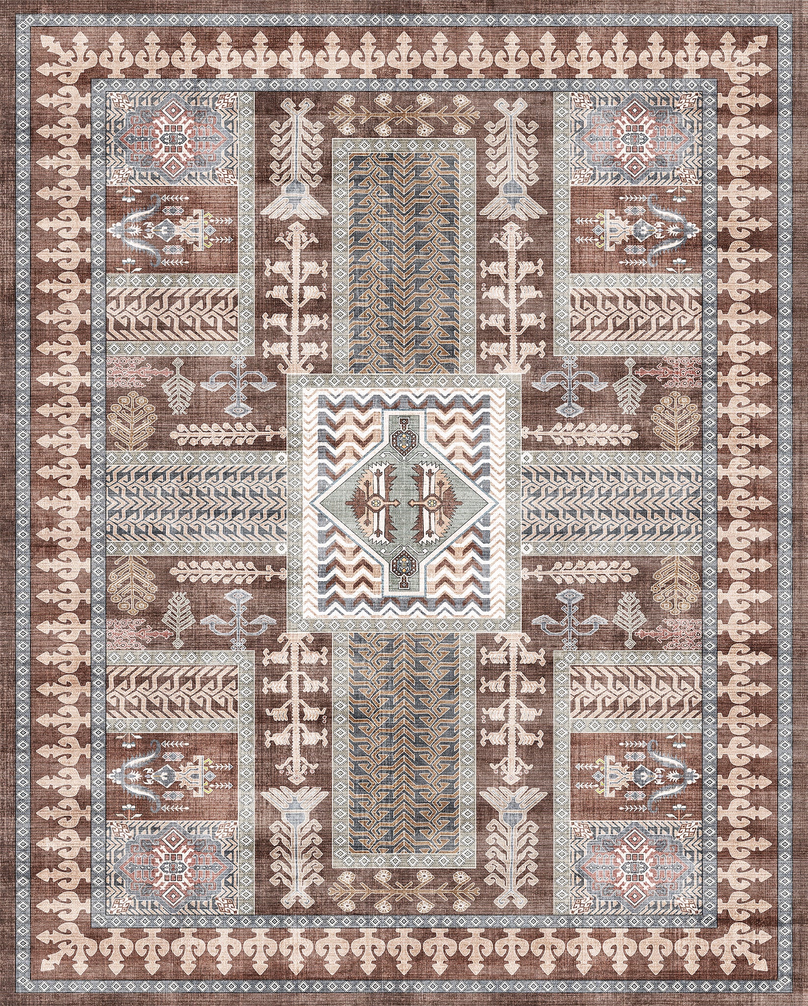 The Astra rug brings a bold and dynamic touch to your living space with its intricate geometric patterns and earthy color palette. Designed to make a statement while remaining practical, this washable rug is ideal for high-traffic areas. Its rich textures and vibrant details elevate any room, offering both beauty and durability for modern homes.