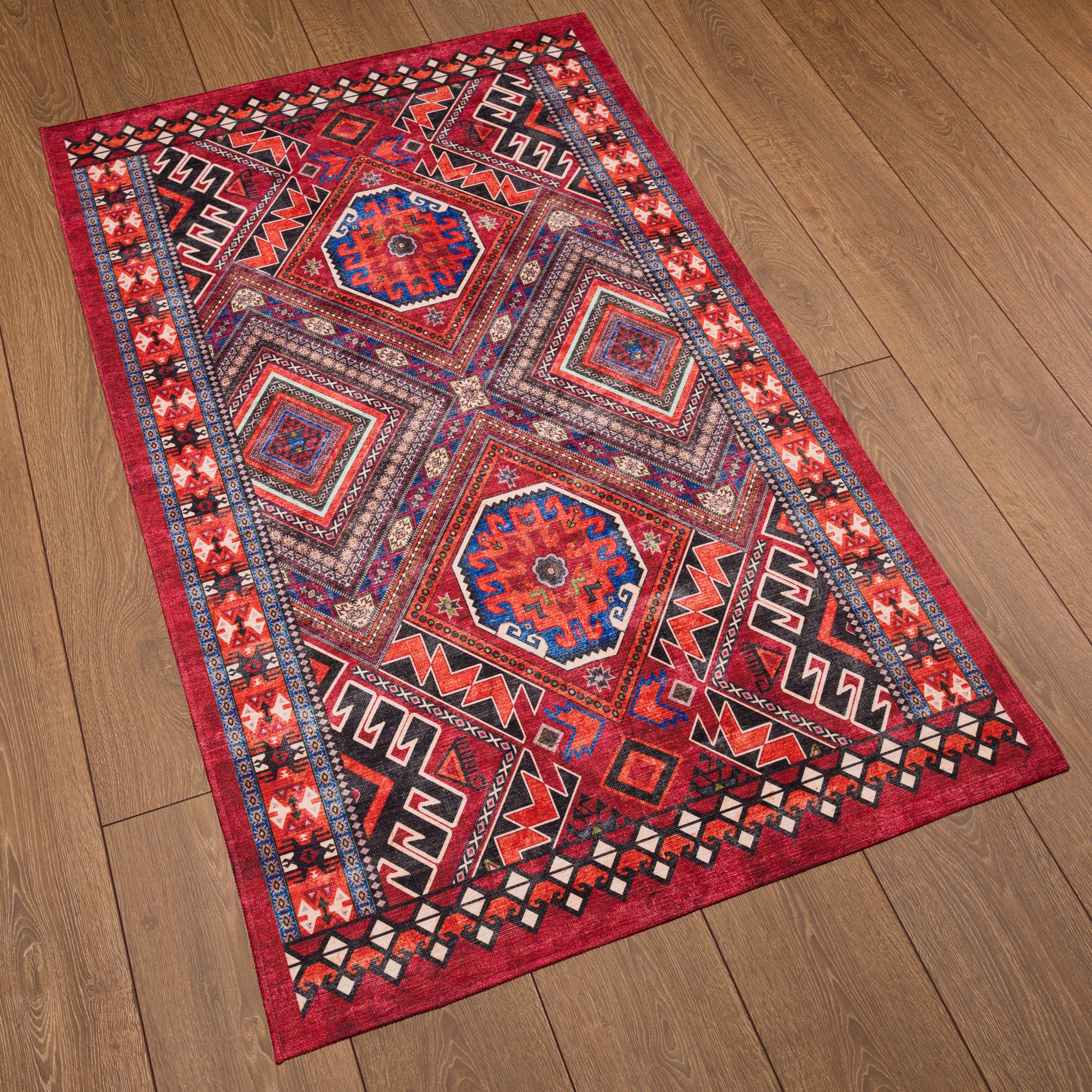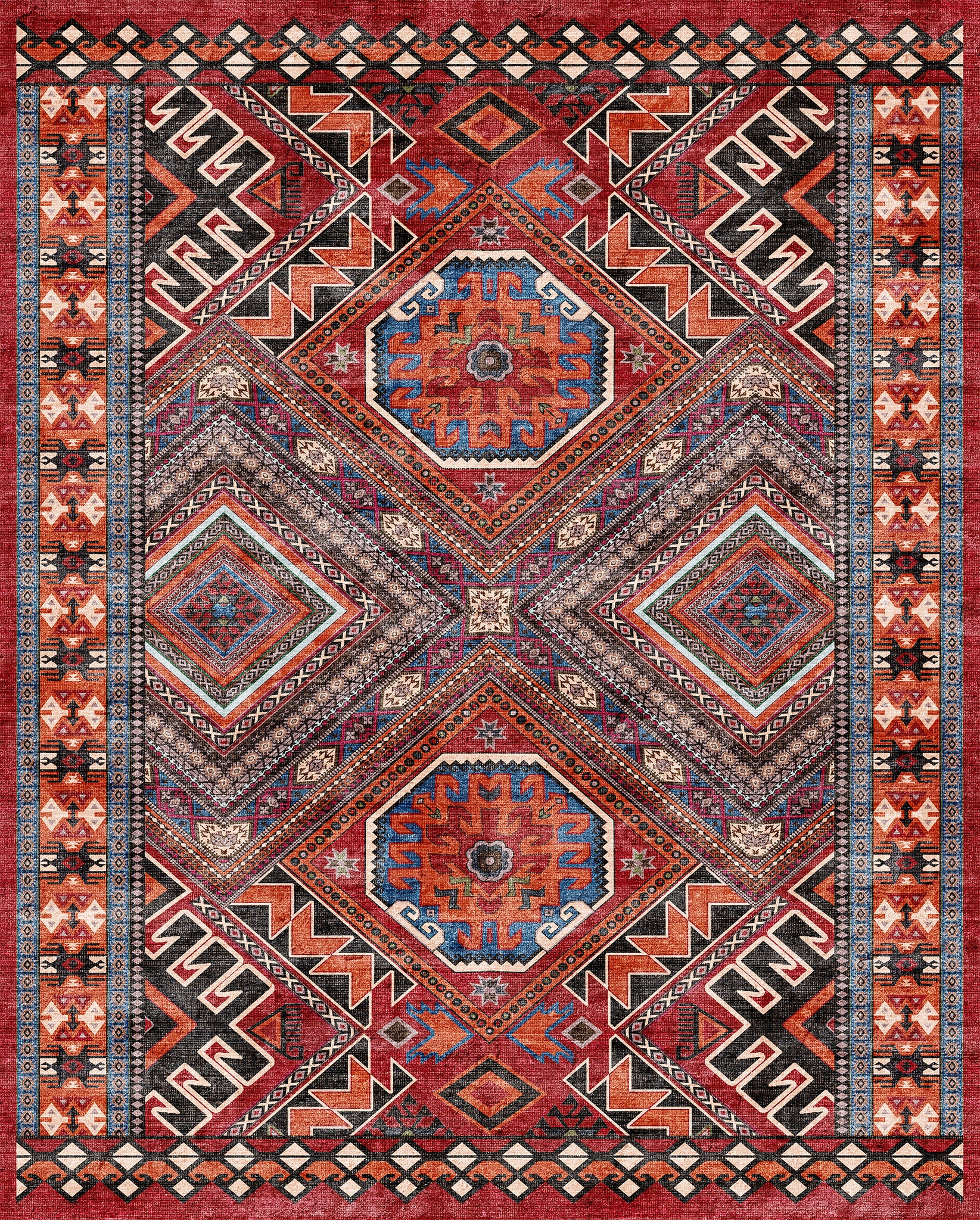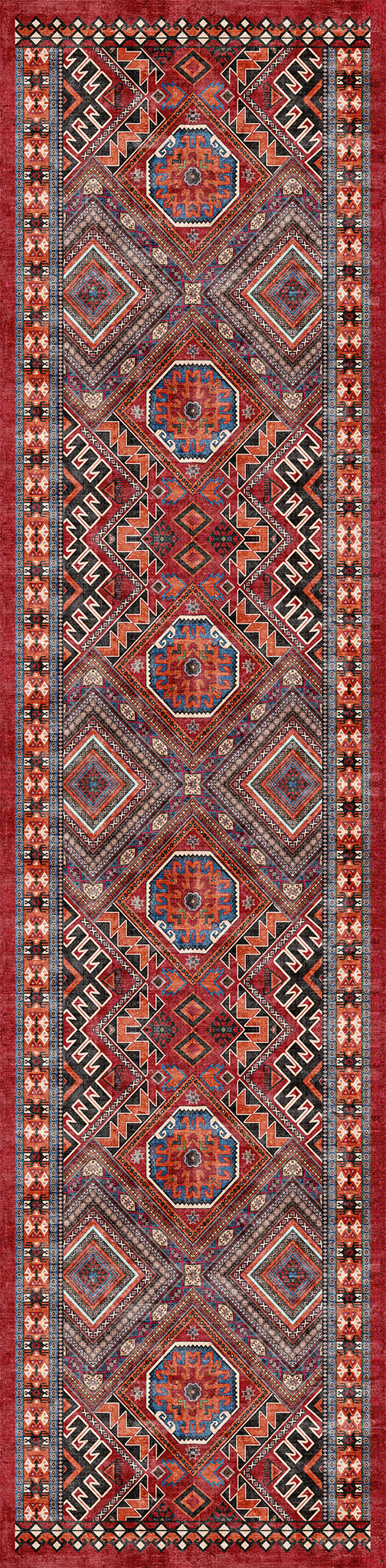 The Caria rug brings a vibrant bohemian essence with its intricately designed tribal medallions and geometric accents. Its rich detailing and earthy tones create an inviting atmosphere, making it an ideal centerpiece for living rooms, bedrooms, or even entryways. This washable rug offers not only beauty but also practical care, ensuring it remains a stunning focal point in any space.