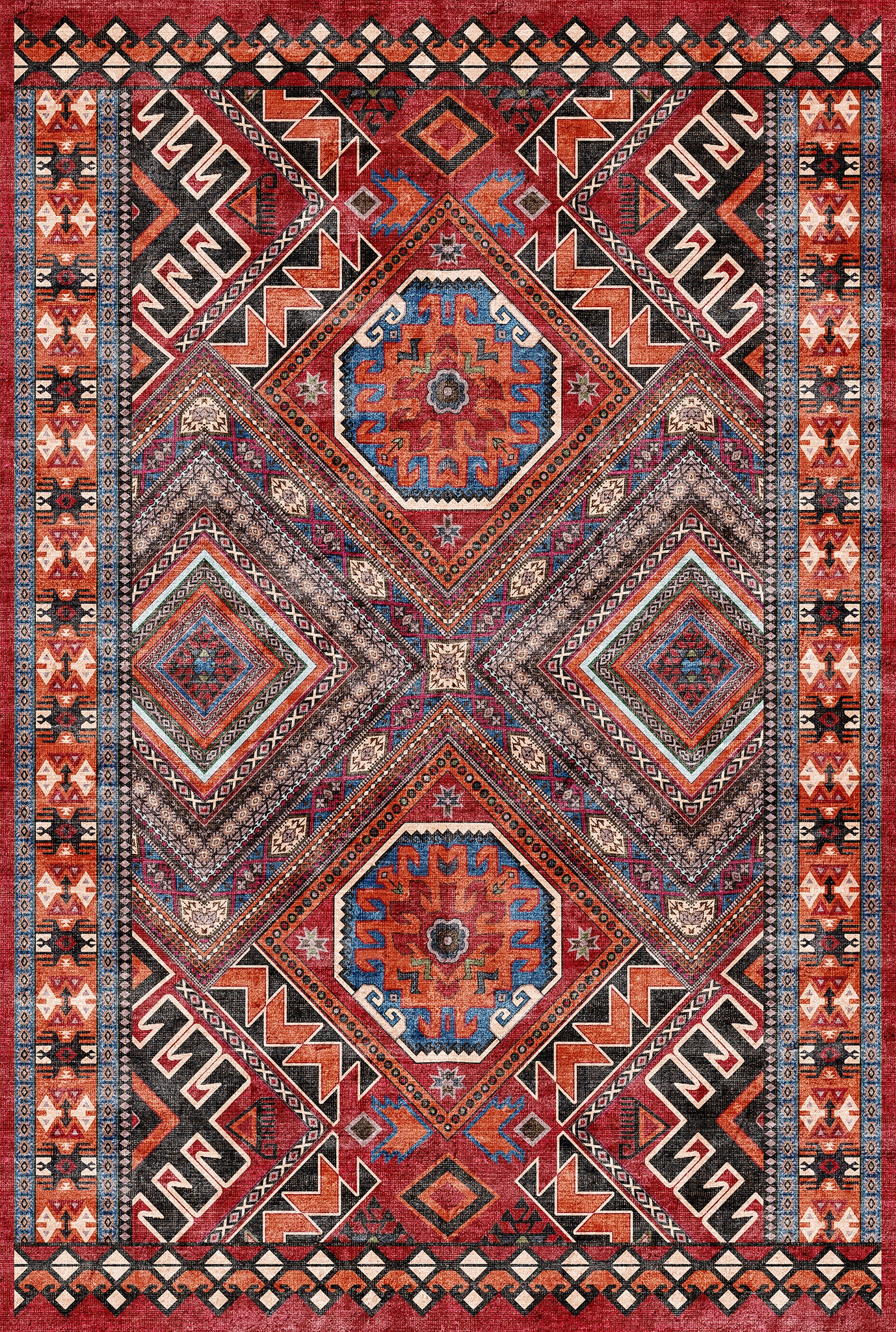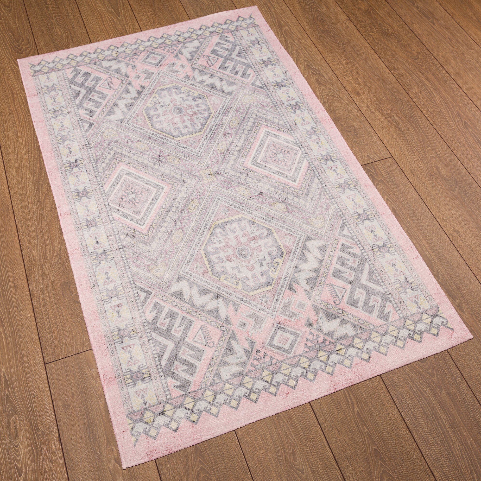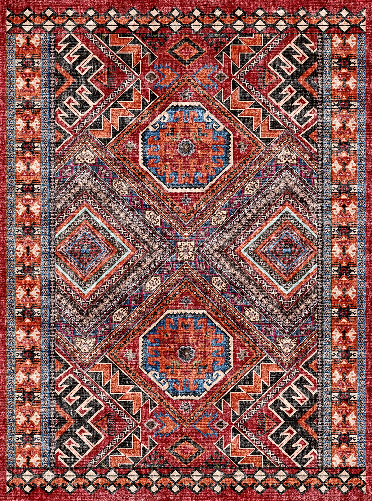 The Caria rug brings a vibrant bohemian essence with its intricately designed tribal medallions and geometric accents. Its rich detailing and earthy tones create an inviting atmosphere, making it an ideal centerpiece for living rooms, bedrooms, or even entryways. This washable rug offers not only beauty but also practical care, ensuring it remains a stunning focal point in any space.