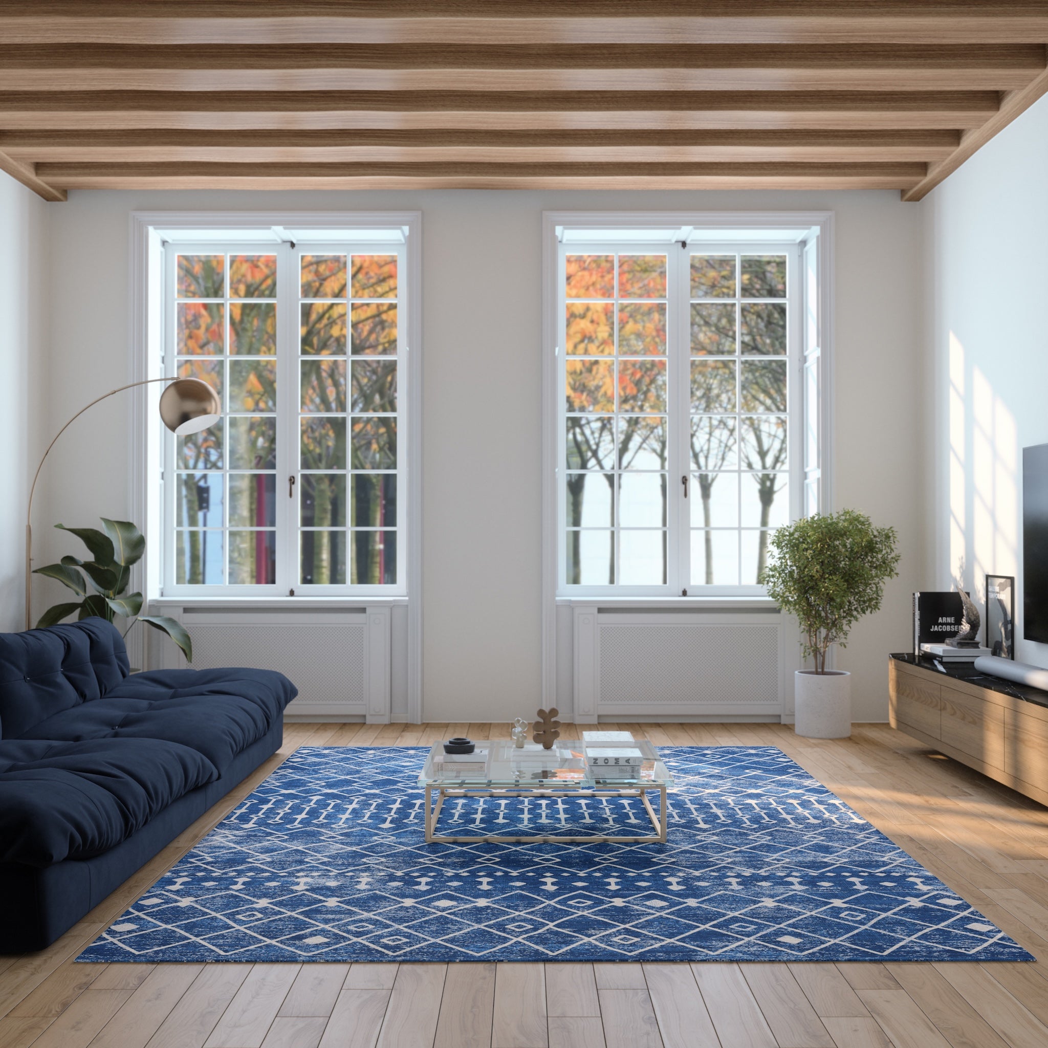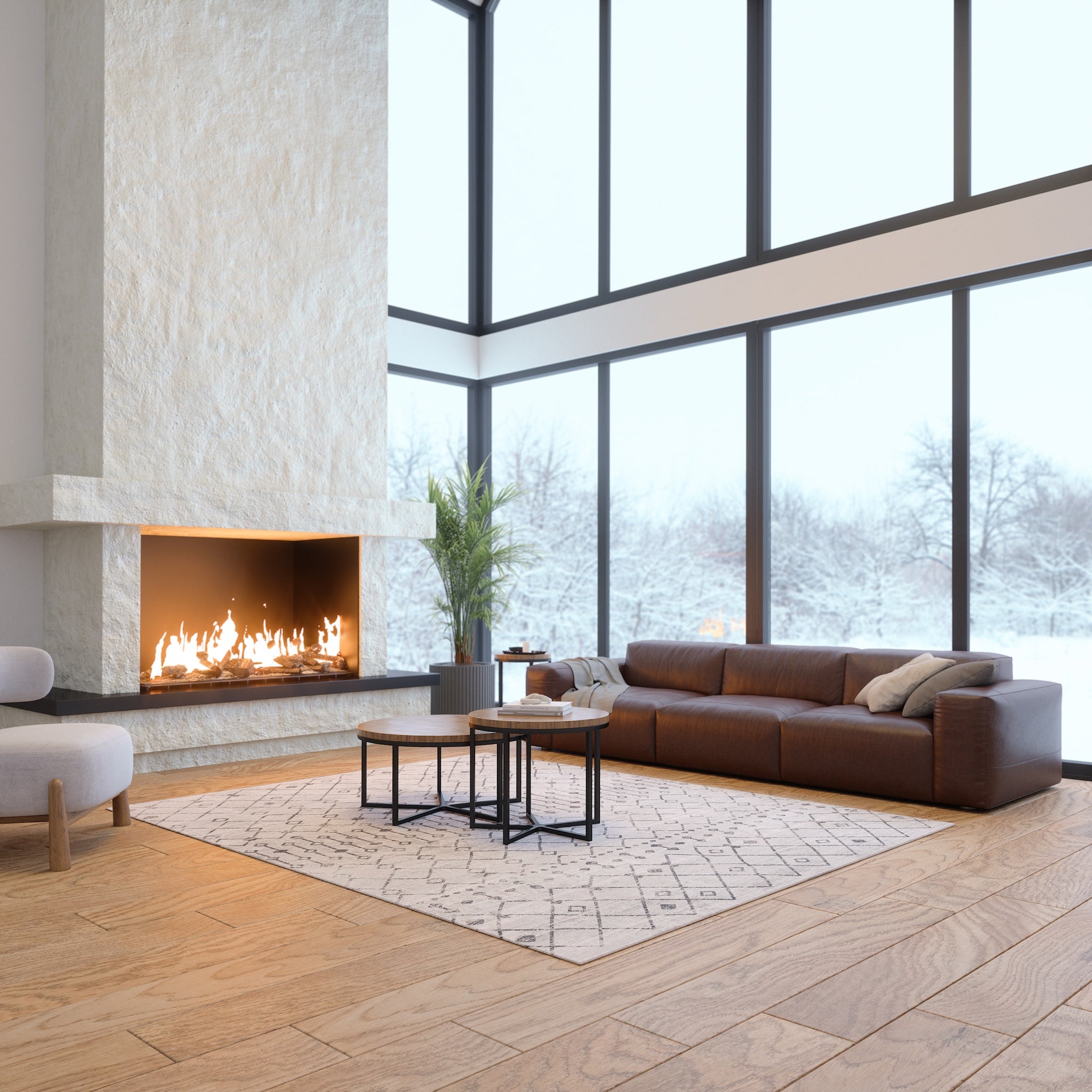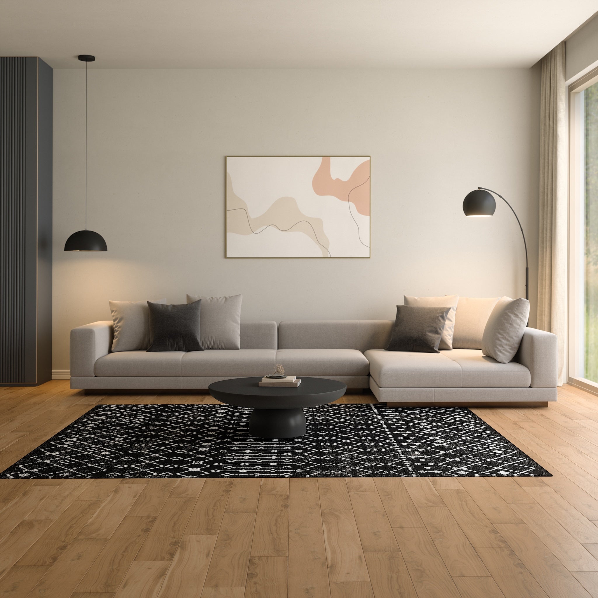 The Dixie rug showcases a striking geometric pattern with tribal influences, offering a bold and artistic flair to any space. Its modern design and versatile color options make it perfect for energizing living rooms, bedrooms, or workspaces while adding a touch of cultural charm.