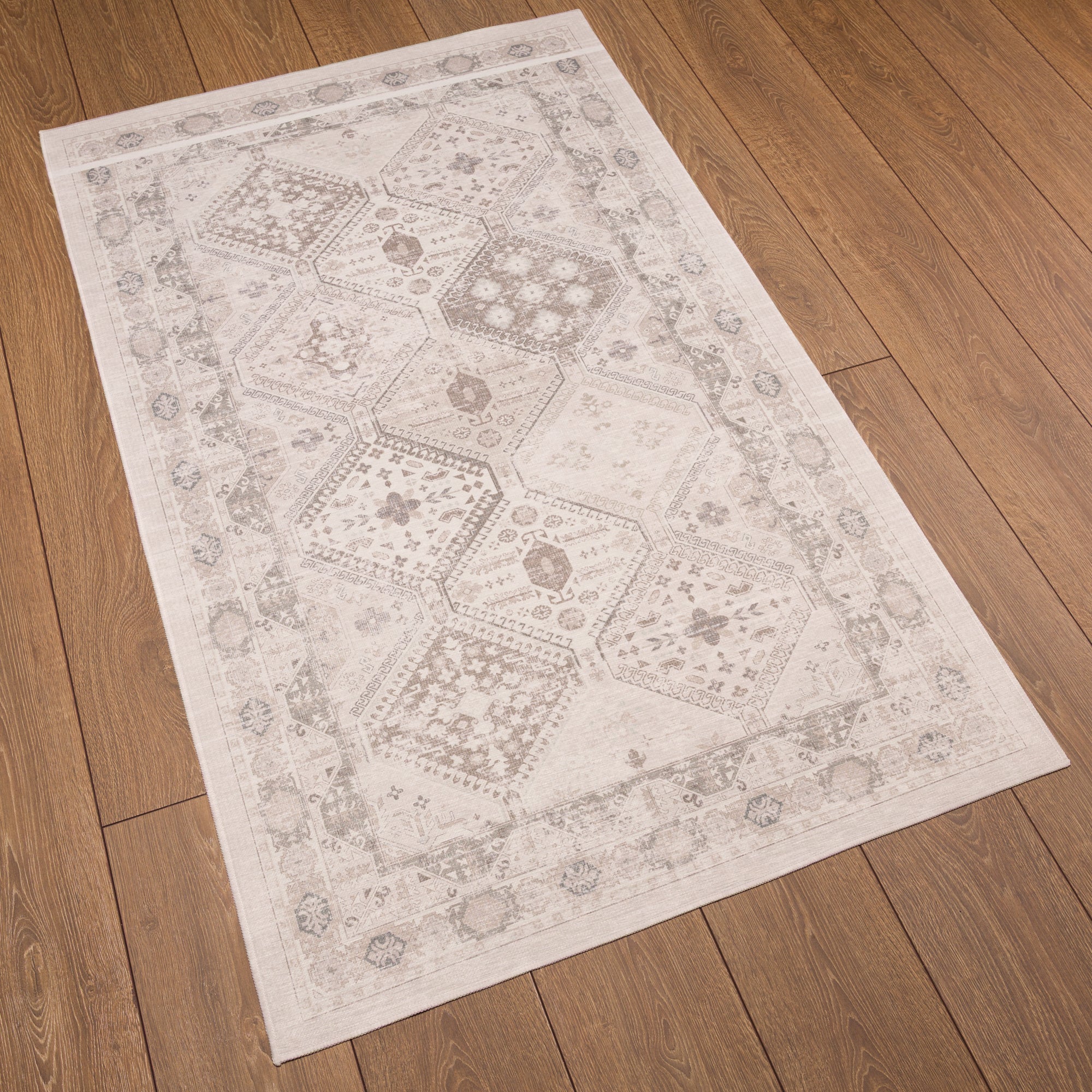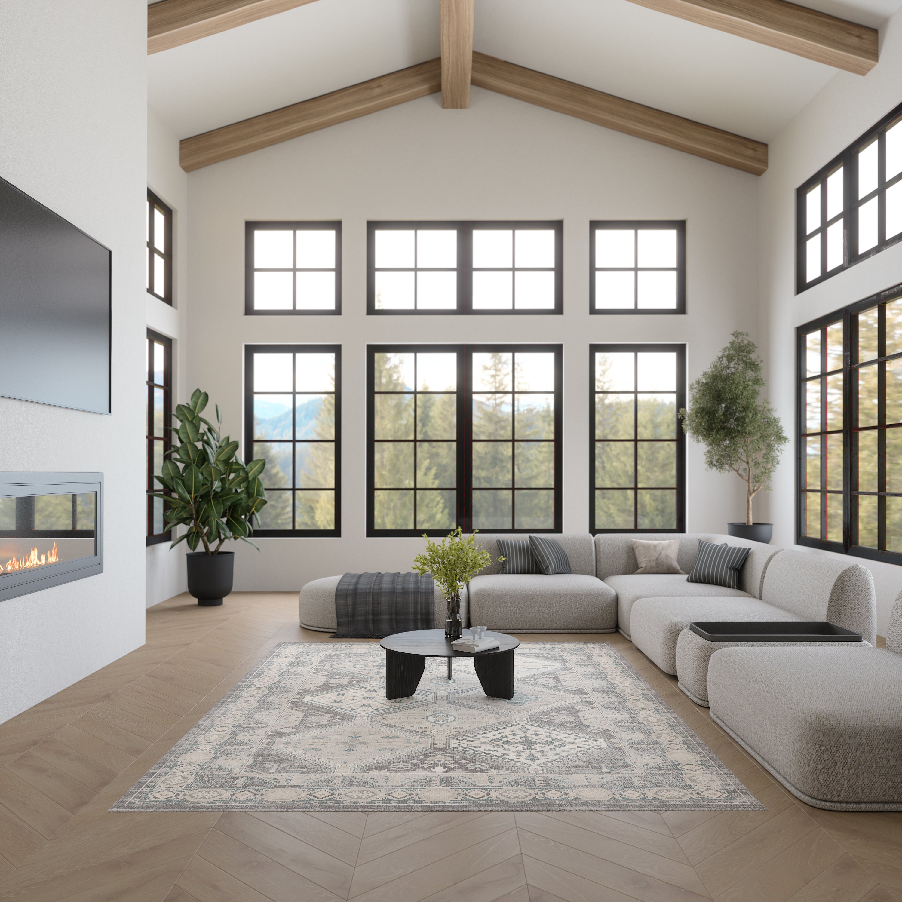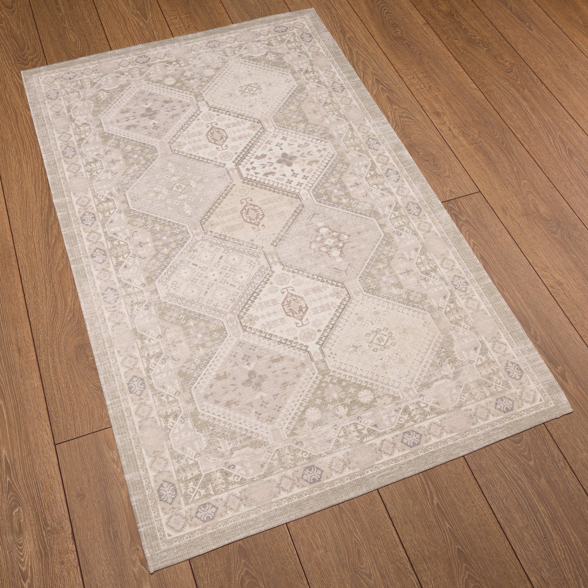 Elevate your space with the Everly Geometric Medallion Rug. Featuring a blend of intricate diamond and medallion patterns, this design brings a touch of traditional elegance to your home. The distressed finish and neutral tones make it a versatile addition, perfectly suited for living rooms, bedrooms, or dining areas.