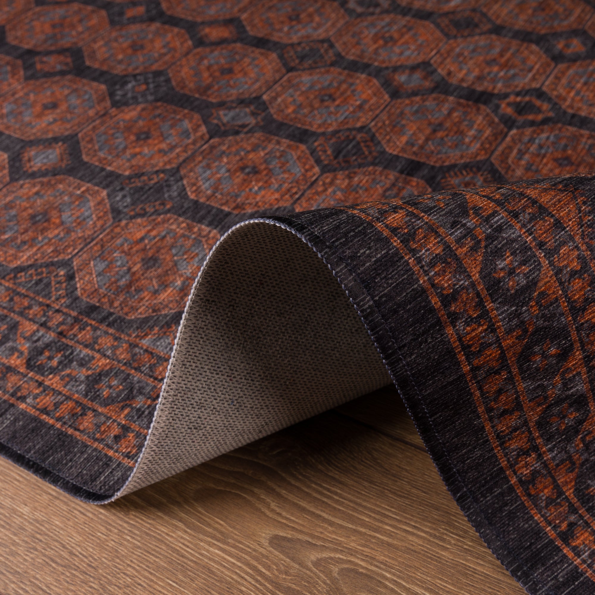 Our rugs are designed with a built-in non-slip TPR and cotton backing, eliminating the need for extra carpet tape or a rug pad. This feature ensures that your rug stays securely in place, even in high-traffic areas, offering both safety and convenience. Perfect for busy households, the non-slip backing provides added stability and ease of use.