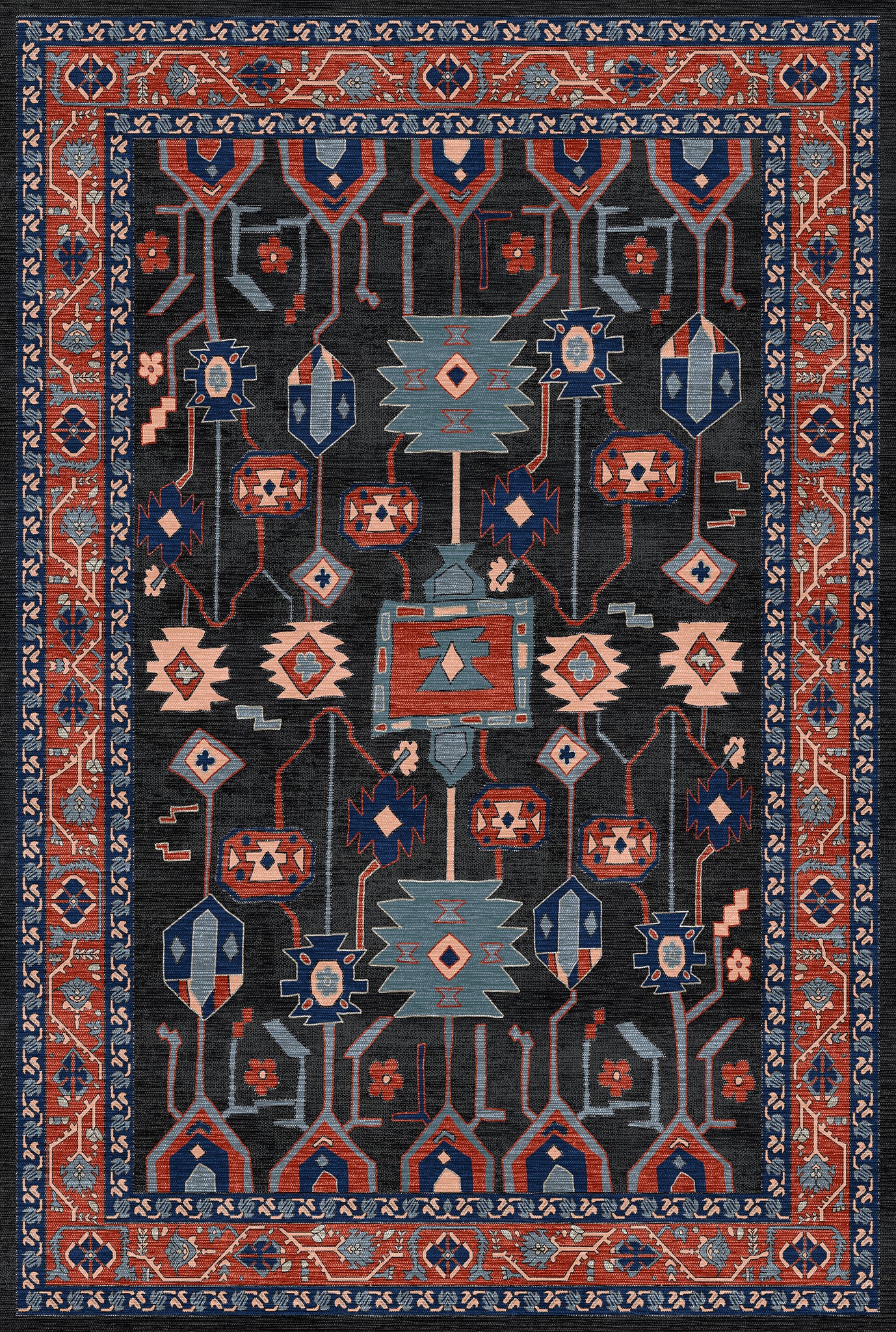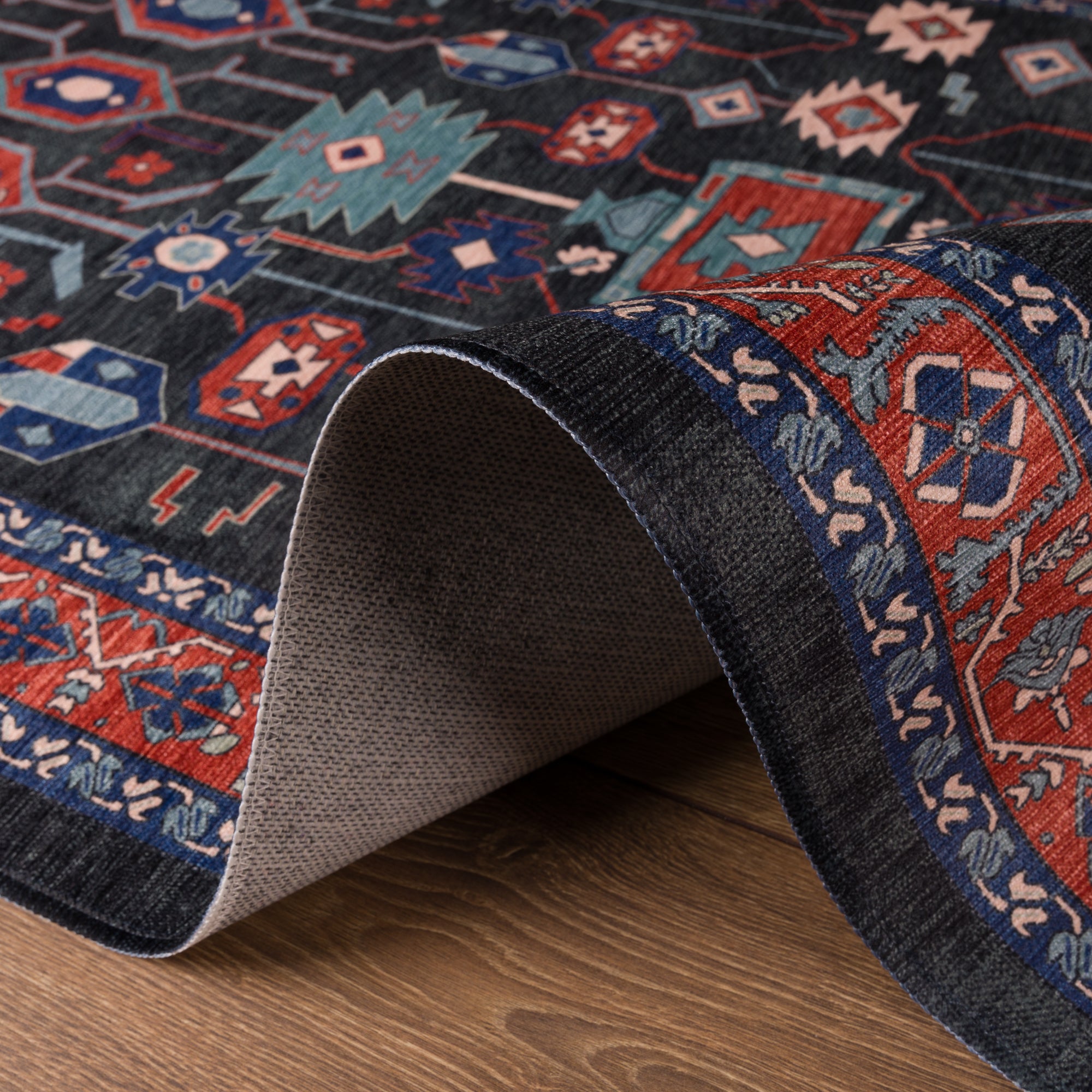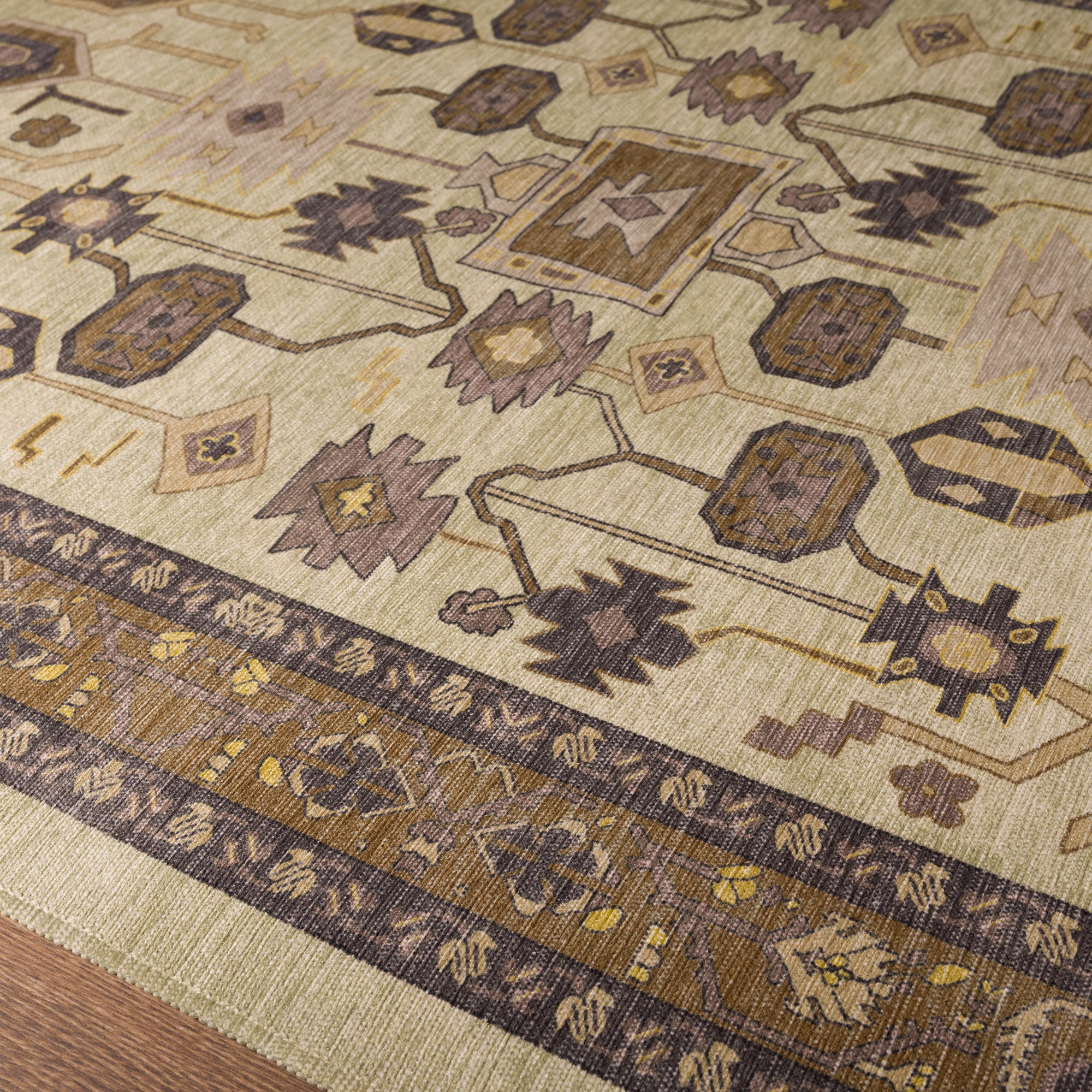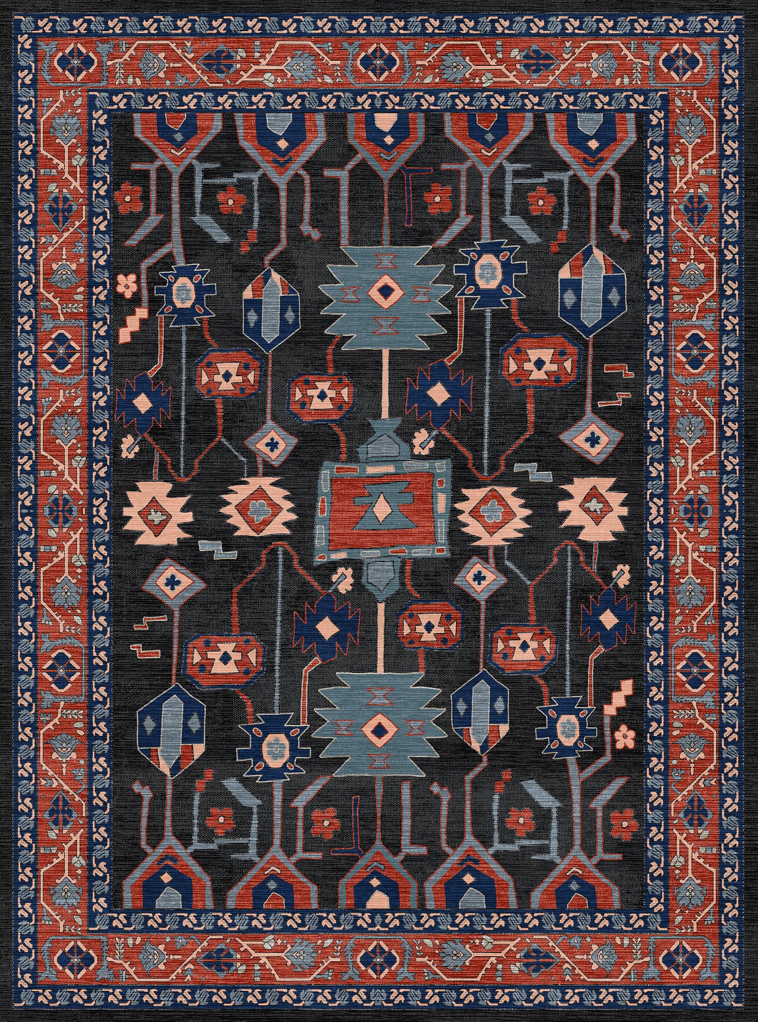 The Idris rug showcases a unique blend of geometric and ornamental patterns, offering a timeless design with a rich color palette. Perfect for enhancing living rooms, bedrooms, or dining areas, its intricate details add a touch of tradition and elegance to any space. This washable rug combines beauty with practicality, making it ideal for busy homes.