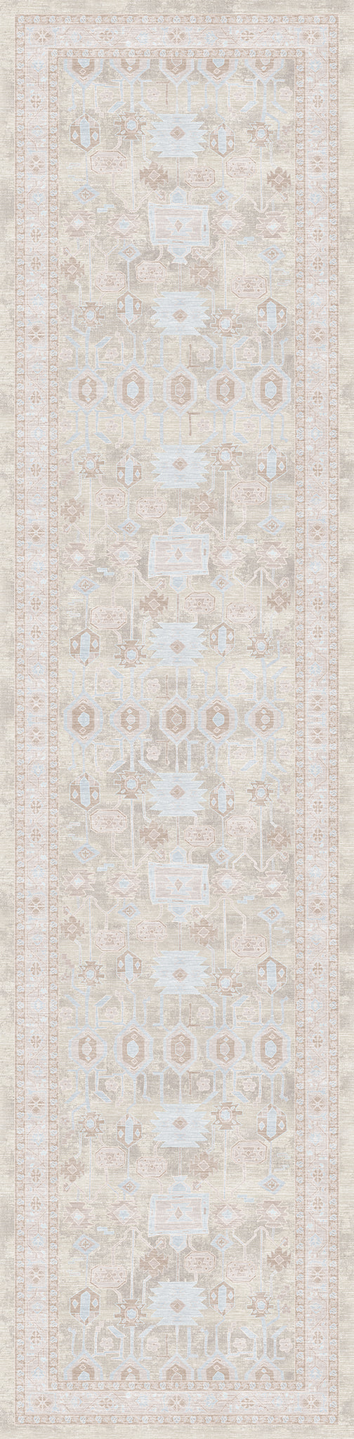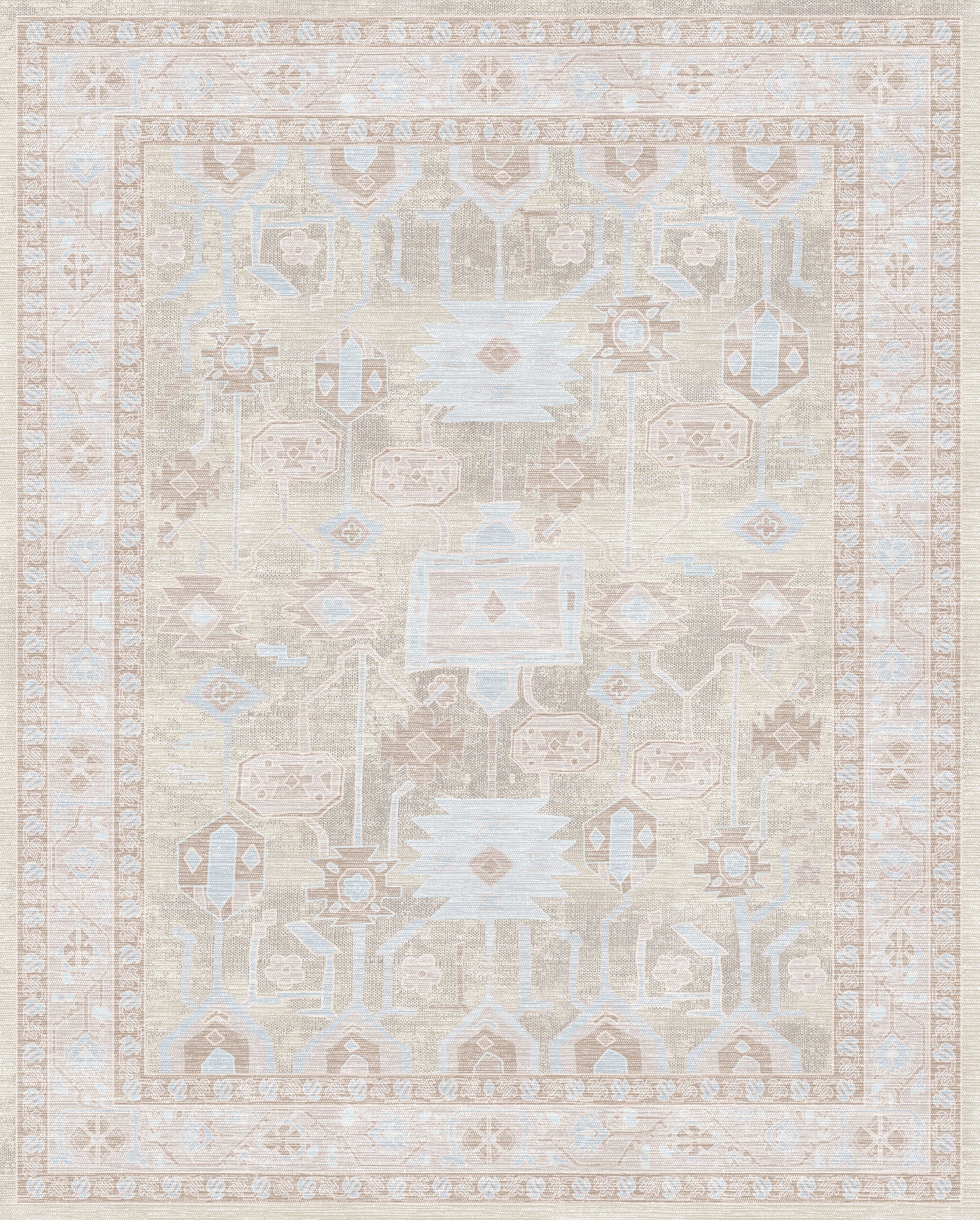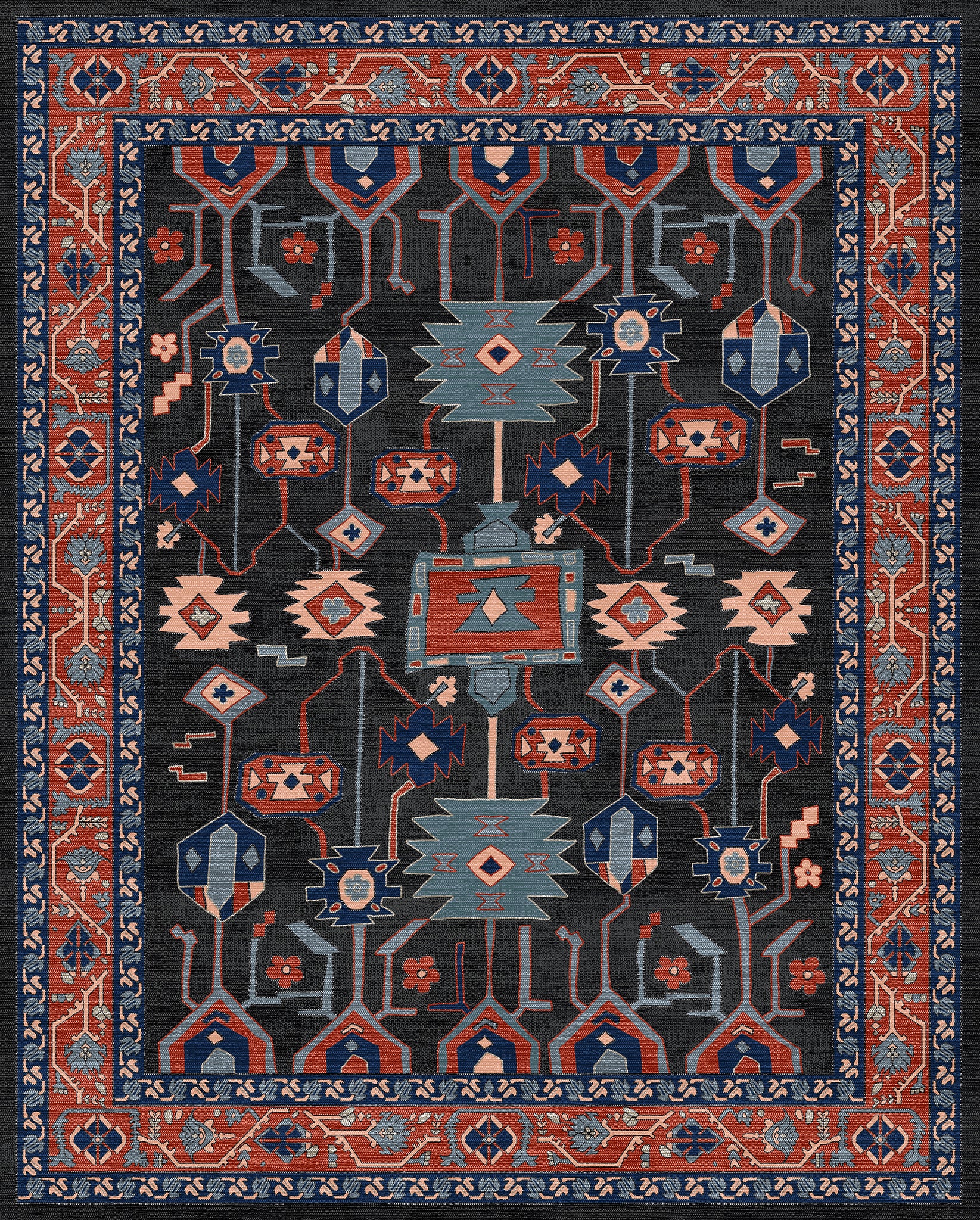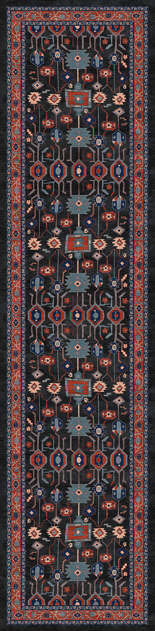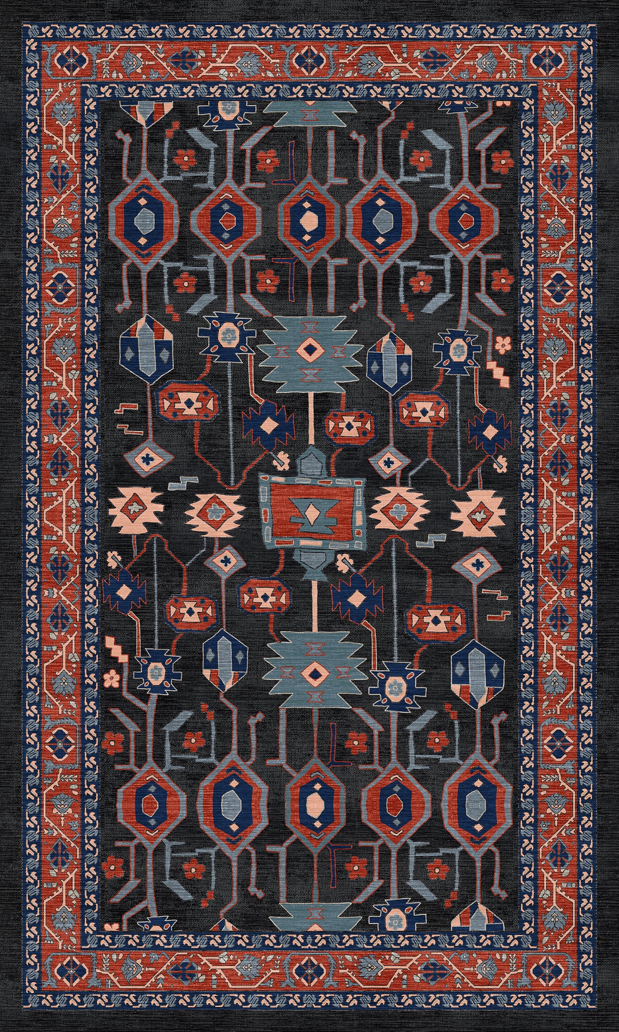 The Idris rug showcases a unique blend of geometric and ornamental patterns, offering a timeless design with a rich color palette. Perfect for enhancing living rooms, bedrooms, or dining areas, its intricate details add a touch of tradition and elegance to any space. This washable rug combines beauty with practicality, making it ideal for busy homes.