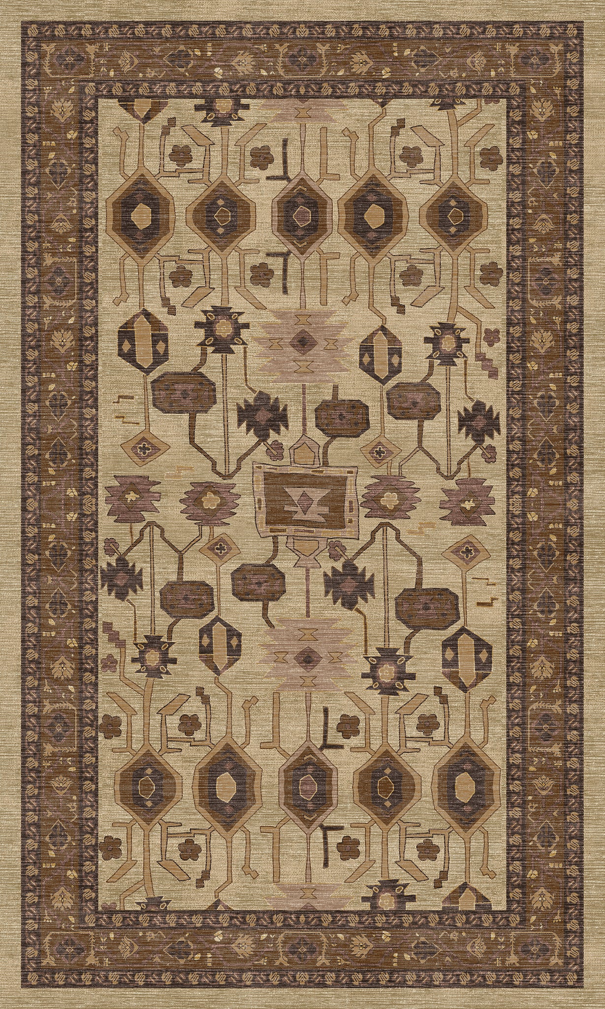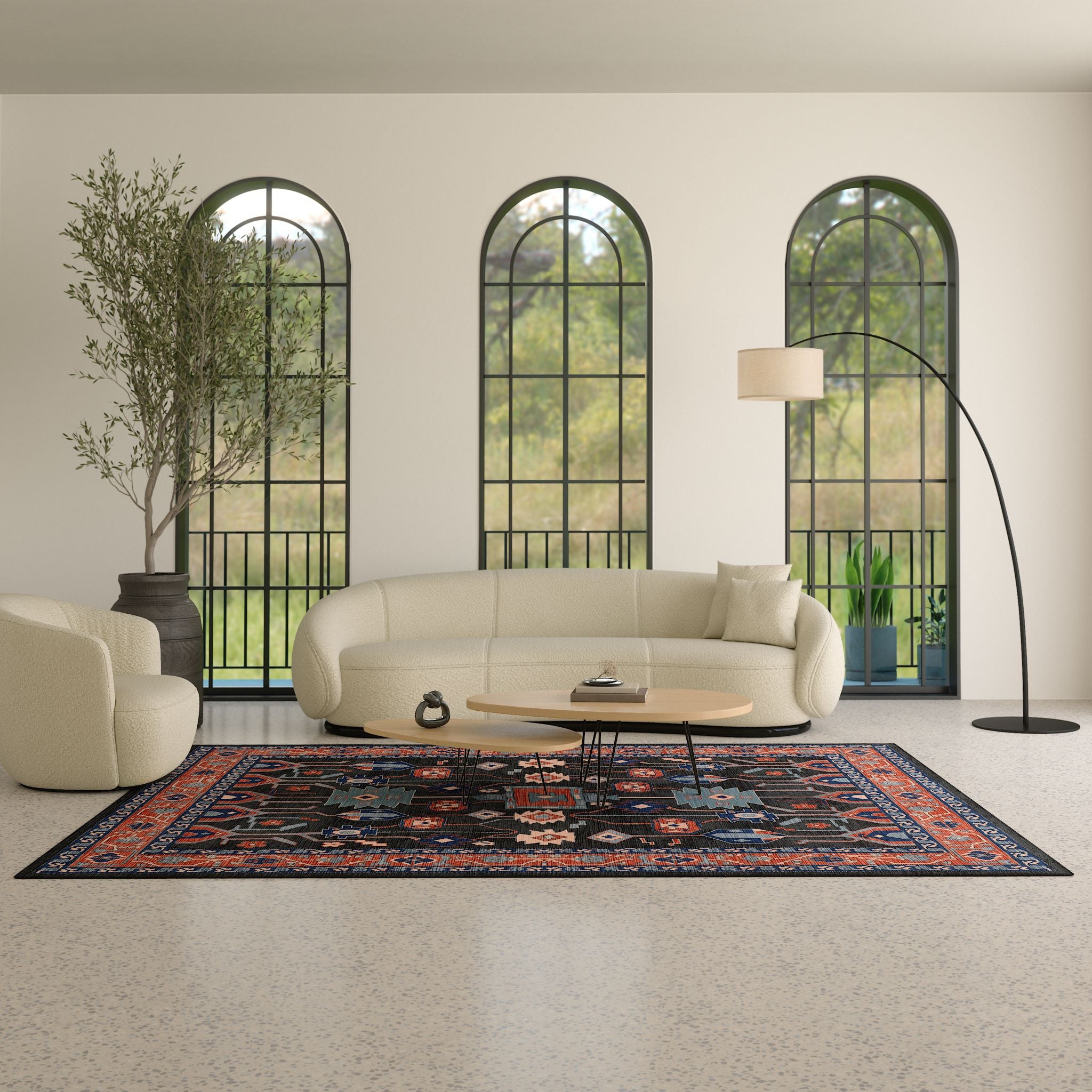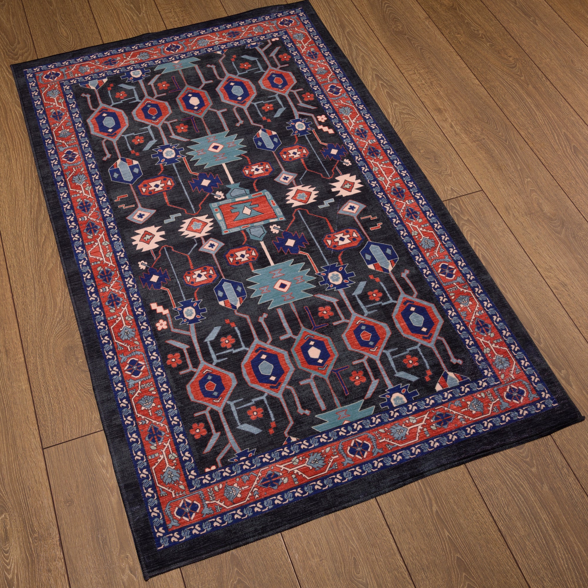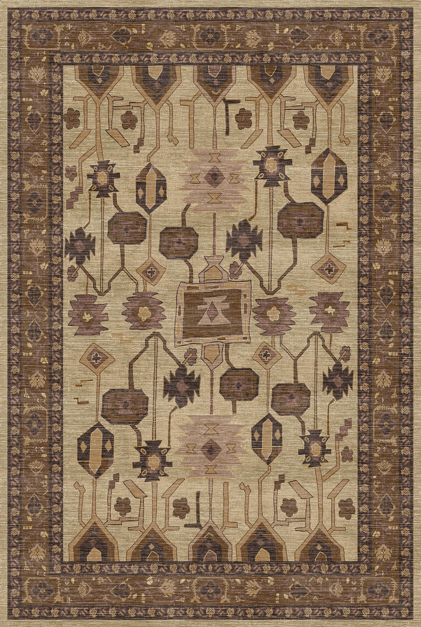 The Idris rug showcases a unique blend of geometric and ornamental patterns, offering a timeless design with a rich color palette. Perfect for enhancing living rooms, bedrooms, or dining areas, its intricate details add a touch of tradition and elegance to any space. This washable rug combines beauty with practicality, making it ideal for busy homes.
