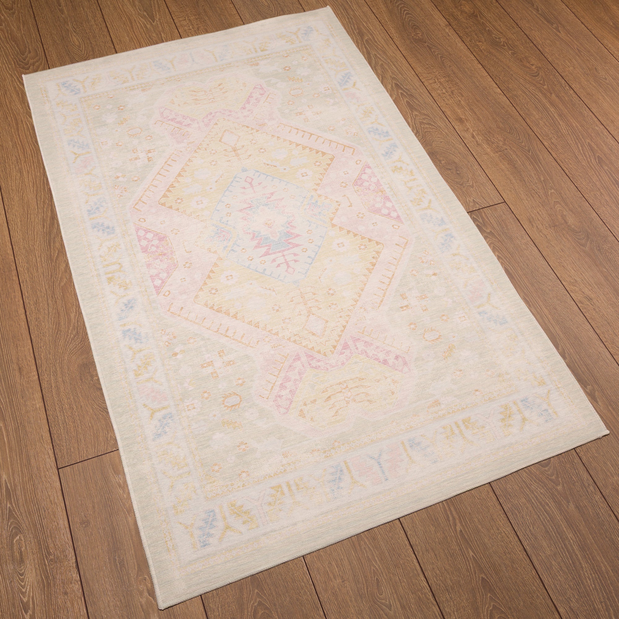 The Isla rug showcases a captivating ornamental medallion design, blending soft colors with intricate details to create a timeless piece. Ideal for adding charm to living rooms, bedrooms, or entryways, its traditional aesthetic complements both classic and contemporary interiors. This washable rug offers the perfect combination of style and practicality, ensuring it stays fresh and vibrant with minimal effort.
