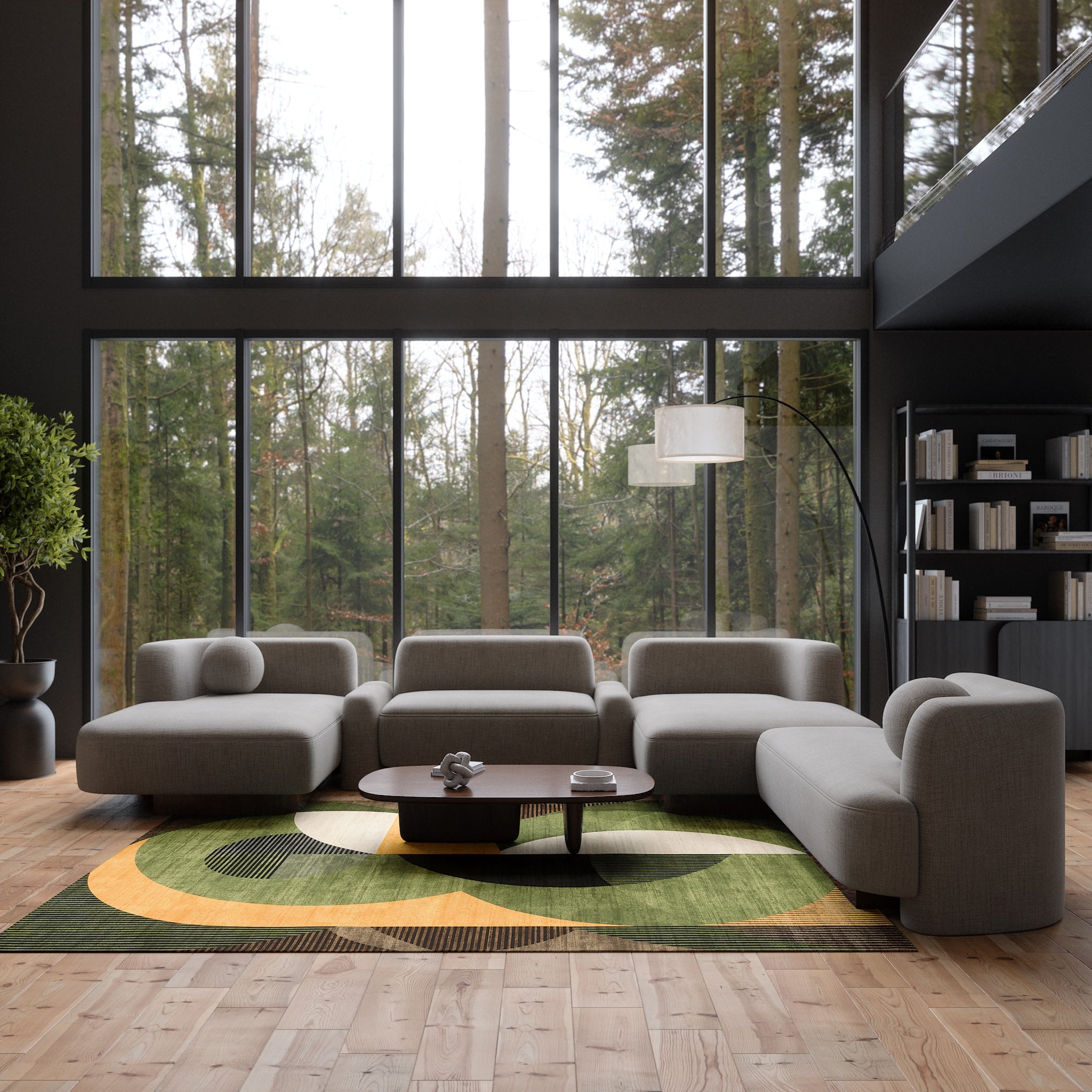 Make a bold statement with the Iver Abstract Geometric Rug, featuring a striking interplay of overlapping circles and linear textures. Its dynamic composition of rich, earthy tones and contrasting hues creates a visually engaging centerpiece for any space. The modern abstract design brings a contemporary yet timeless appeal, making it a versatile choice for both minimal and eclectic interiors.
