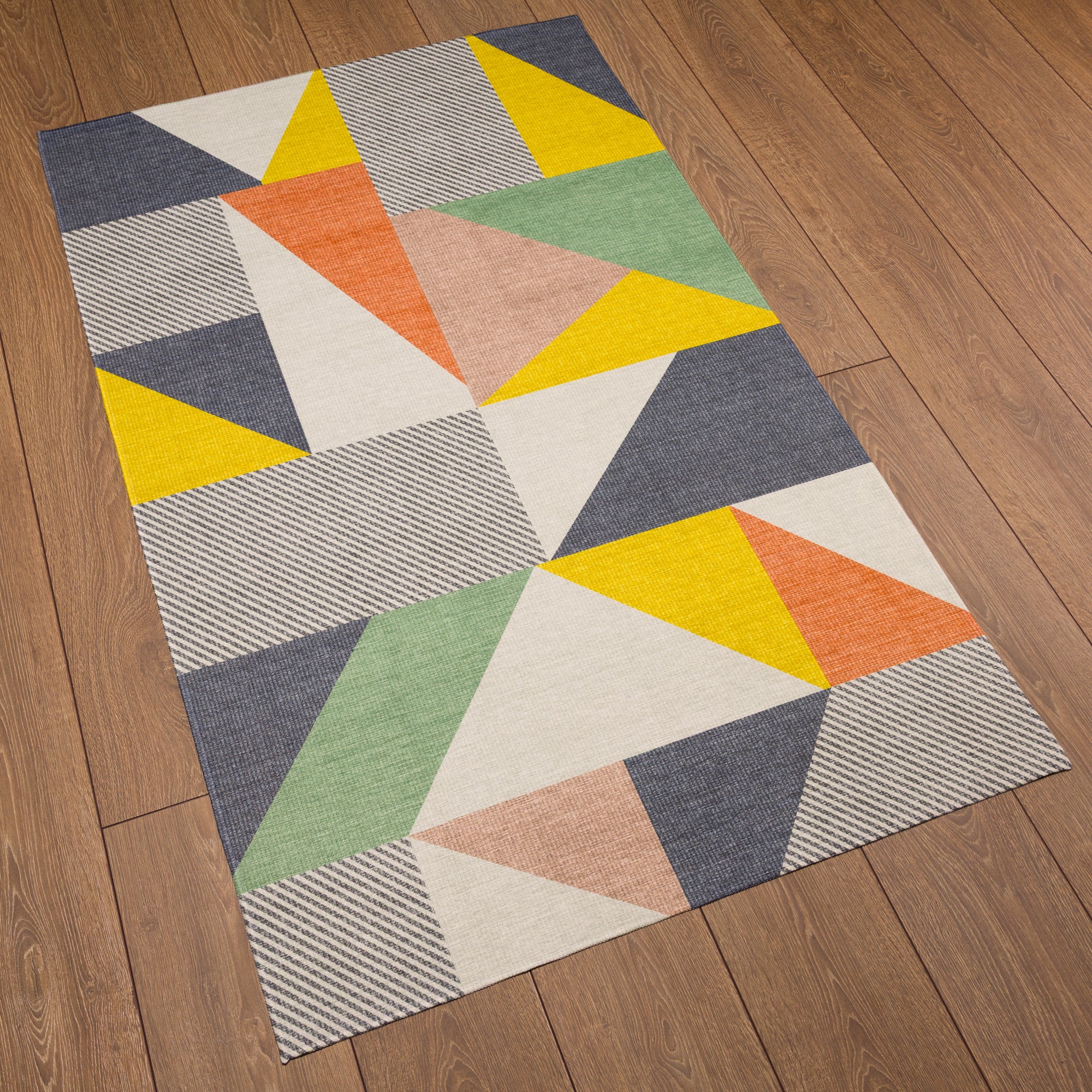 Make a statement with the Jules Bold Geometric Rug, featuring a striking composition of angular shapes in a dynamic color palette. The interplay of sharp lines and textured elements brings depth and dimension, making it a perfect addition to contemporary interiors. Its modern aesthetic blends seamlessly into minimalist, industrial, or mid-century modern spaces.