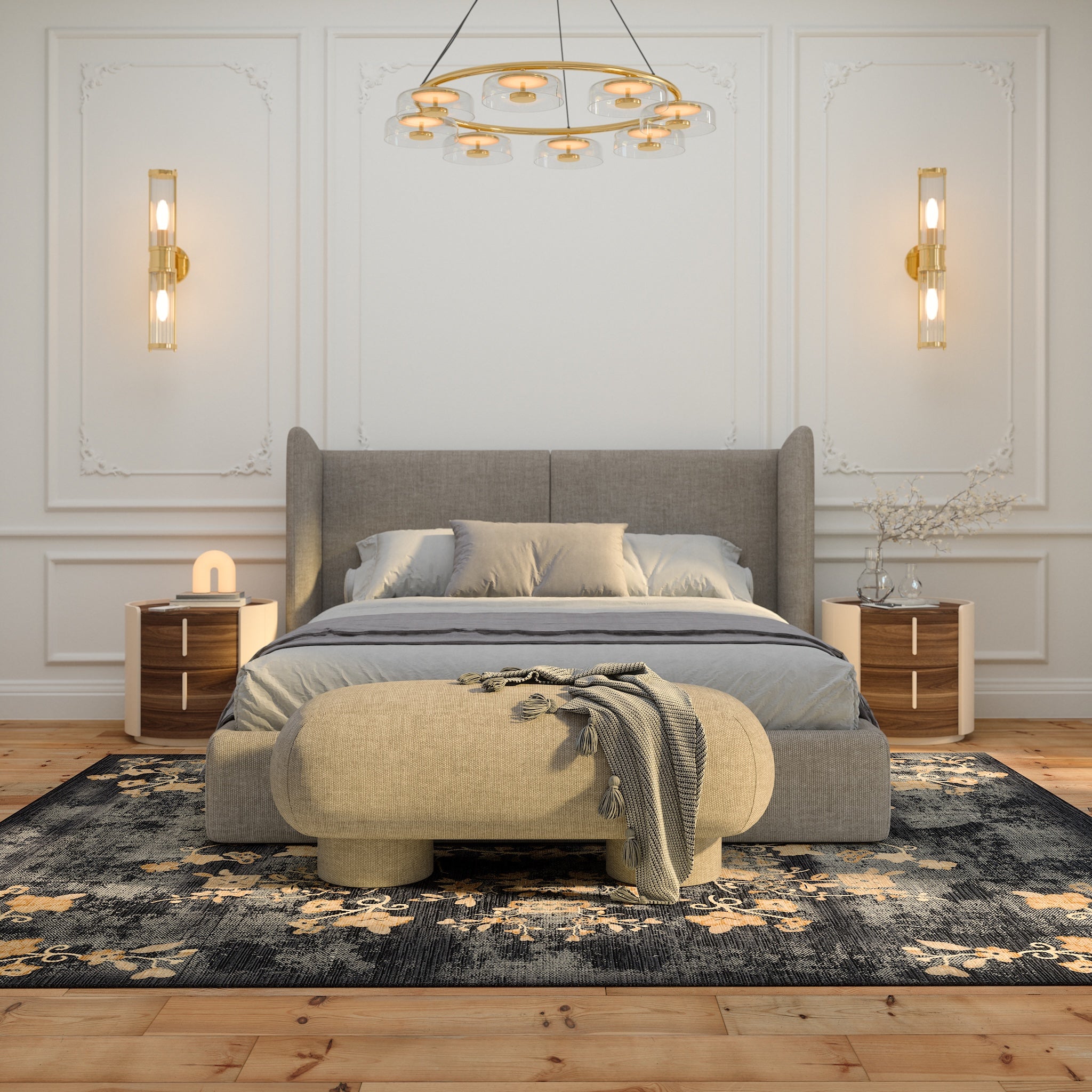 When selecting the perfect rug size, consider the size of your bed as a key factor. A large area rug placed under the bed often serves as the room’s focal point. Alternatively, a smaller rug beside the bed adds a nice accent and provides a cozy spot for your feet.