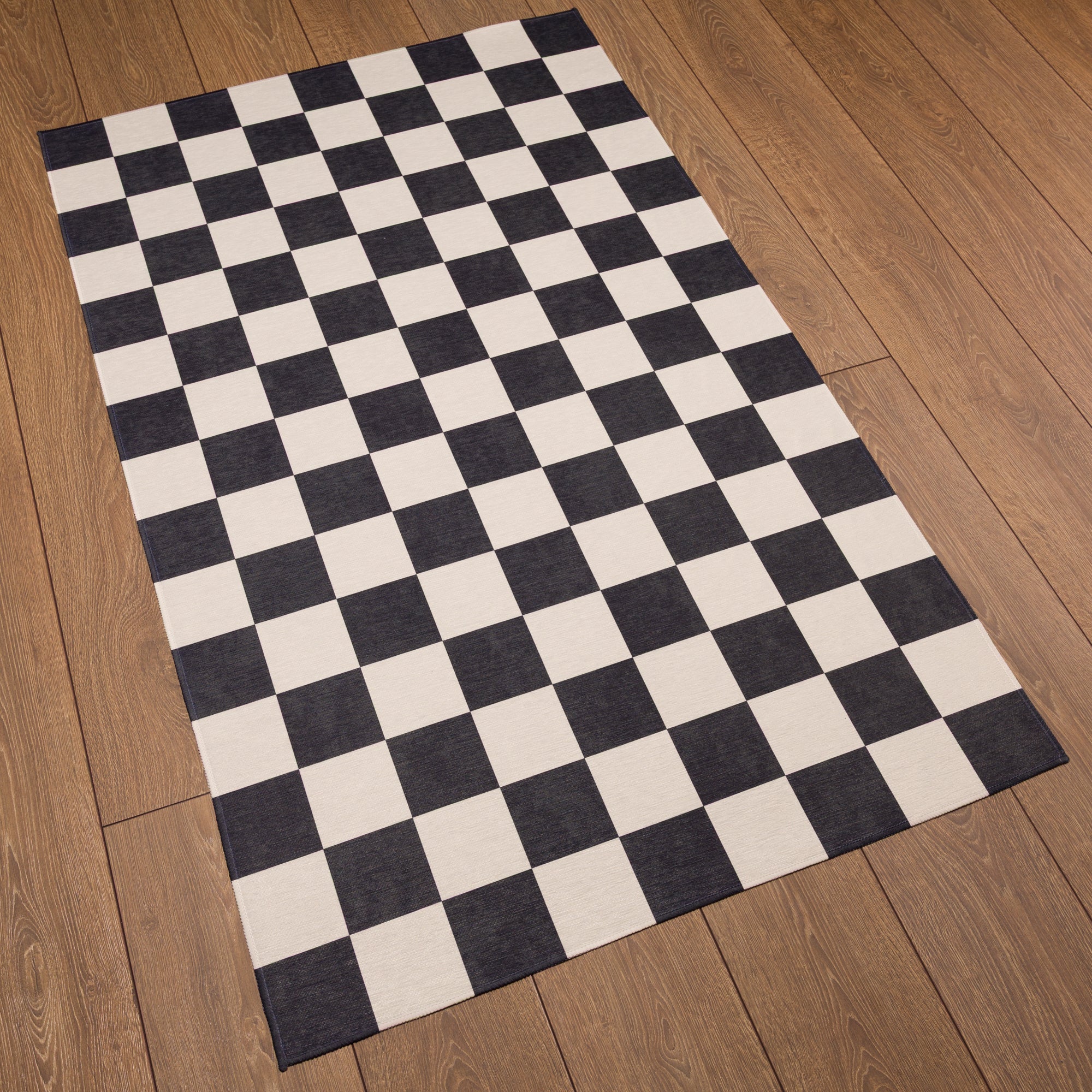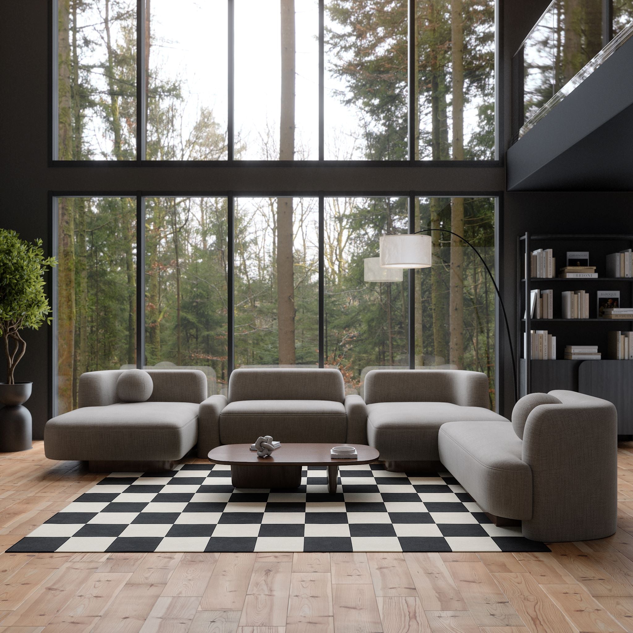 The Lou rug features a timeless checkered pattern that brings a modern yet classic touch to any space. Its bold geometric design enhances both minimalist and contemporary interiors, making it a versatile piece for living rooms, dining areas, or bedrooms. With its washable material, the Lou rug combines style and practicality, making it perfect for busy homes.