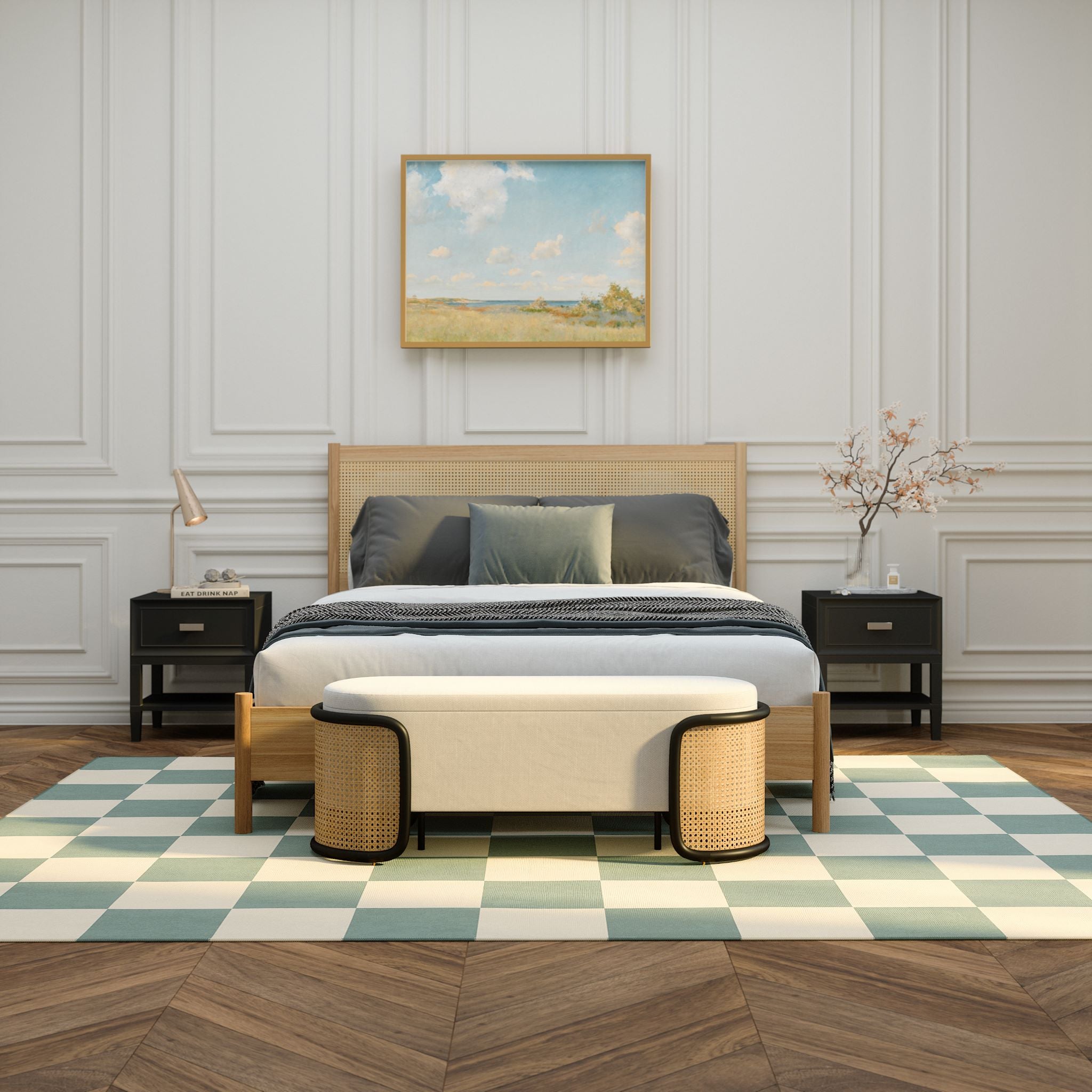 When selecting the perfect rug size, consider the size of your bed as a key factor. A large area rug placed under the bed often serves as the room’s focal point. Alternatively, a smaller rug beside the bed adds a nice accent and provides a cozy spot for your feet.