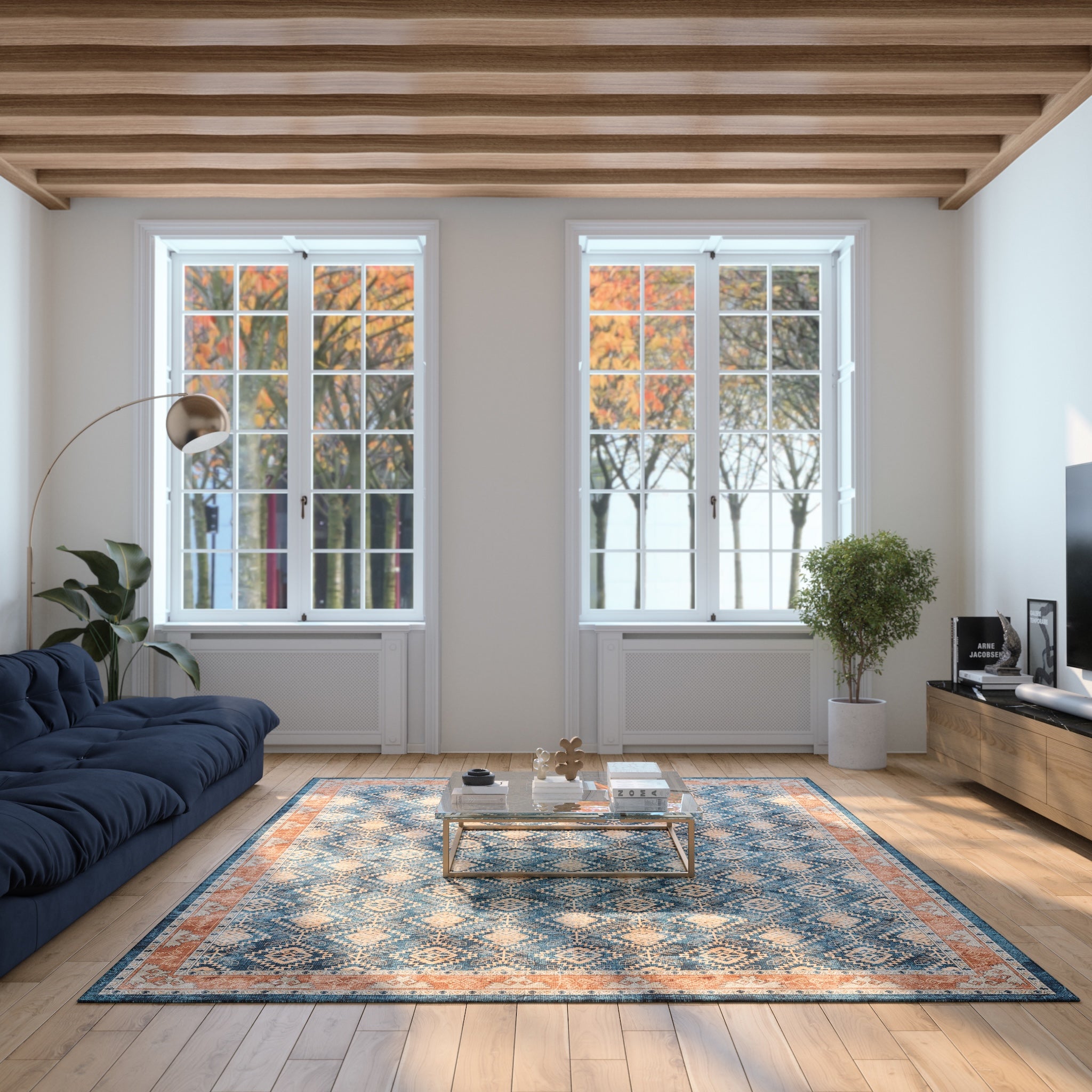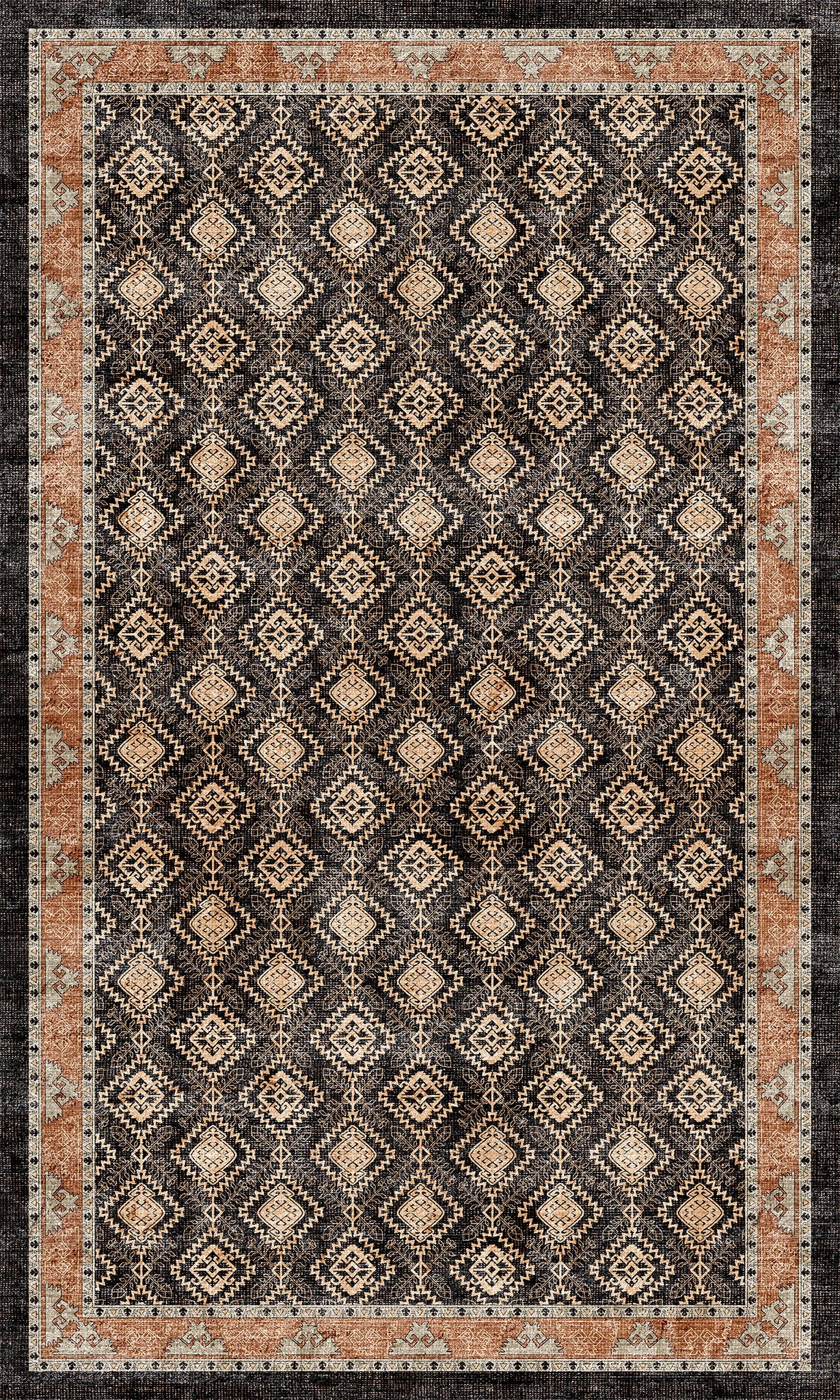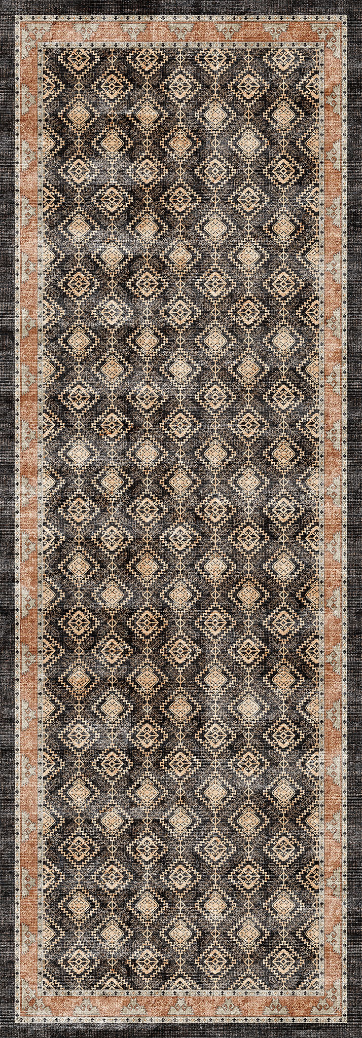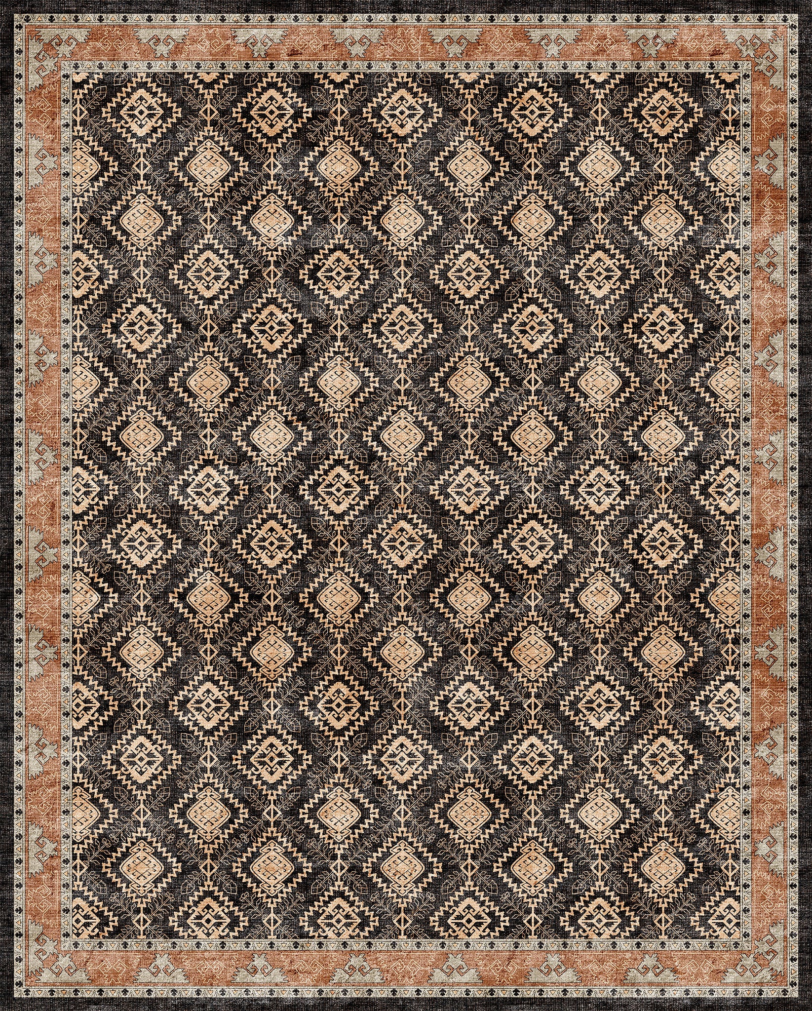 The Niva rug features an intricate diamond pattern with a traditional design, bringing timeless elegance to any space. Its rich texture and detailed border enhance living rooms, bedrooms, or dining areas, adding a sense of warmth and sophistication. Made from machine-washable material, the Niva rug combines style and convenience, making it a perfect choice for high-traffic areas.