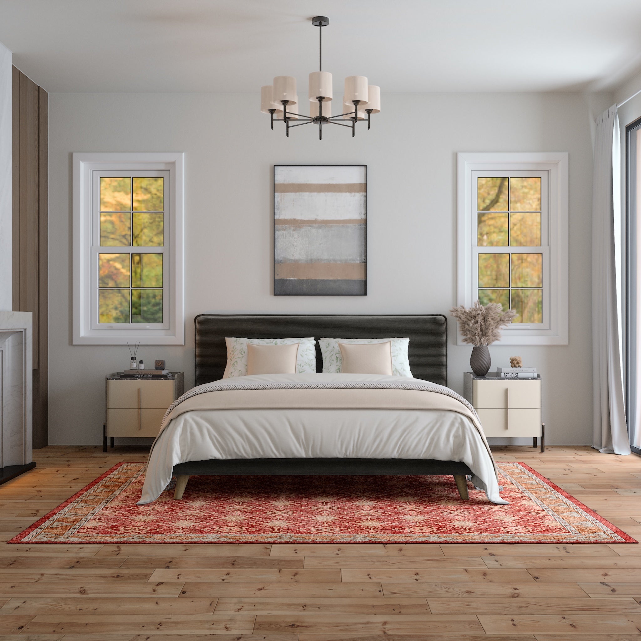 When selecting the perfect rug size, consider the size of your bed as a key factor. A large area rug placed under the bed often serves as the room’s focal point. Alternatively, a smaller rug beside the bed adds a nice accent and provides a cozy spot for your feet.