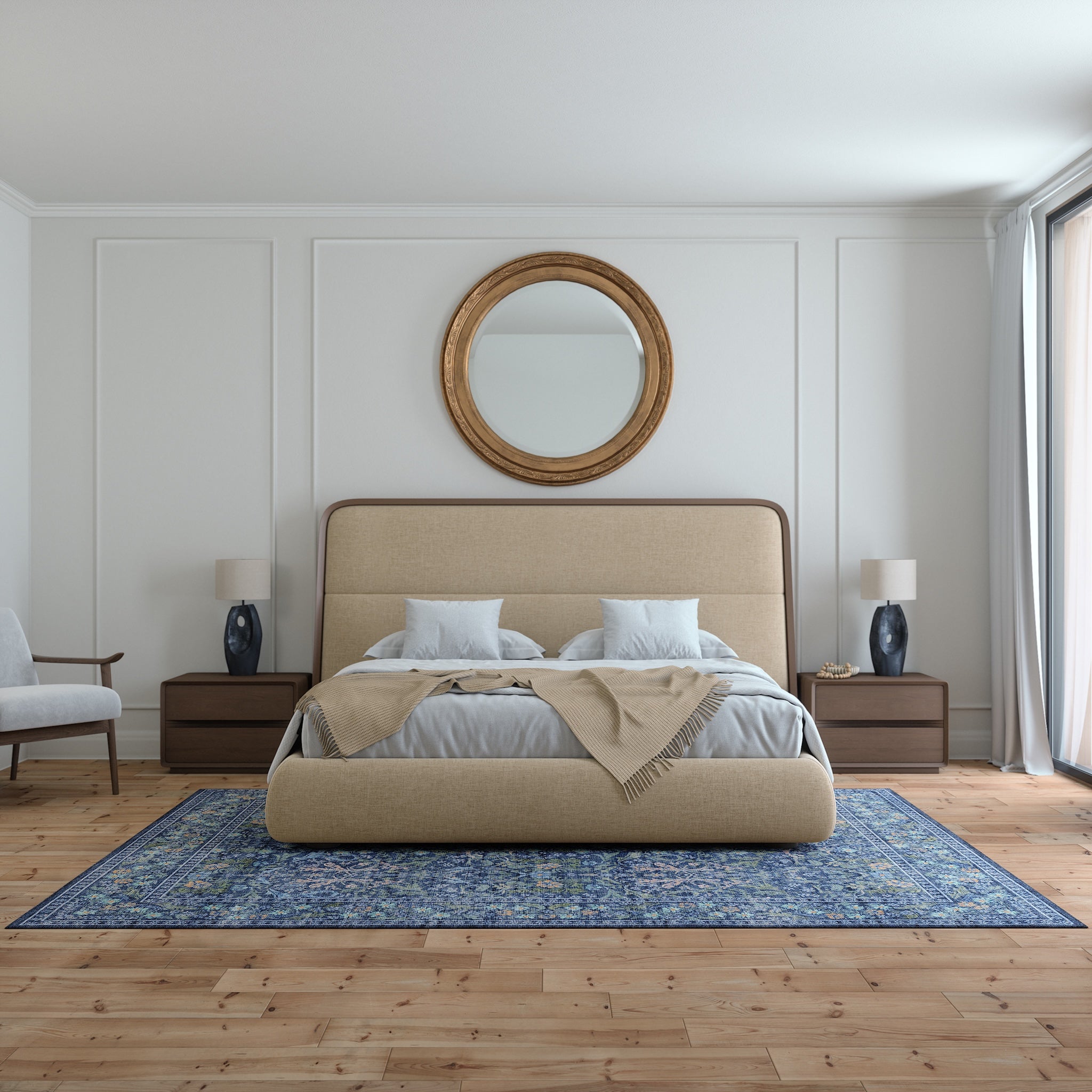 When selecting the perfect rug size, consider the size of your bed as a key factor. A large area rug placed under the bed often serves as the room’s focal point. Alternatively, a smaller rug beside the bed adds a nice accent and provides a cozy spot for your feet.