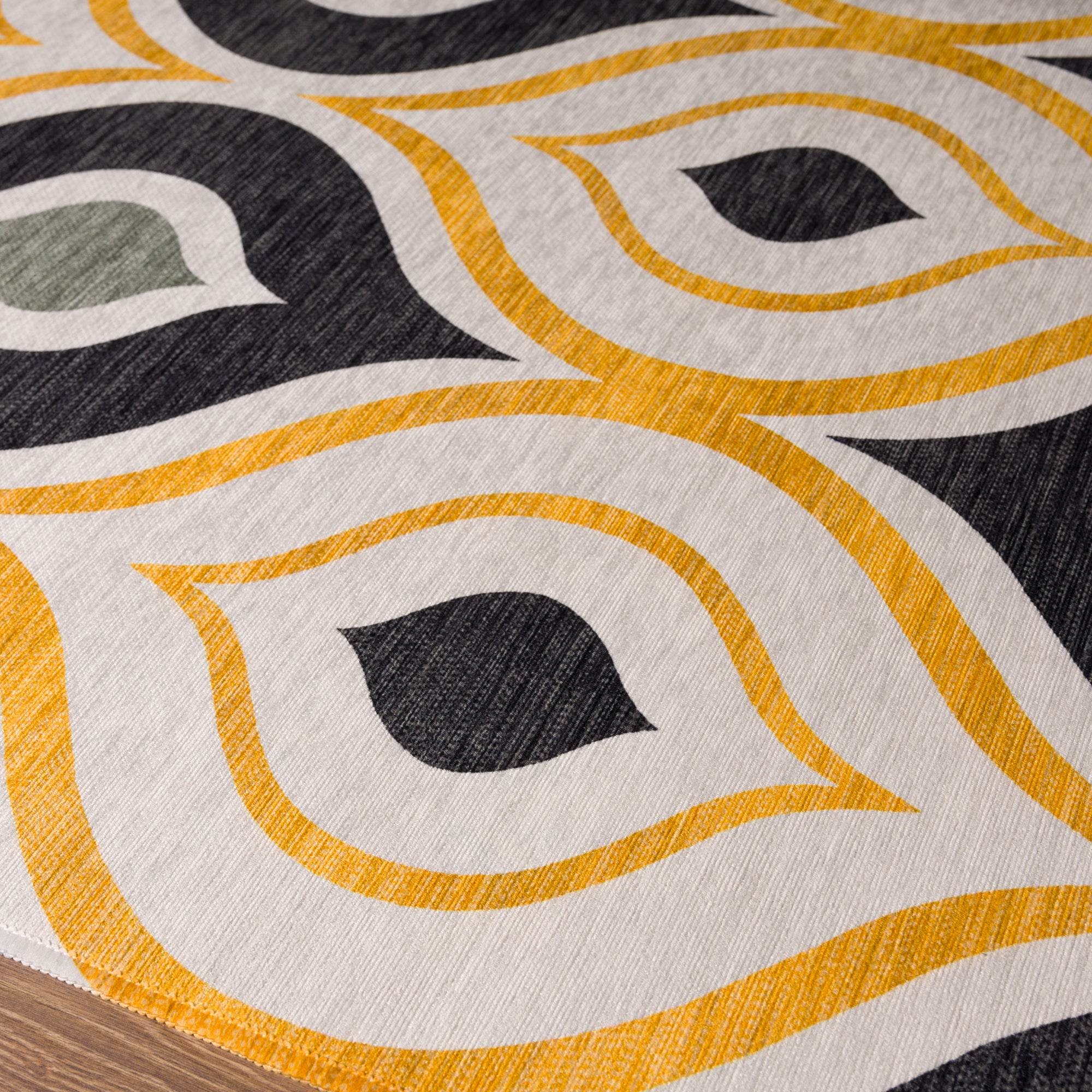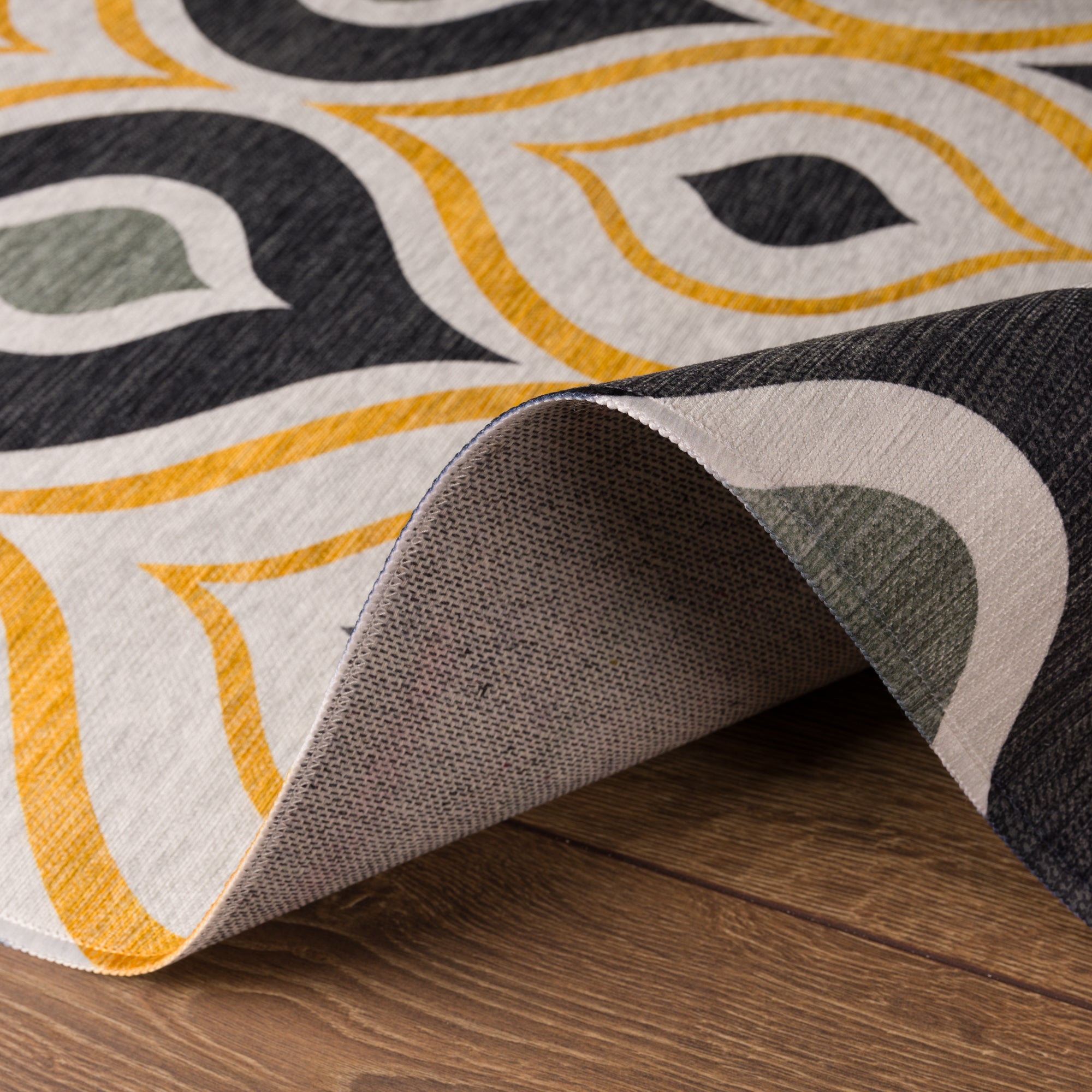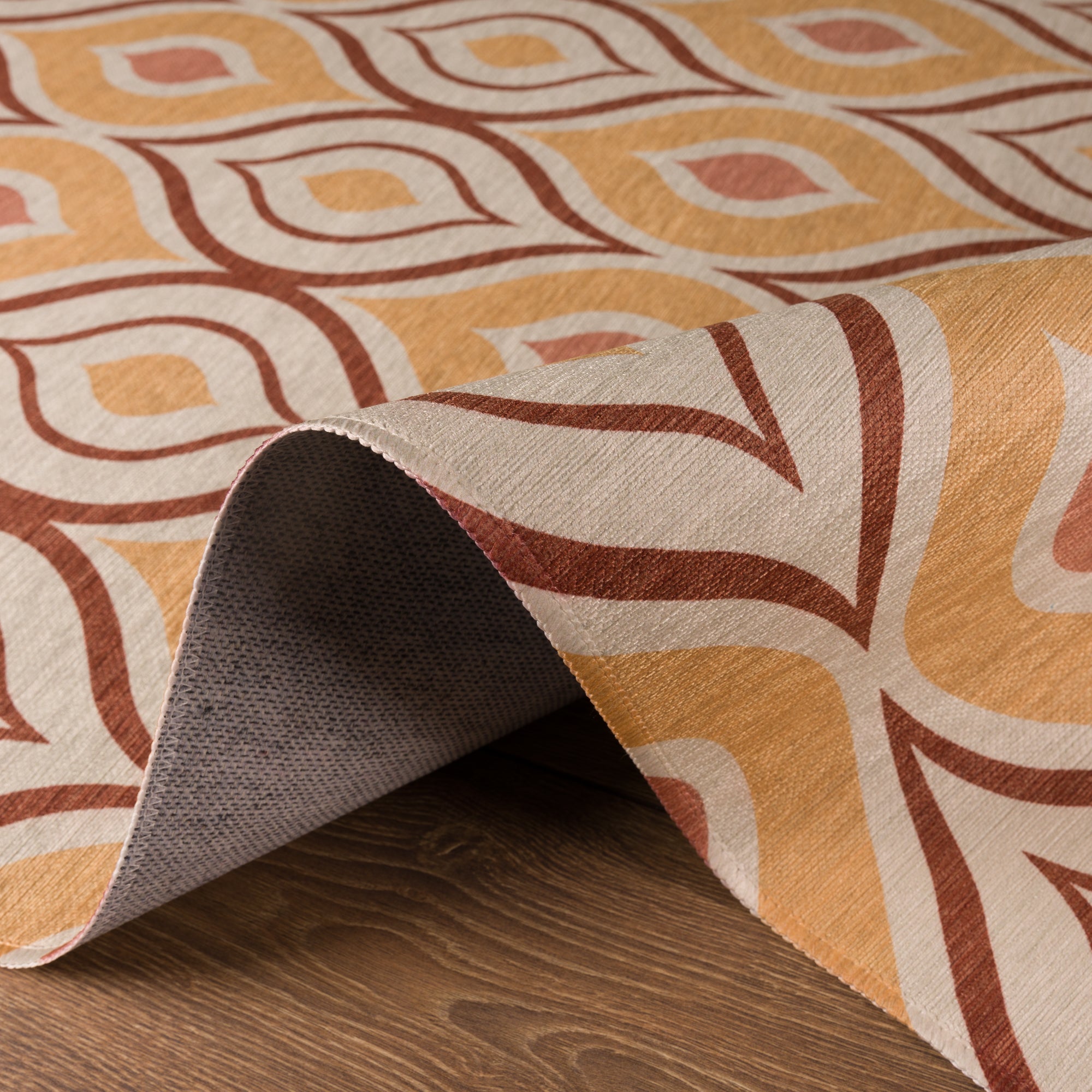 Embrace mid-century modern elegance with the Safi Geometric Washable Rug. This design features a rhythmic pattern of overlapping teardrop shapes, offering a dynamic and eye-catching visual appeal. Ideal for adding a vintage yet contemporary flair to any space, the rug combines timeless style with practicality, perfect for living rooms, bedrooms, or office areas.