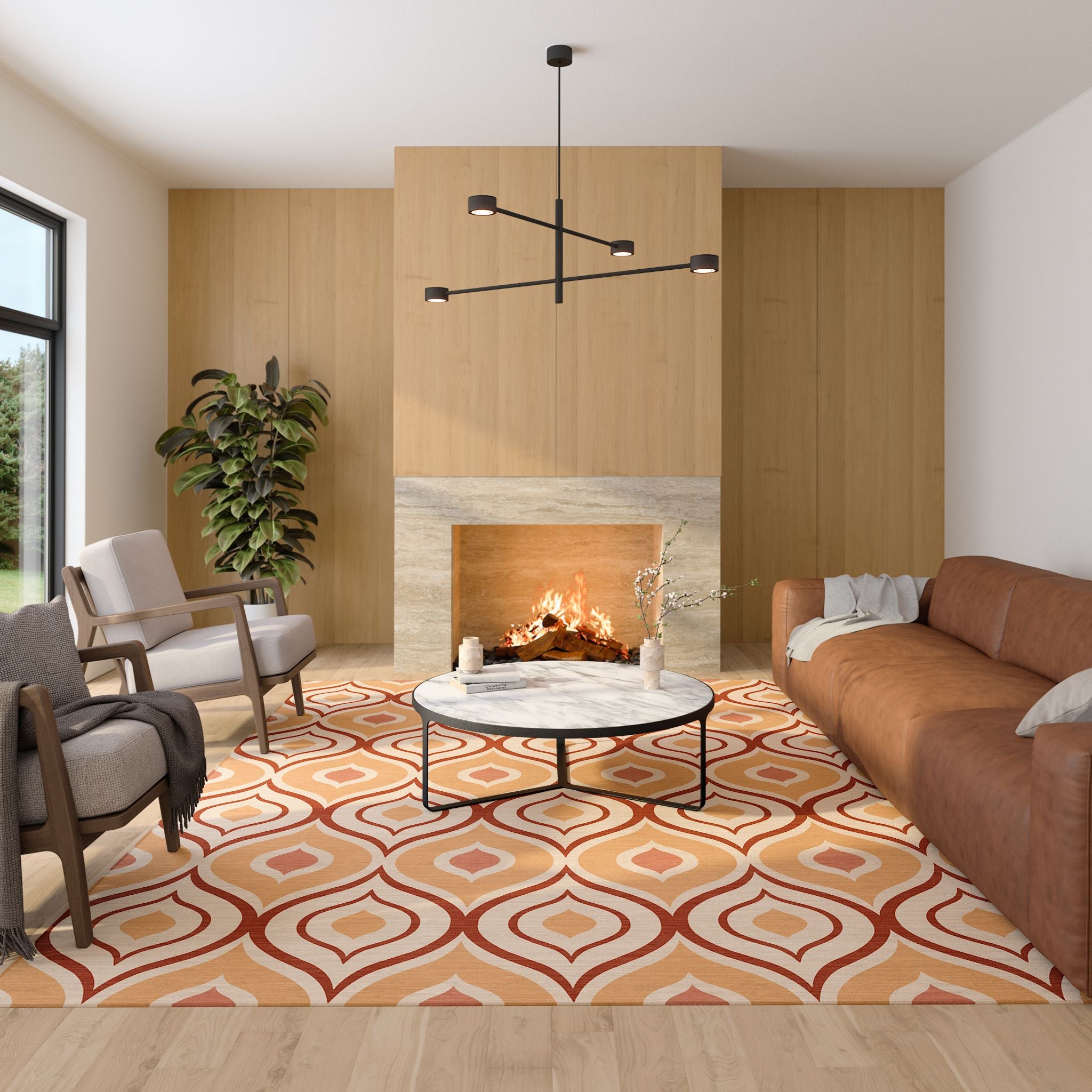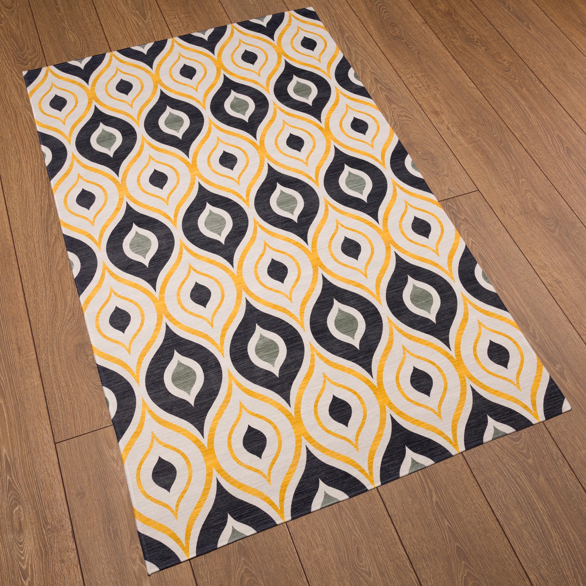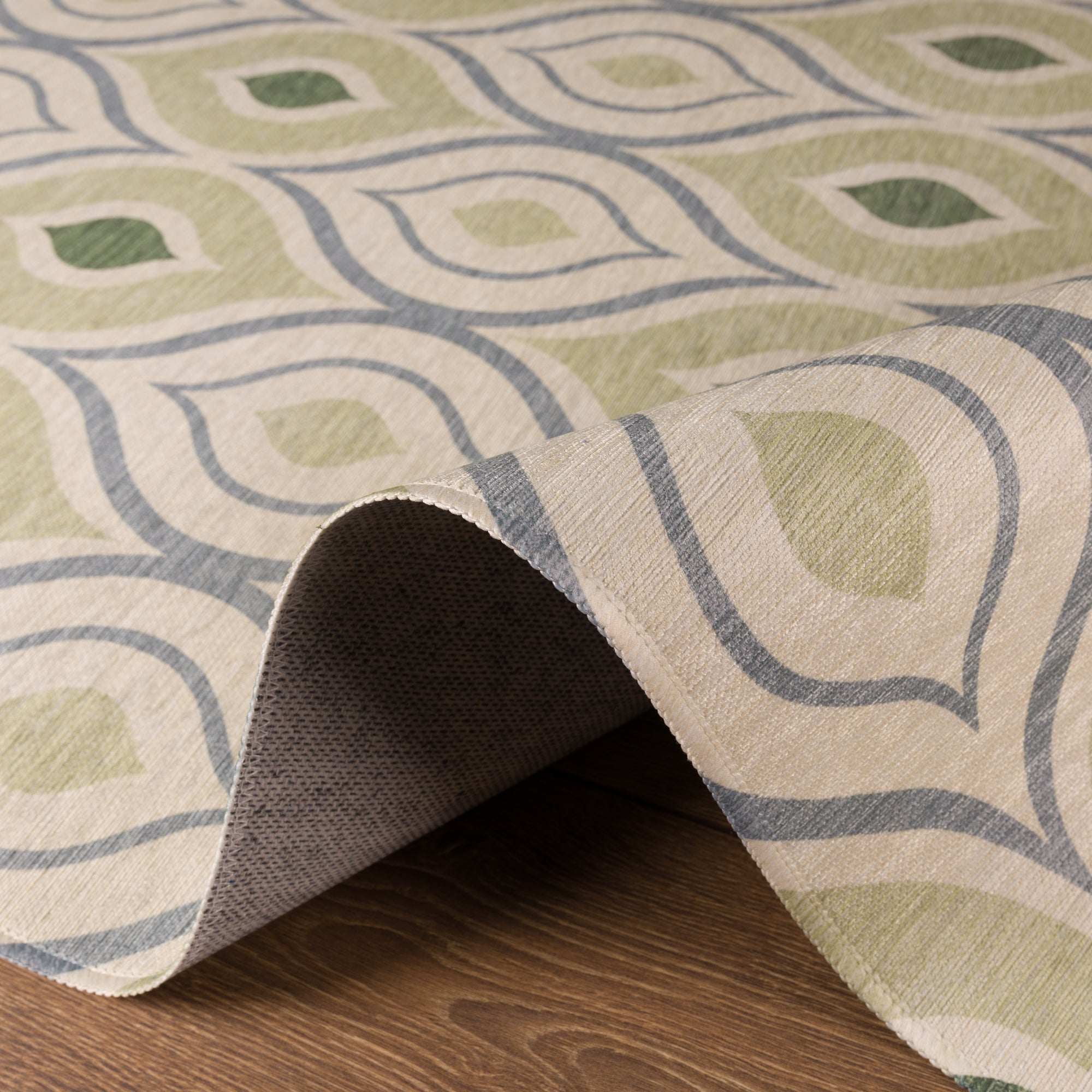 Embrace mid-century modern elegance with the Safi Geometric Washable Rug. This design features a rhythmic pattern of overlapping teardrop shapes, offering a dynamic and eye-catching visual appeal. Ideal for adding a vintage yet contemporary flair to any space, the rug combines timeless style with practicality, perfect for living rooms, bedrooms, or office areas.