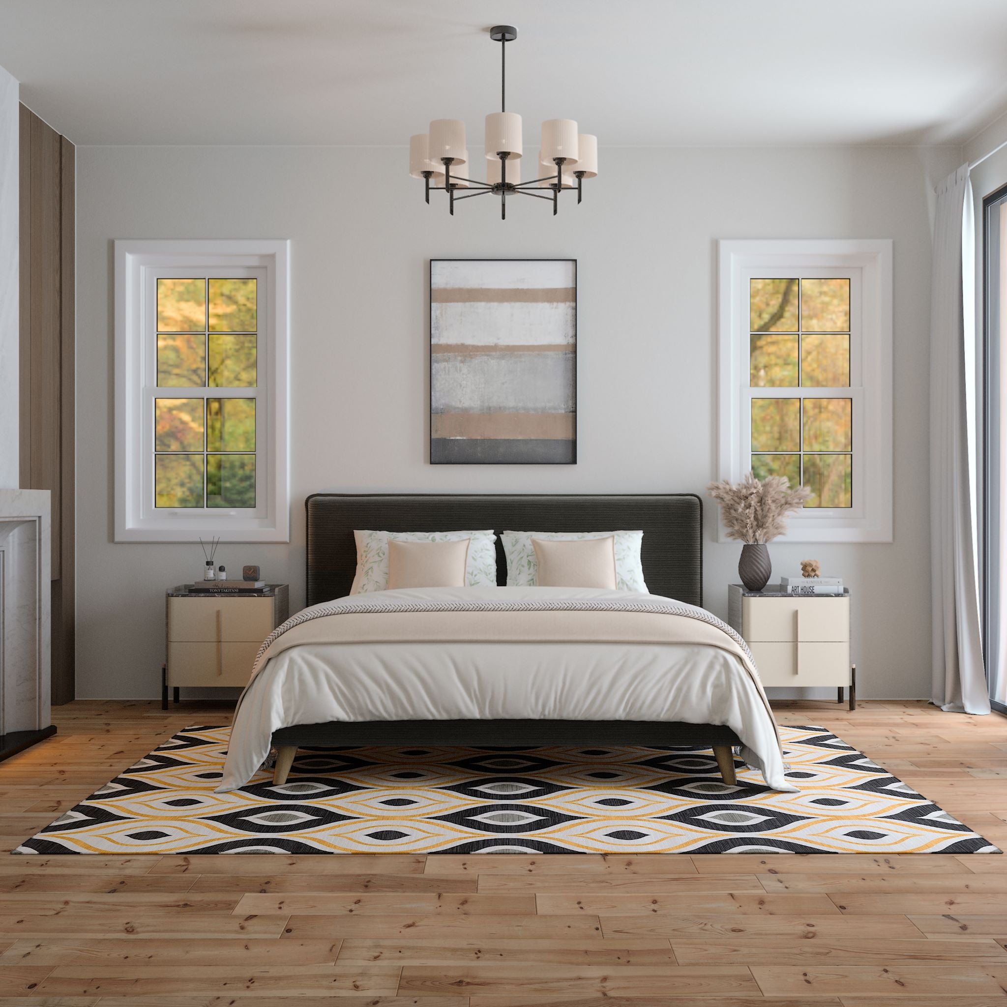 When selecting the perfect rug size, consider the size of your bed as a key factor. A large area rug placed under the bed often serves as the room’s focal point. Alternatively, a smaller rug beside the bed adds a nice accent and provides a cozy spot for your feet.