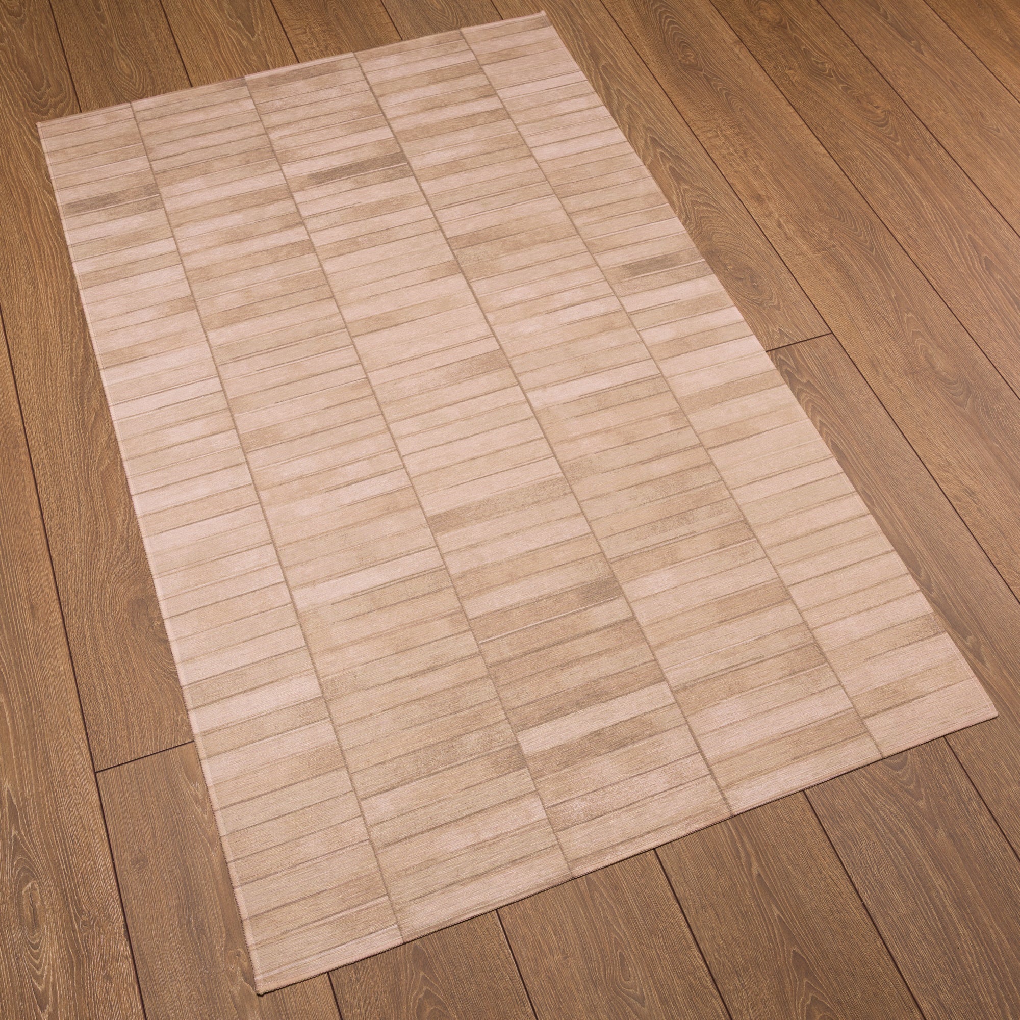 The Sela rug brings a modern, minimalist aesthetic with its sleek striped pattern and textured surface. Its clean lines and subtle design make it a versatile addition to living rooms, bedrooms, or dining areas, adding understated elegance to any space. Made from machine-washable fabric, the Sela rug offers both style and practicality, perfect for busy, high-traffic areas.