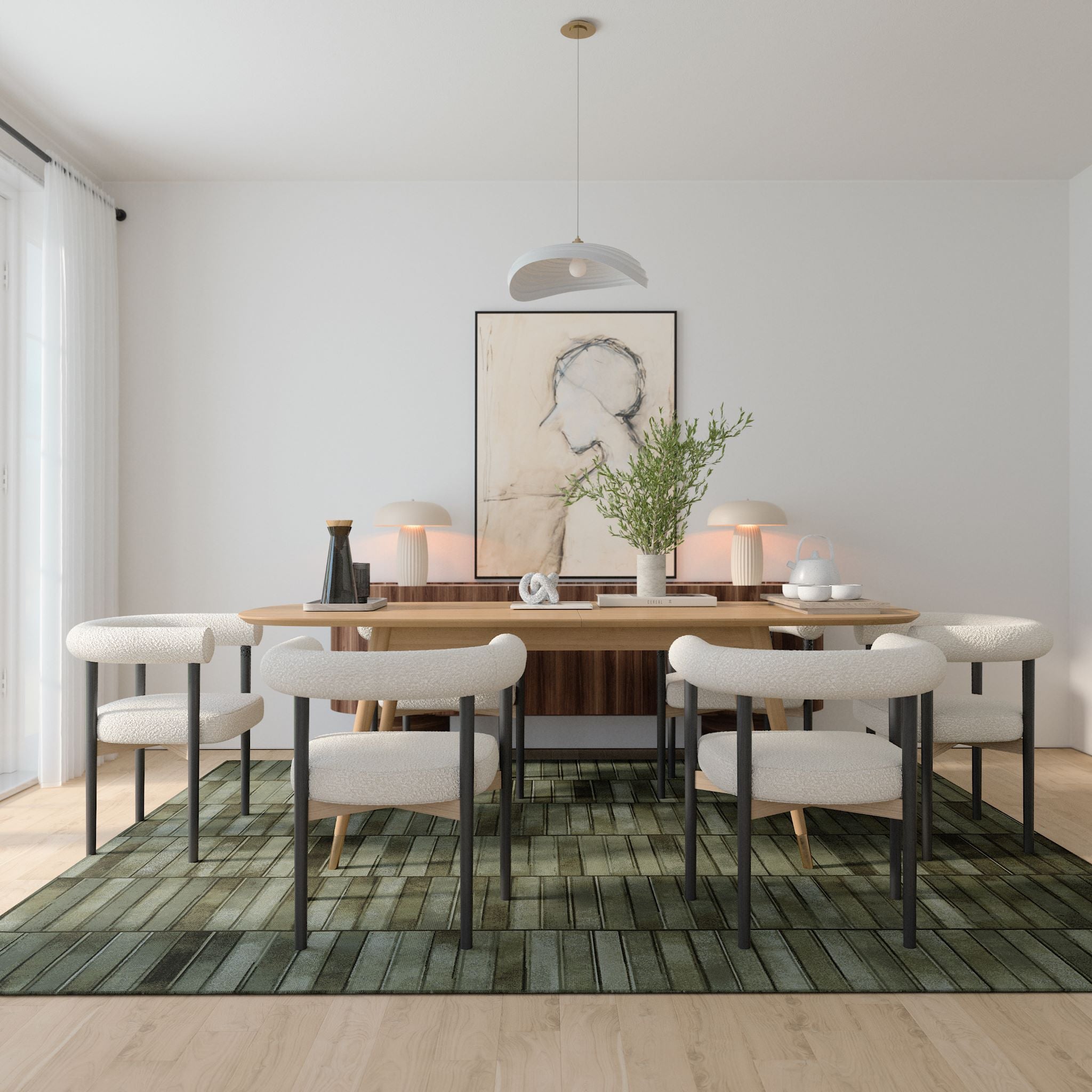 A helpful guideline is to choose a rug that extends about four feet beyond your dining table. This ensures that all dining chairs remain fully on the rug, even when they are pulled out.