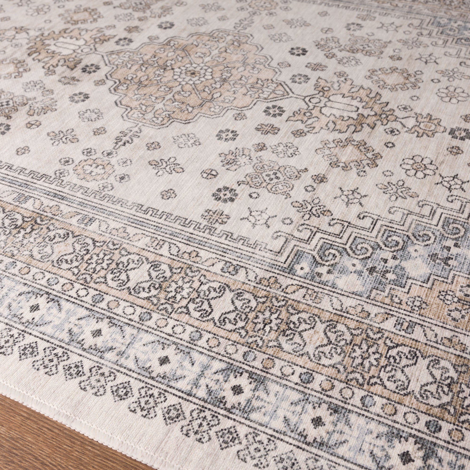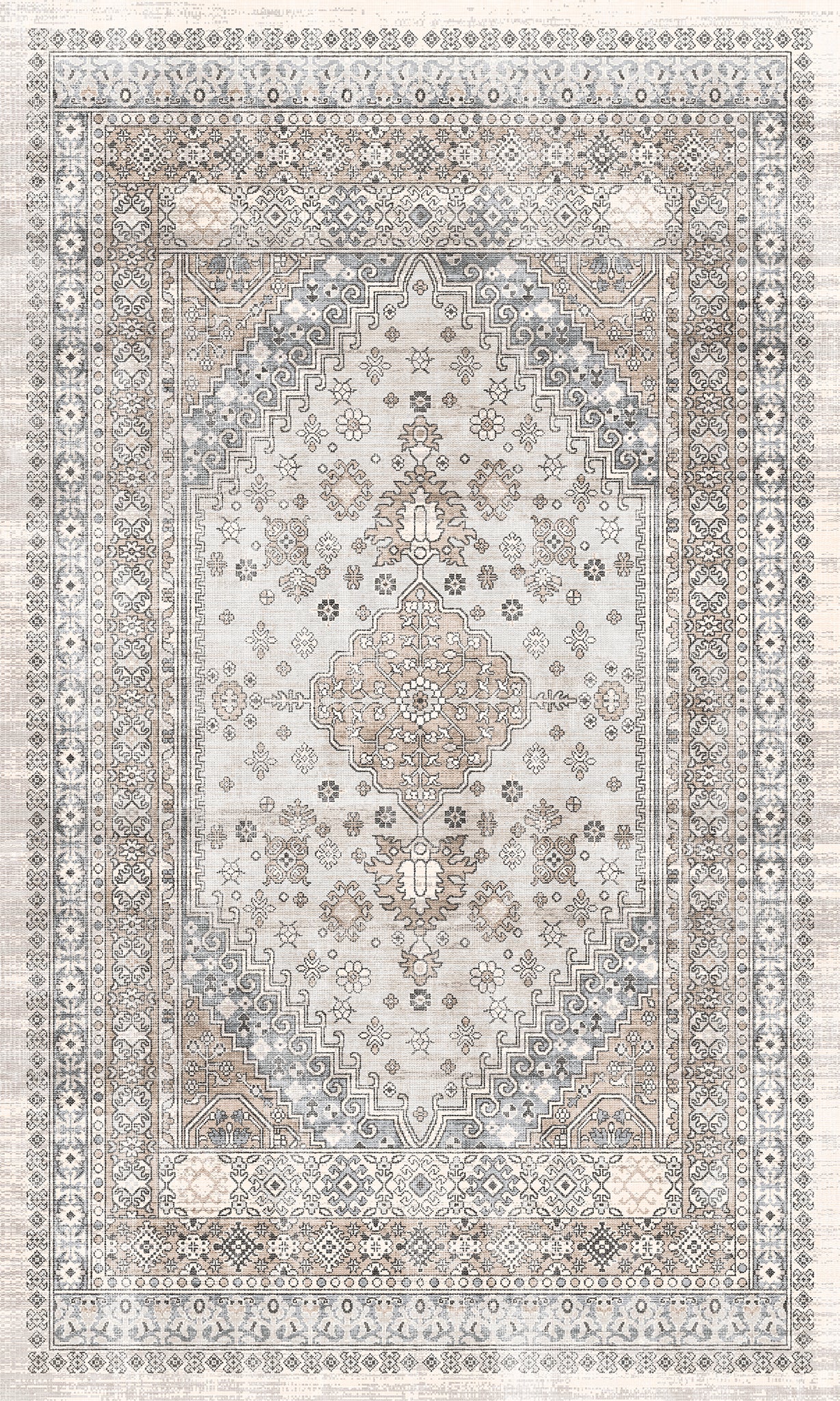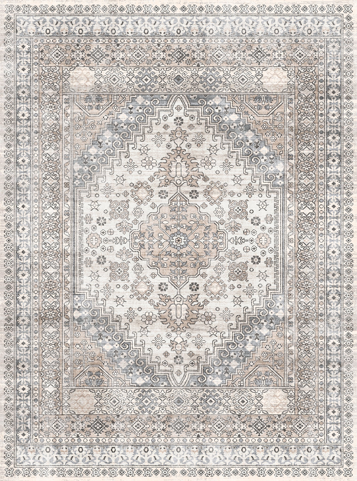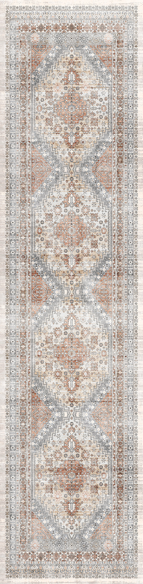 The Valencia rug features a timeless medallion design, beautifully crafted with rich tones of blue, terra, and grey. Its intricate detailing adds an air of sophistication, making it a perfect centerpiece for living rooms, bedrooms, or dining spaces. With its easy-to-maintain machine-washable fabric, the Valencia rug offers both elegance and practicality, ideal for busy households.