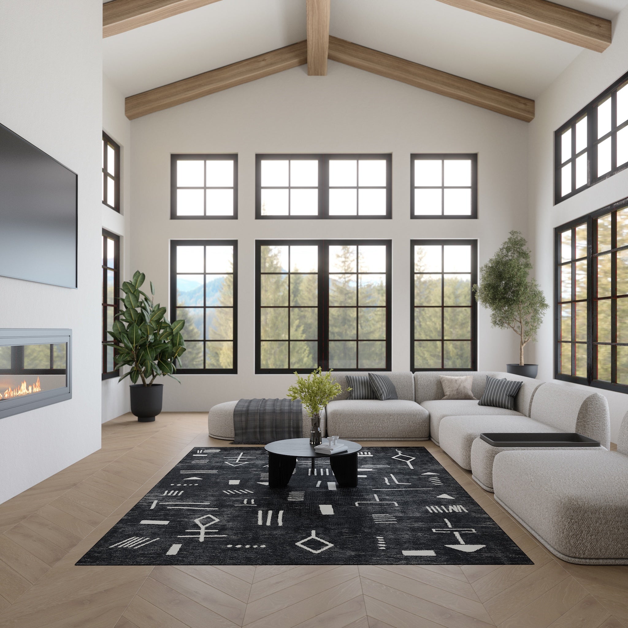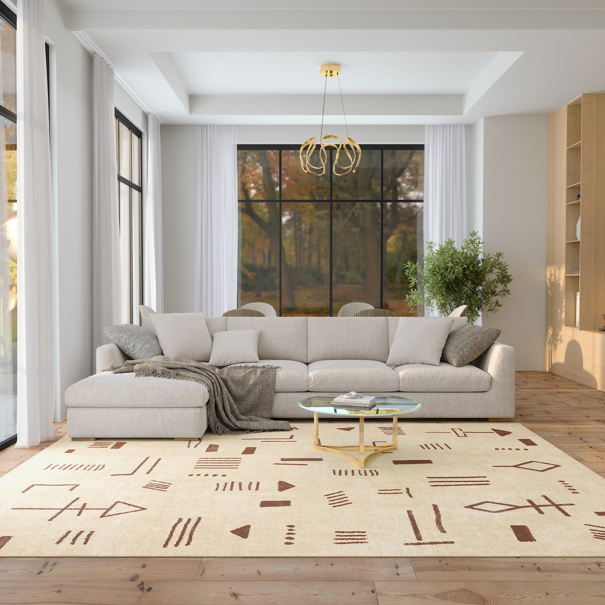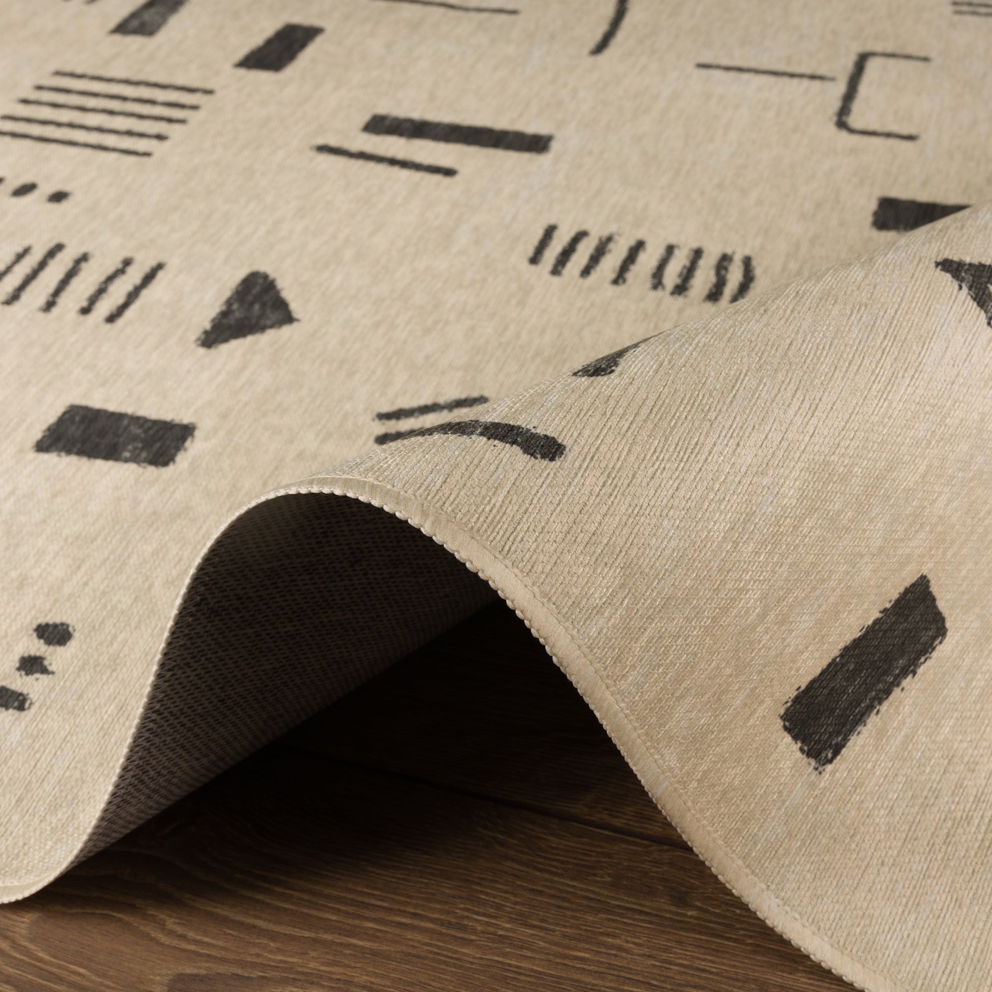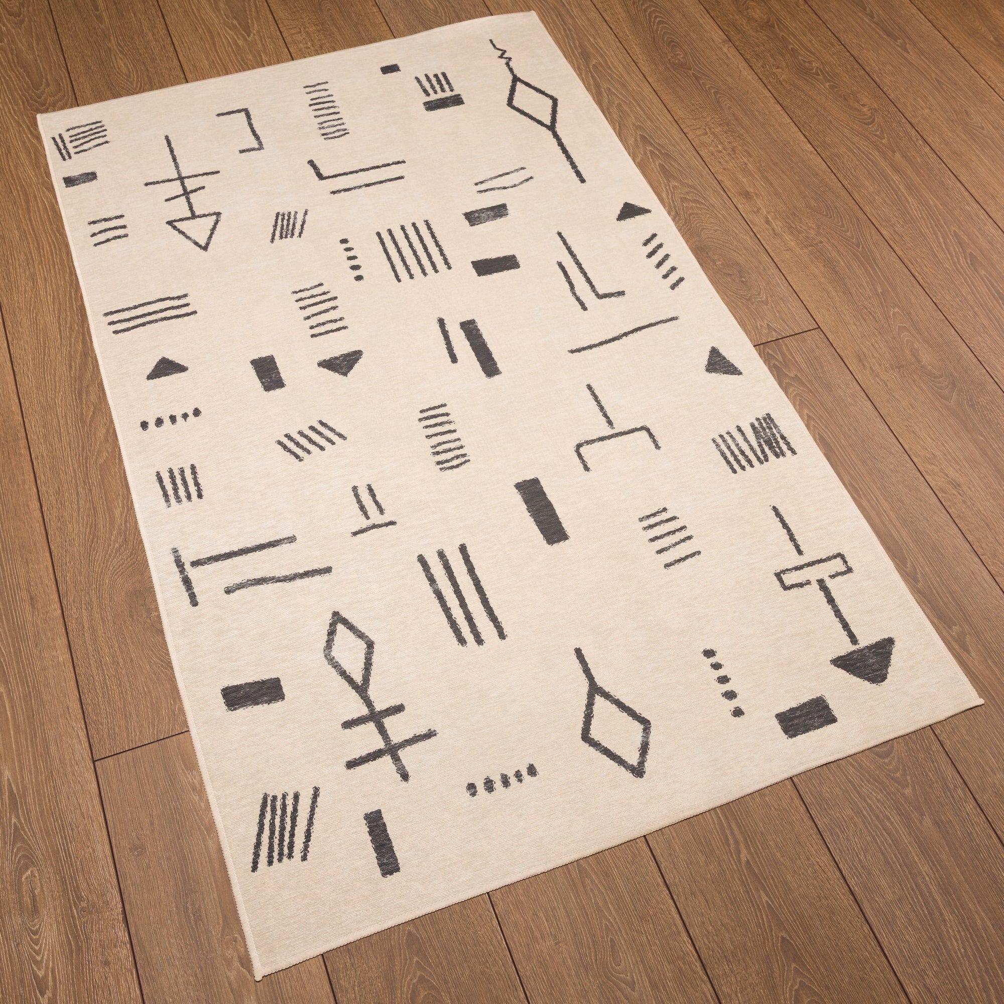 The Veya rug combines bold, abstract geometric elements with a minimalist design, adding an artistic yet understated touch to living rooms, bedrooms, or home offices. Its contemporary aesthetic brings a modern edge, while the washable material ensures practicality for everyday living. Perfect for those seeking a statement piece with a bold and artistic touch, yet maintaining a minimalist style.
