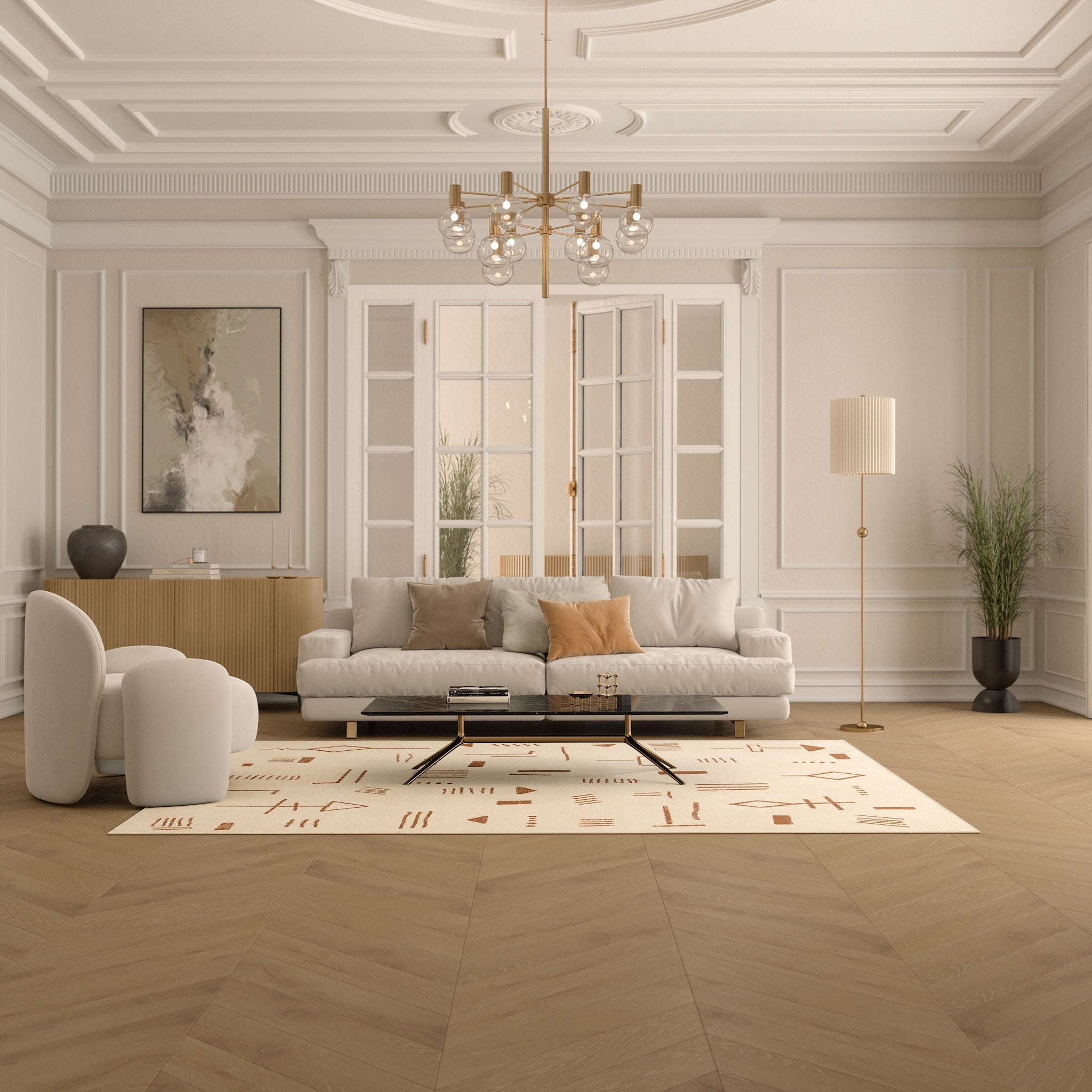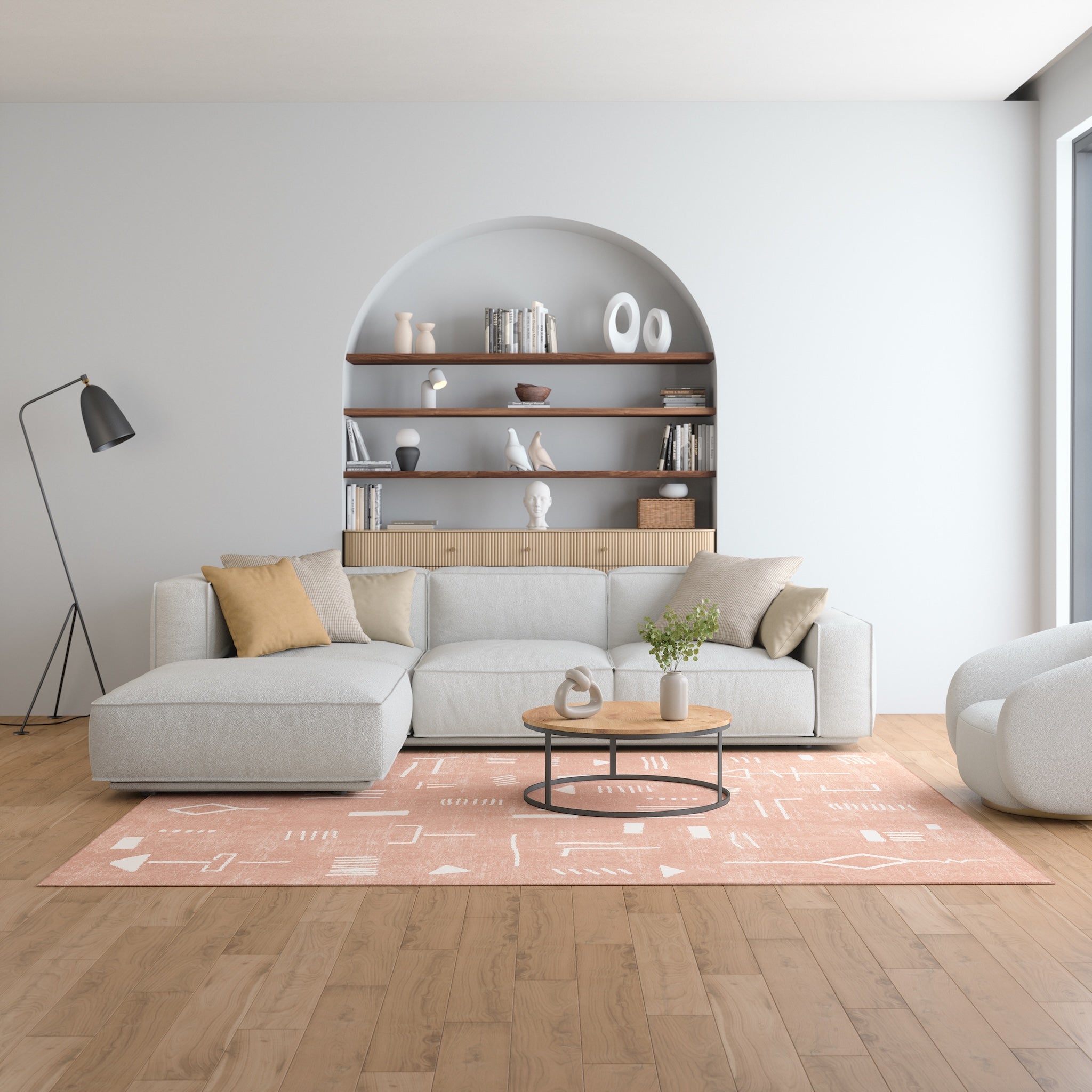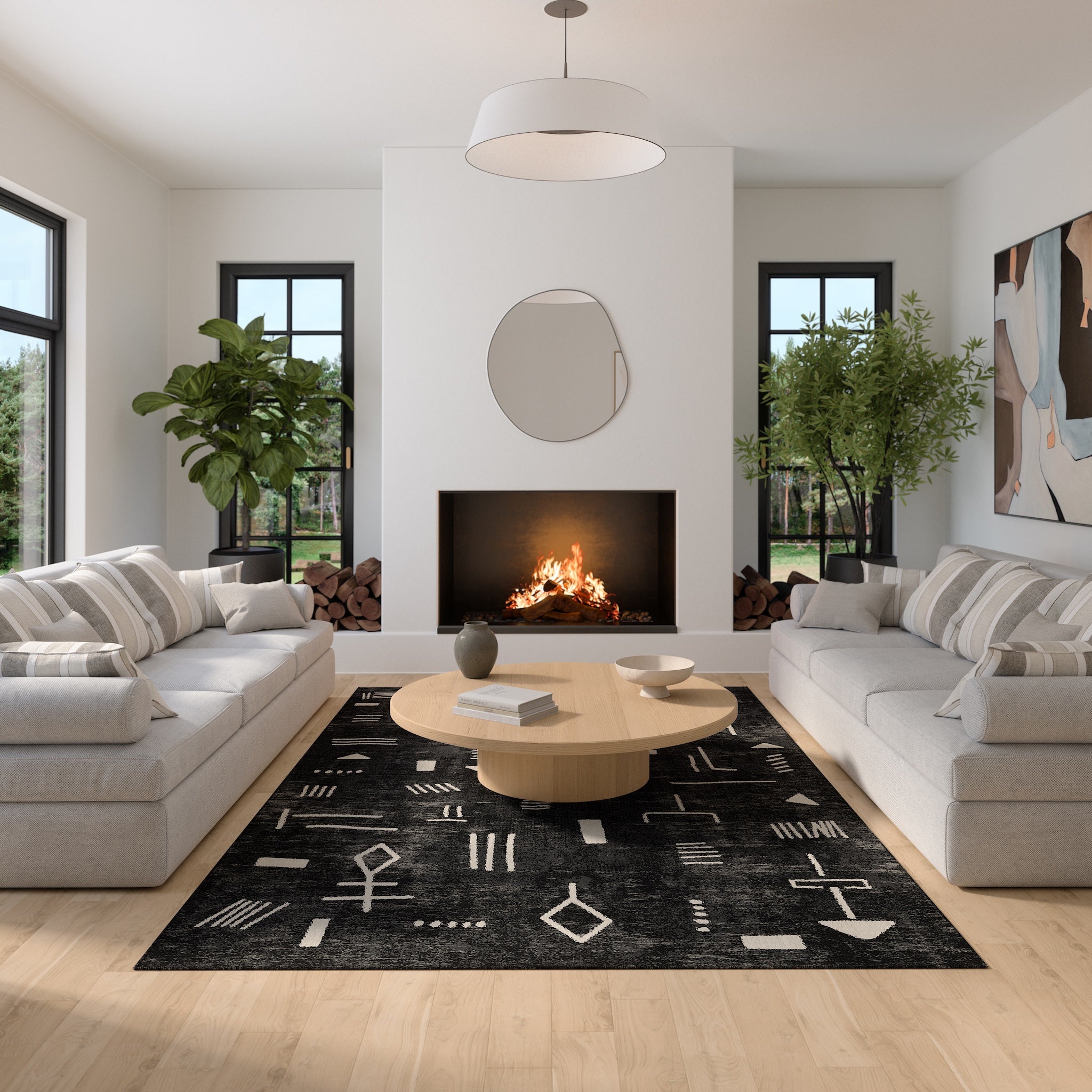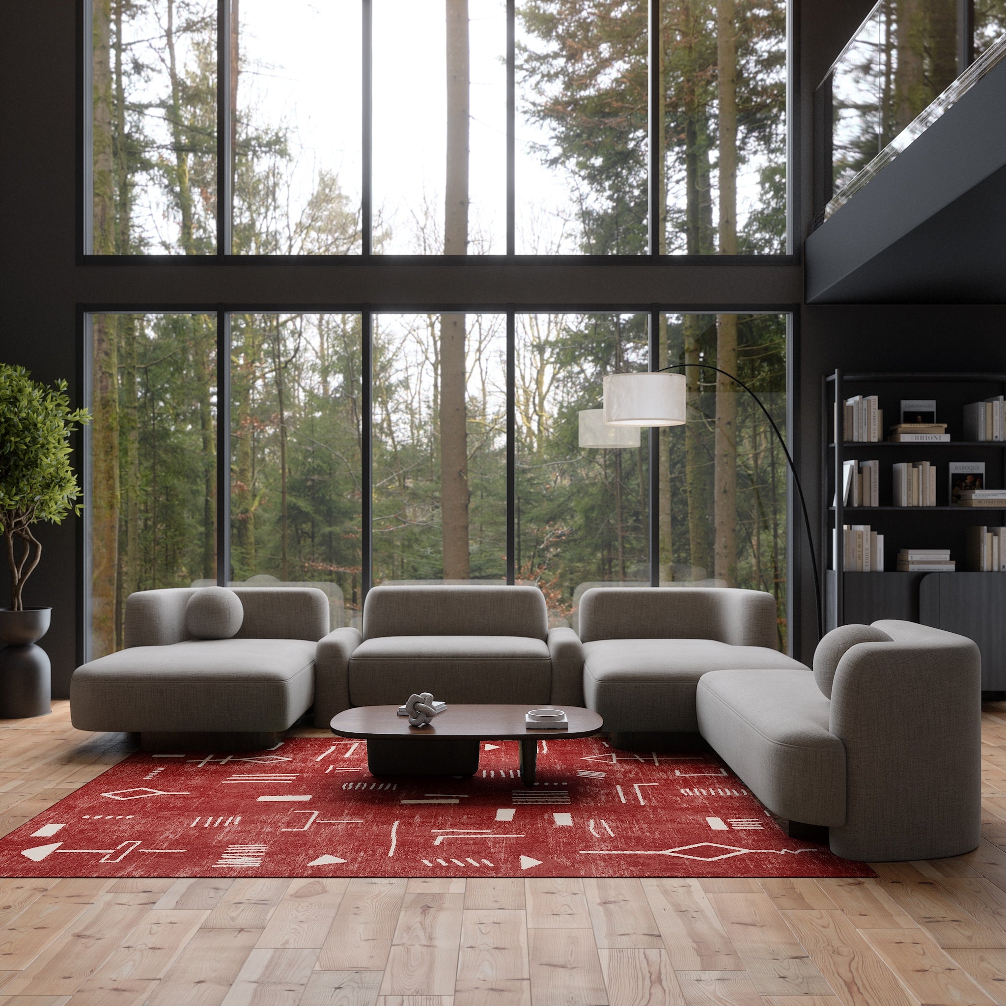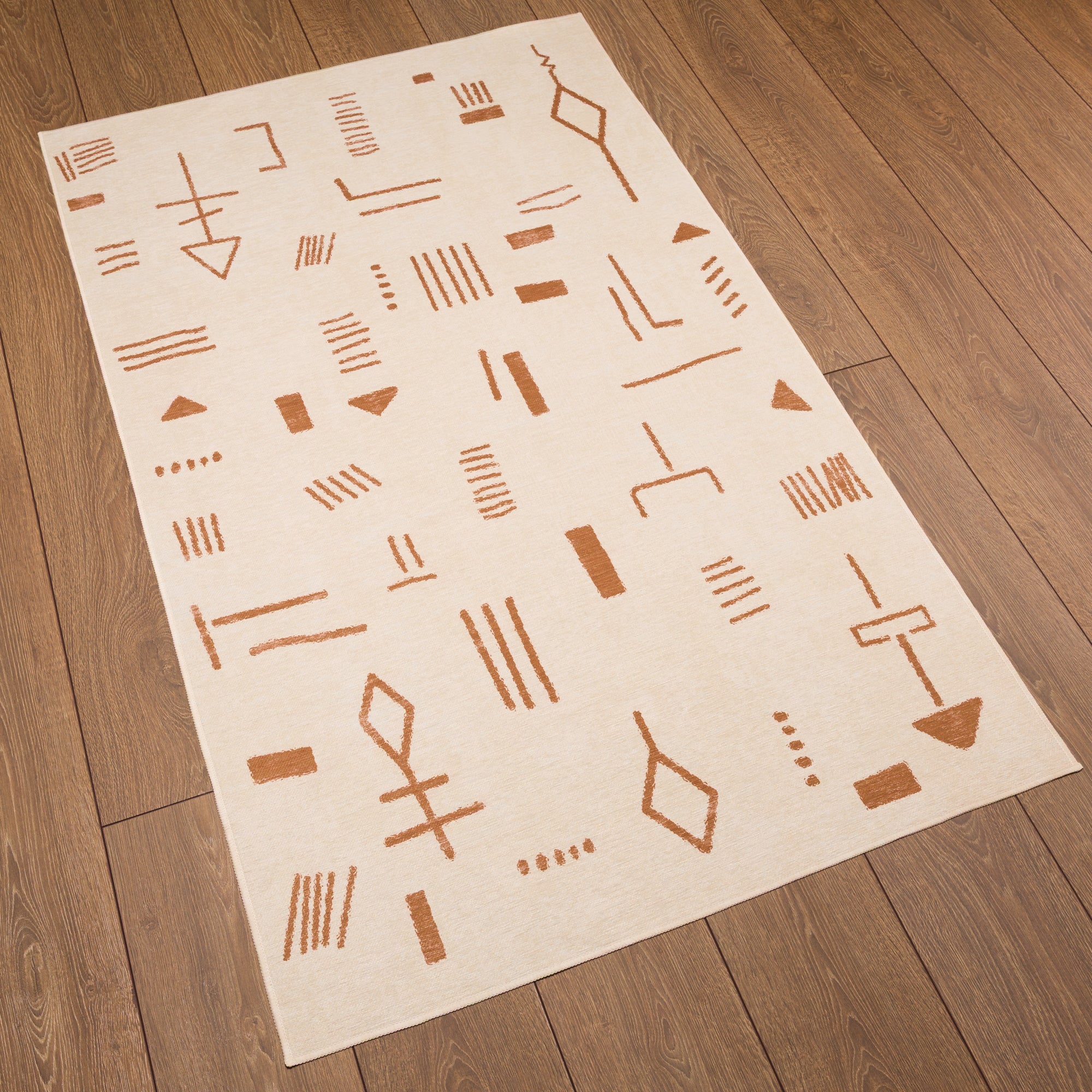 The Veya rug combines bold, abstract geometric elements with a minimalist design, adding an artistic yet understated touch to living rooms, bedrooms, or home offices. Its contemporary aesthetic brings a modern edge, while the washable material ensures practicality for everyday living. Perfect for those seeking a statement piece with a bold and artistic touch, yet maintaining a minimalist style.