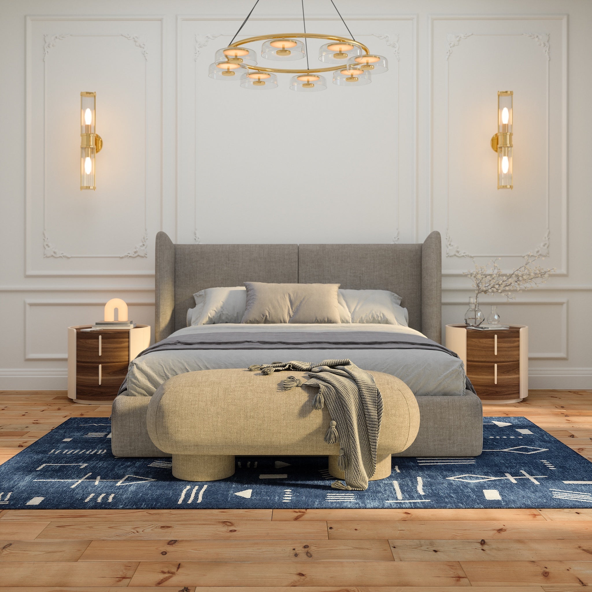 When selecting the perfect rug size, consider the size of your bed as a key factor. A large area rug placed under the bed often serves as the room’s focal point. Alternatively, a smaller rug beside the bed adds a nice accent and provides a cozy spot for your feet.