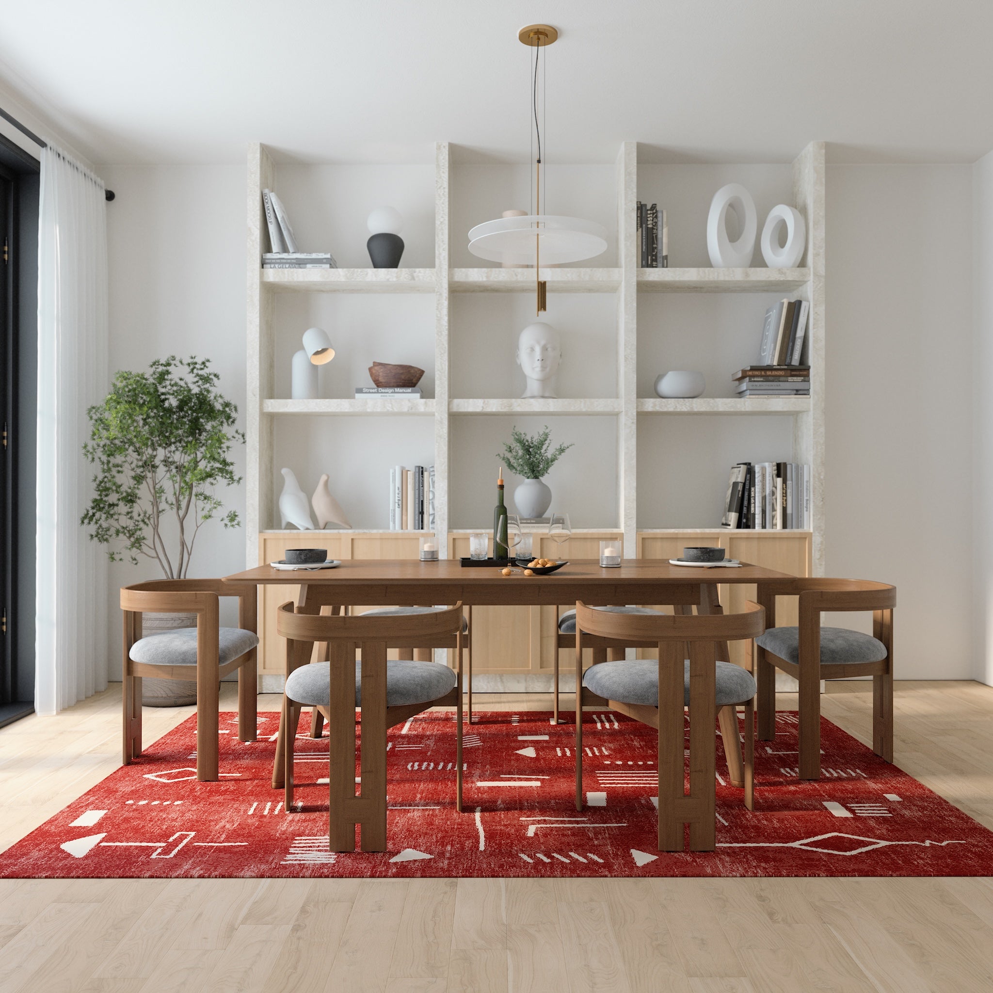 A helpful guideline is to choose a rug that extends about four feet beyond your dining table. This ensures that all dining chairs remain fully on the rug, even when they are pulled out.