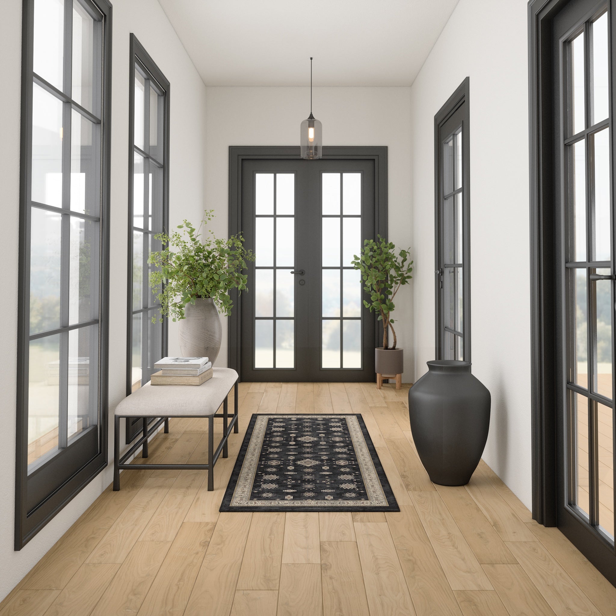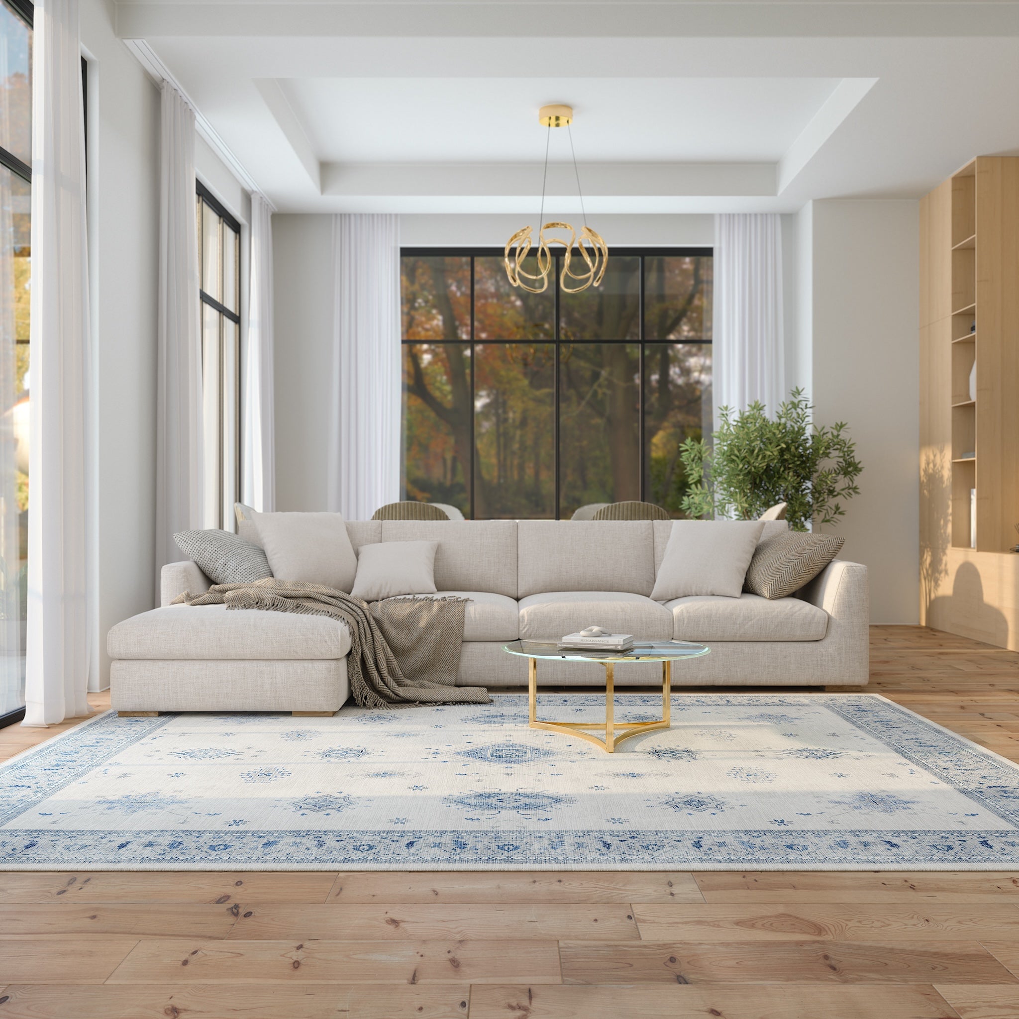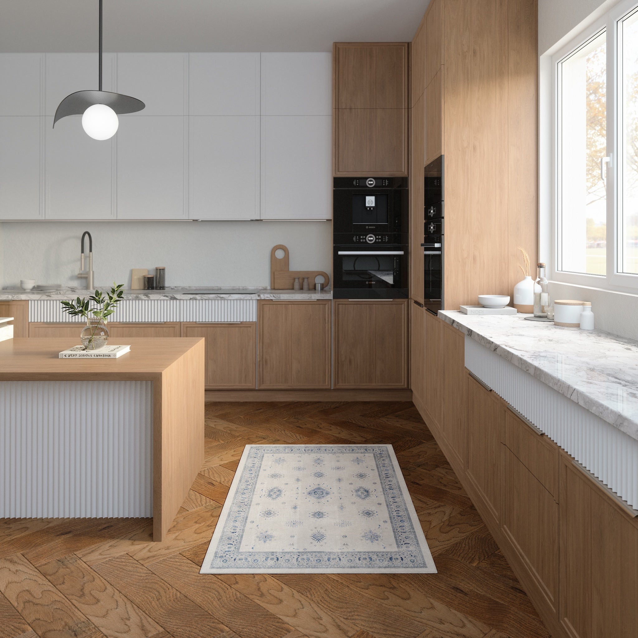 The Victoria rug showcases a beautiful central medallion framed by intricate ornamental details, bringing a timeless elegance to any room. Its vintage-inspired design and balanced color palette make it a stunning addition to living spaces, bedrooms, or dining areas. This machine washable rug combines classic beauty with modern practicality, ensuring easy care while enhancing traditional or transitional interiors.